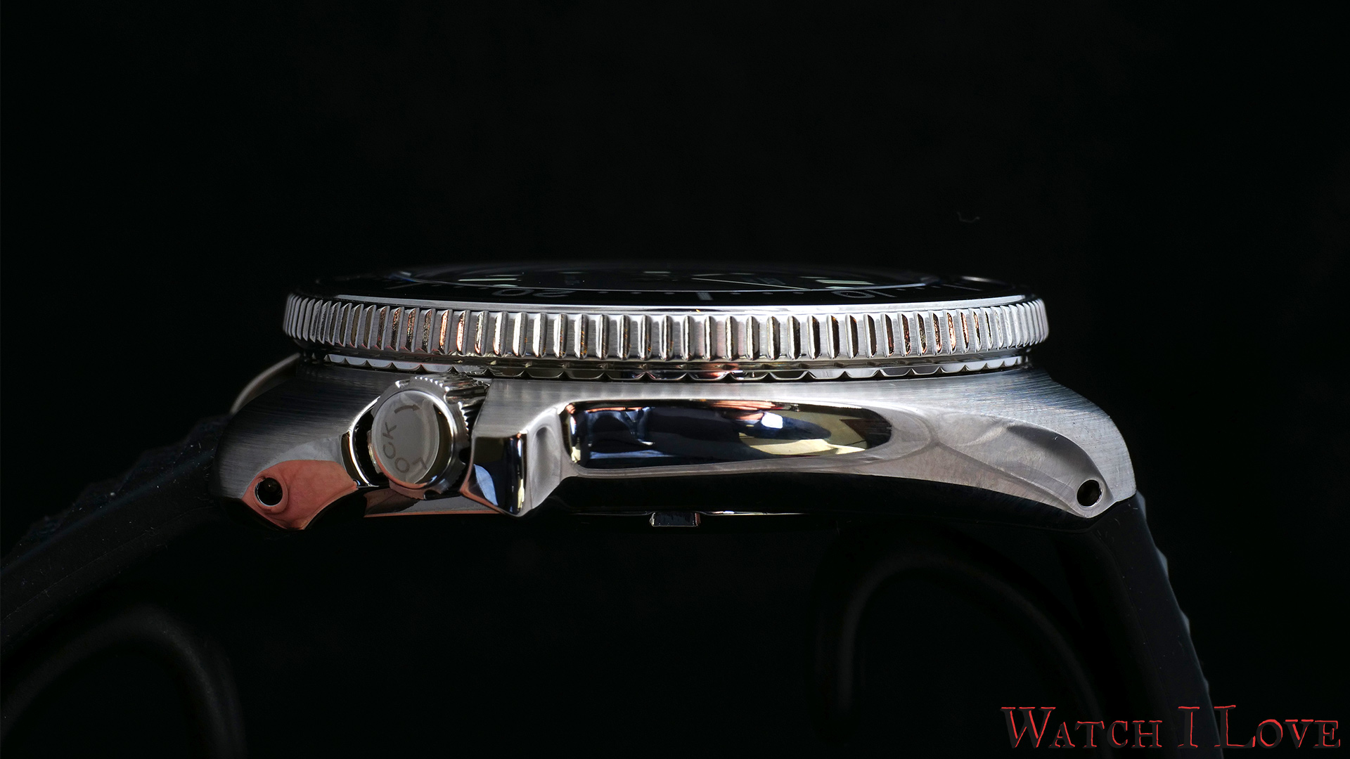 The crown has a nice shape with a good grip. It is adorned with mirror polish in which was engraved “LOCK” and an arrow, indicating the obvious – the locking position.