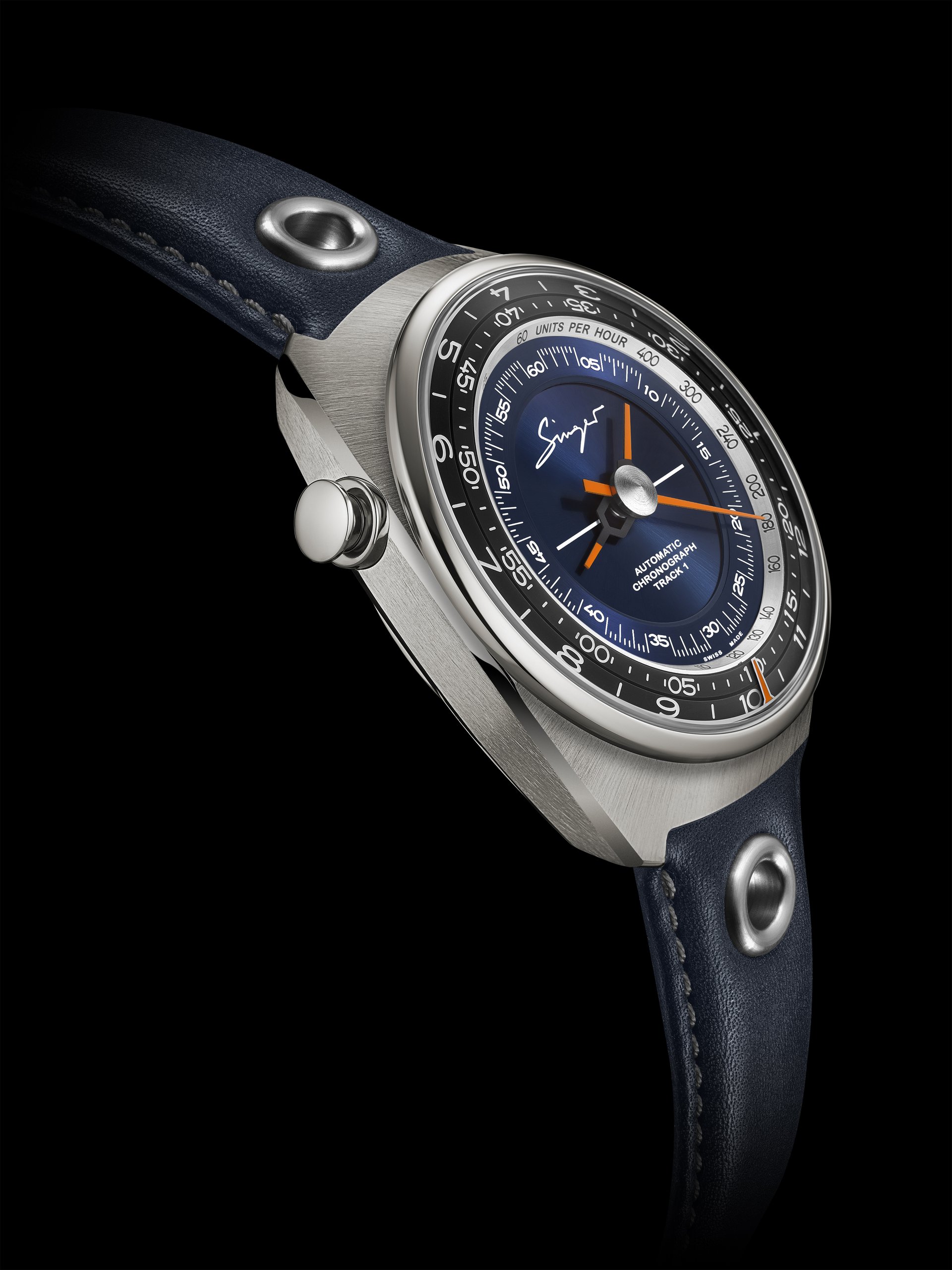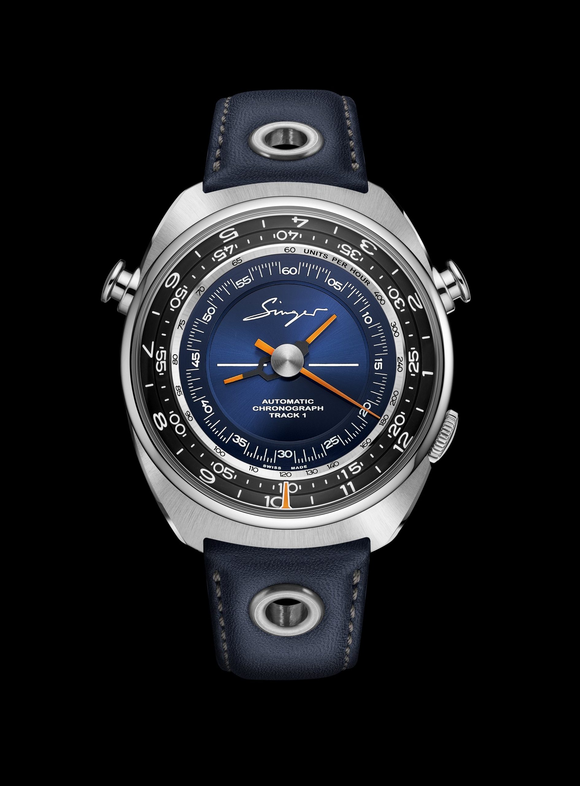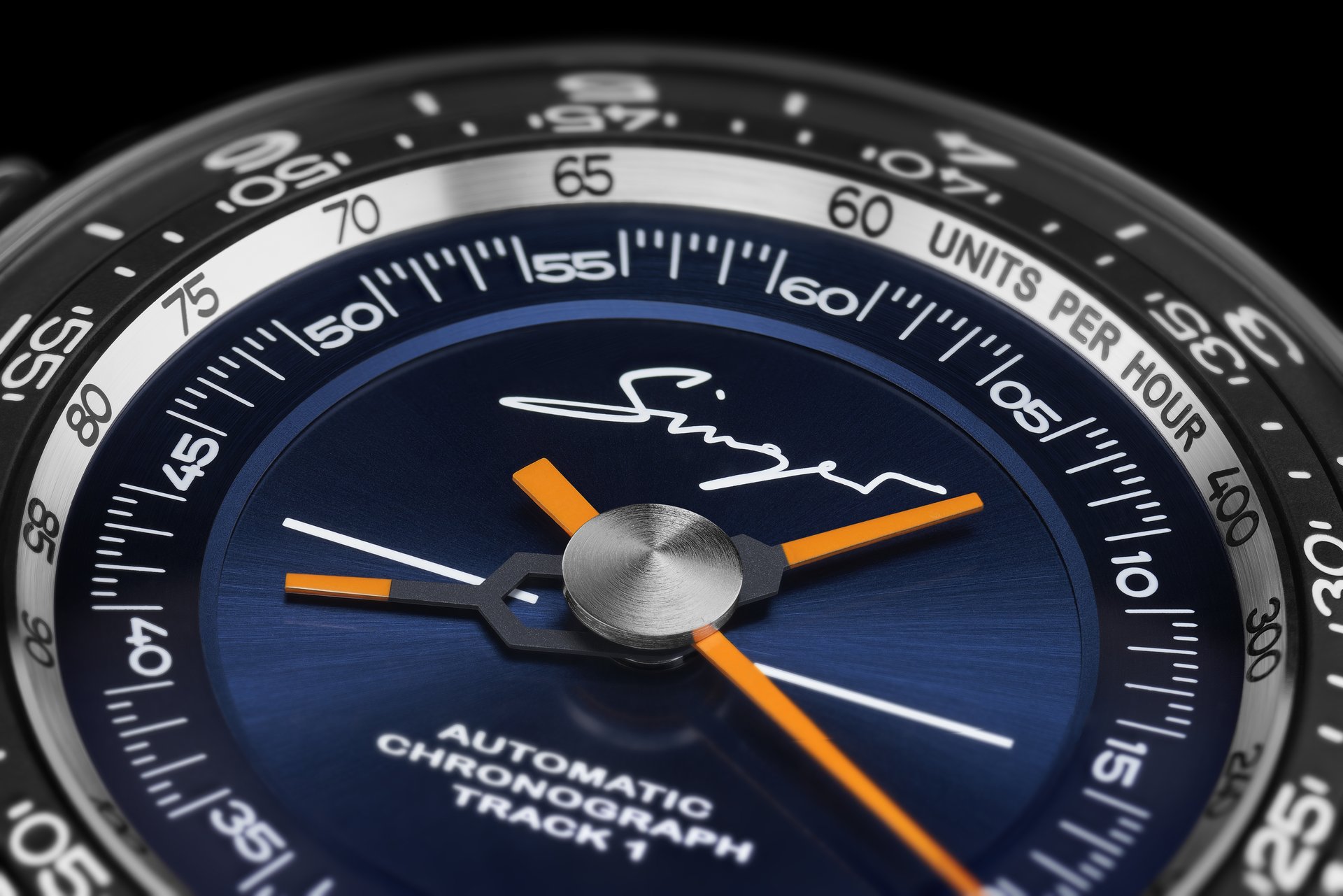 Singer Reimagined was born from the encounter between Rob Dickinson, Founder and creative Director of Singer Vehicle Design, and Italian watch designer Marco Borraccino. The company was created to reimagine high-watchmaking, combining obsessive attention to detail, unique perspectives and a love for the iconic sport watches of the 1960s and 1970s. The duo was soon joined by master watchmaker Jean-Marc Wiederrecht who would provide a revolutionary chronograph movement to power their first opus, Track1. With Track1, Singer Reimagined redefines the chronograph functionality. Ten years in the making, its revolutionary movement, the AgenGraphe, goes beyond the limitations imposed by preceding mechanisms, enabling a centralized indication of the chronograph functions, thus enabling a radical focus on legibility and performance. The time of day is presented in striking relief around the periphery of the dial by the small pointer at 6 o’clock, floating just above 2 rotating discs.