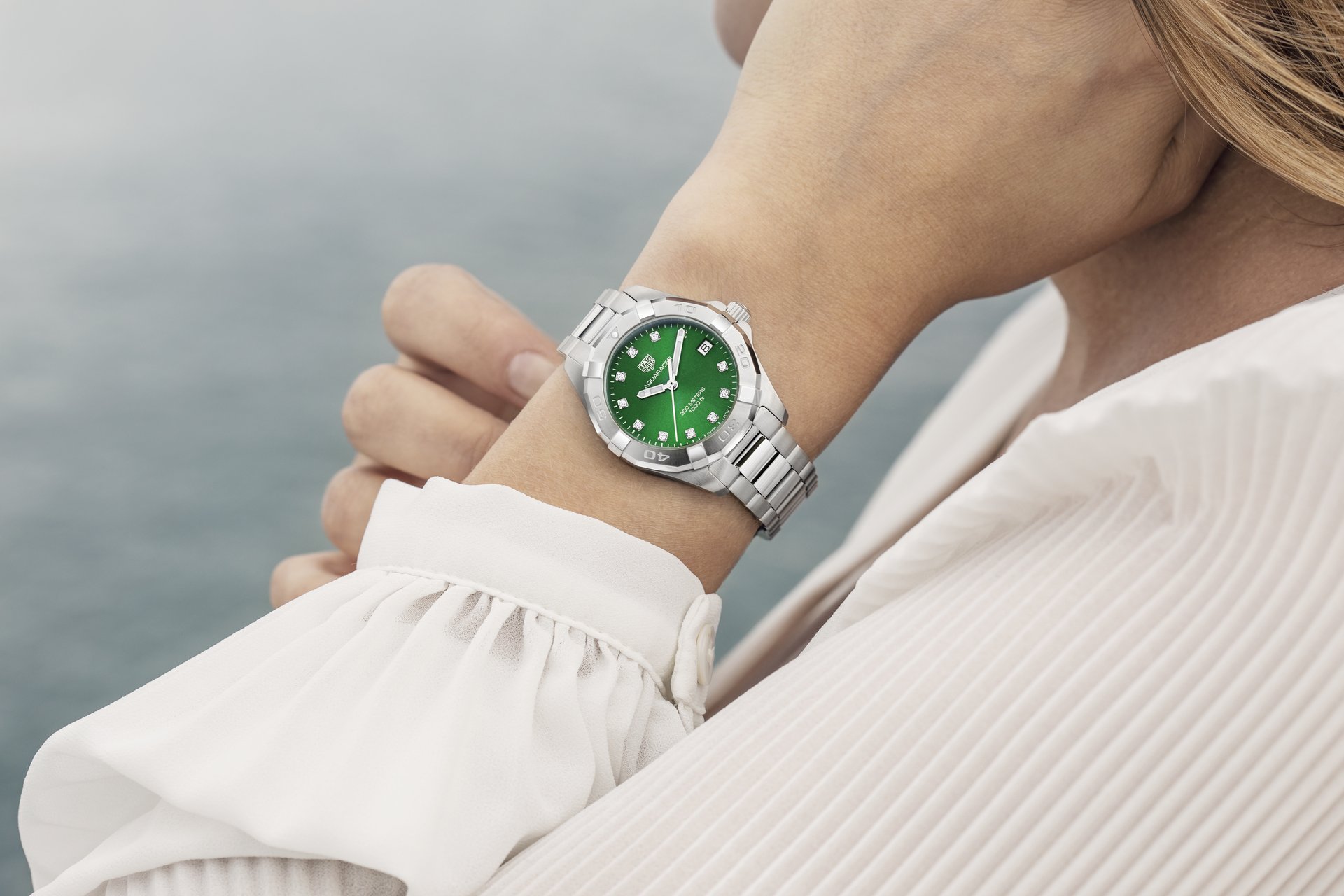 La Chaux-de-Fonds, Switzerland – September 2019: Inspired by the mesmerising blue and green shades of the ocean, the Swiss watchmaker has created two green-dialled Aquaracer models that offer sporty functionality on any terrain. The stylish timepieces for men and women are distinguished by their everyday versatility and dive-ready technology. Ideal for an individual or purchased together as couple’s watches, these modern Aquaracer models invite the wearers to live the good life – whether that’s cruising on the waves or exploring the world below the surface. With two new Aquaracer models, TAG Heuer introduces an on-trend colour for men and women who desire an innovative timepiece that blends fashion with function: the TAG Heuer Aquaracer Green Dial.