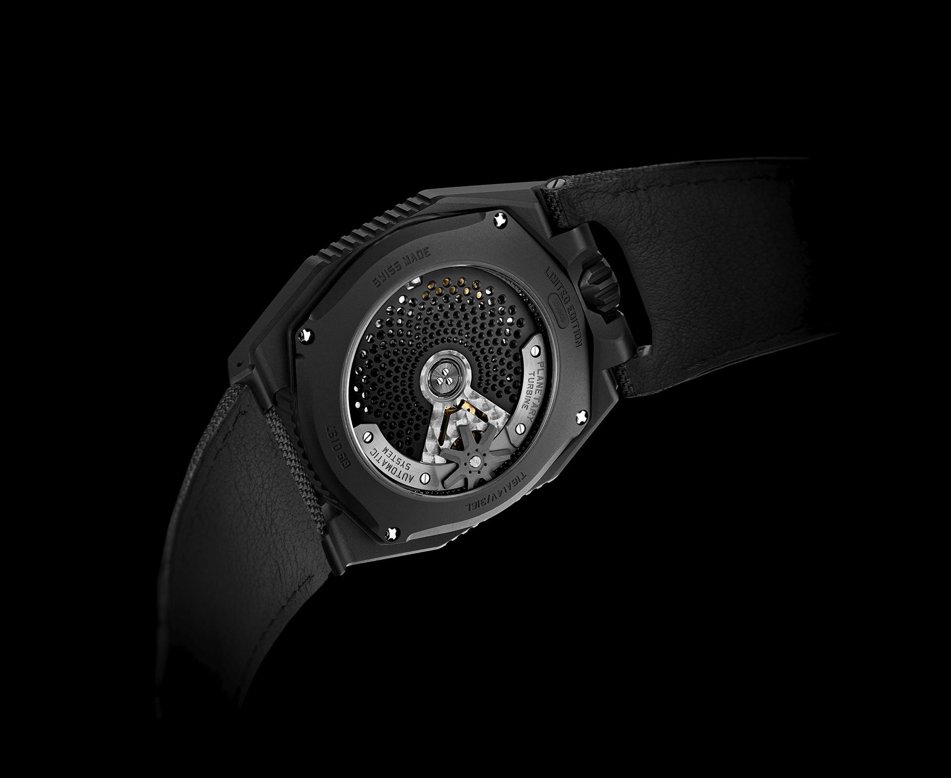 - Materials: Orbital satellite hours turning on Geneva crosses in beryllium bronze; open-worked aluminum carousel; triple baseplates in ARCAP