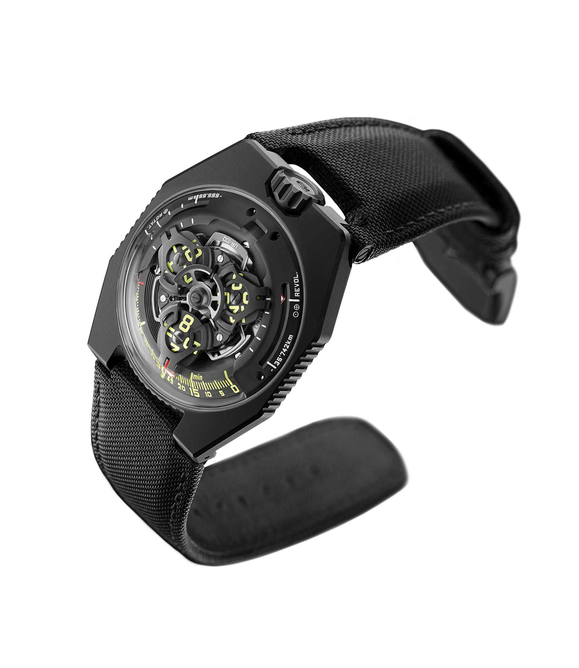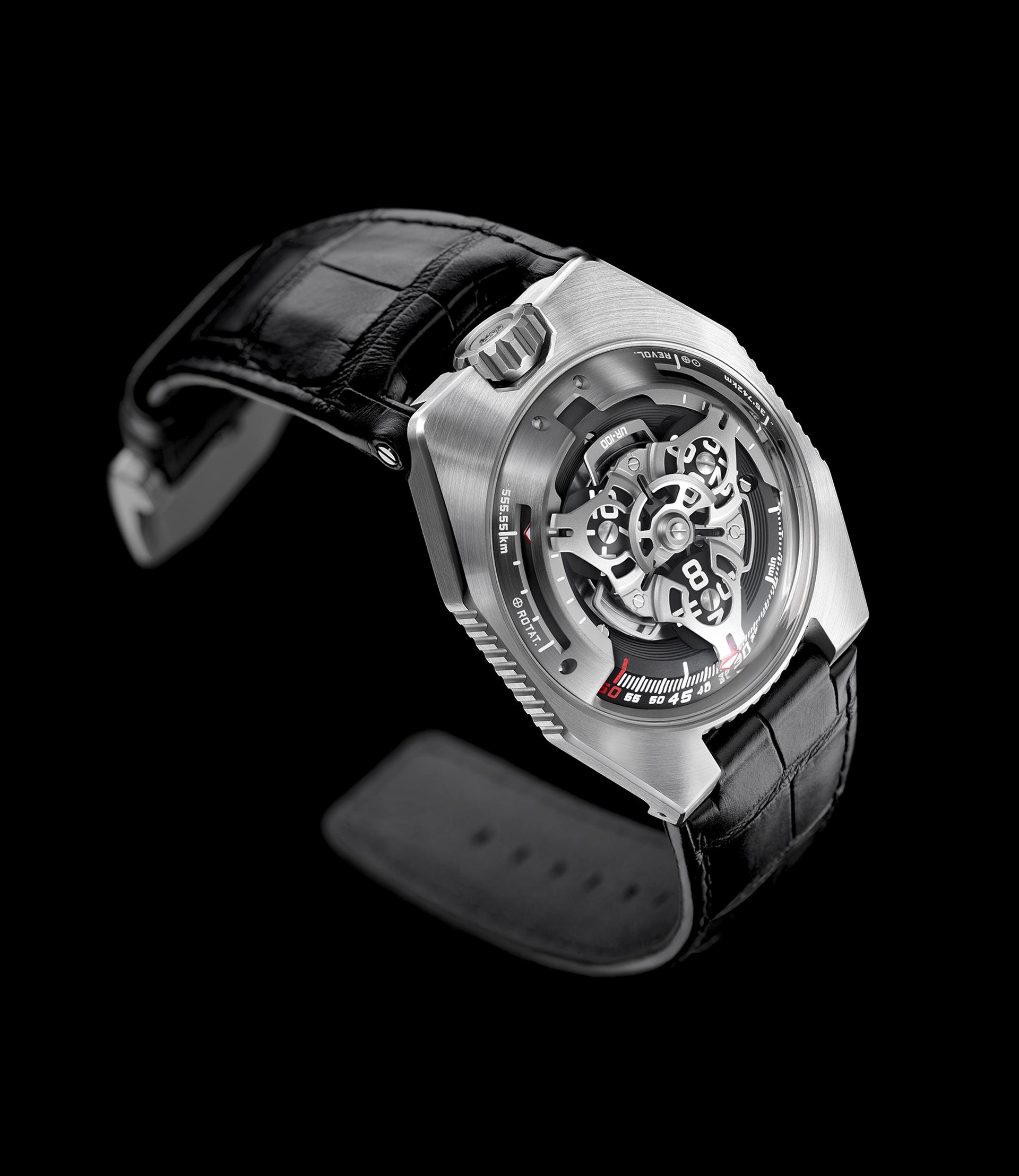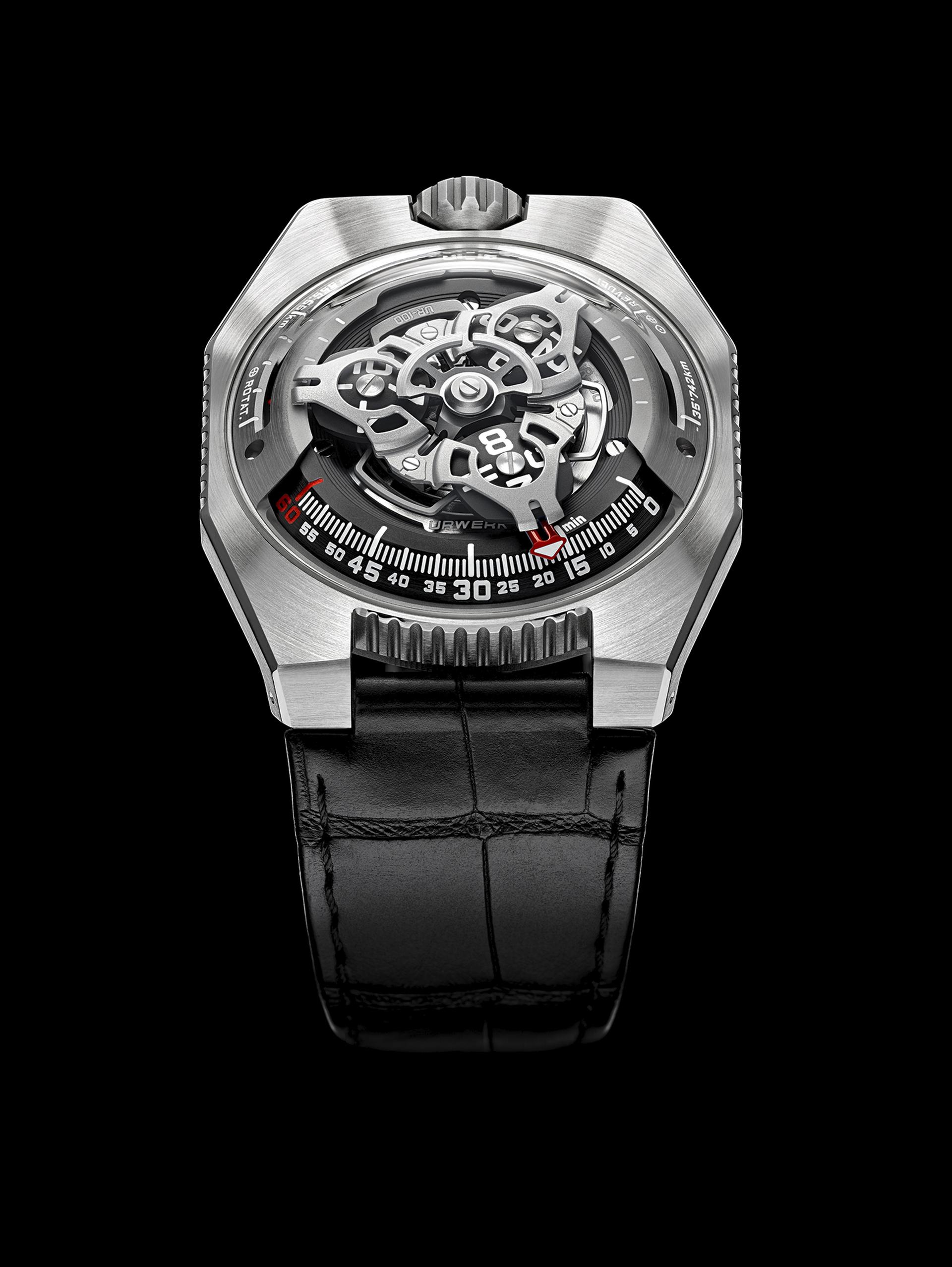 URWERK presents two introductory editions: the UR-100 Iron (titanium and steel) and the UR-100 Black (titanium and steel with black PVD), both limited to 25 pieces.