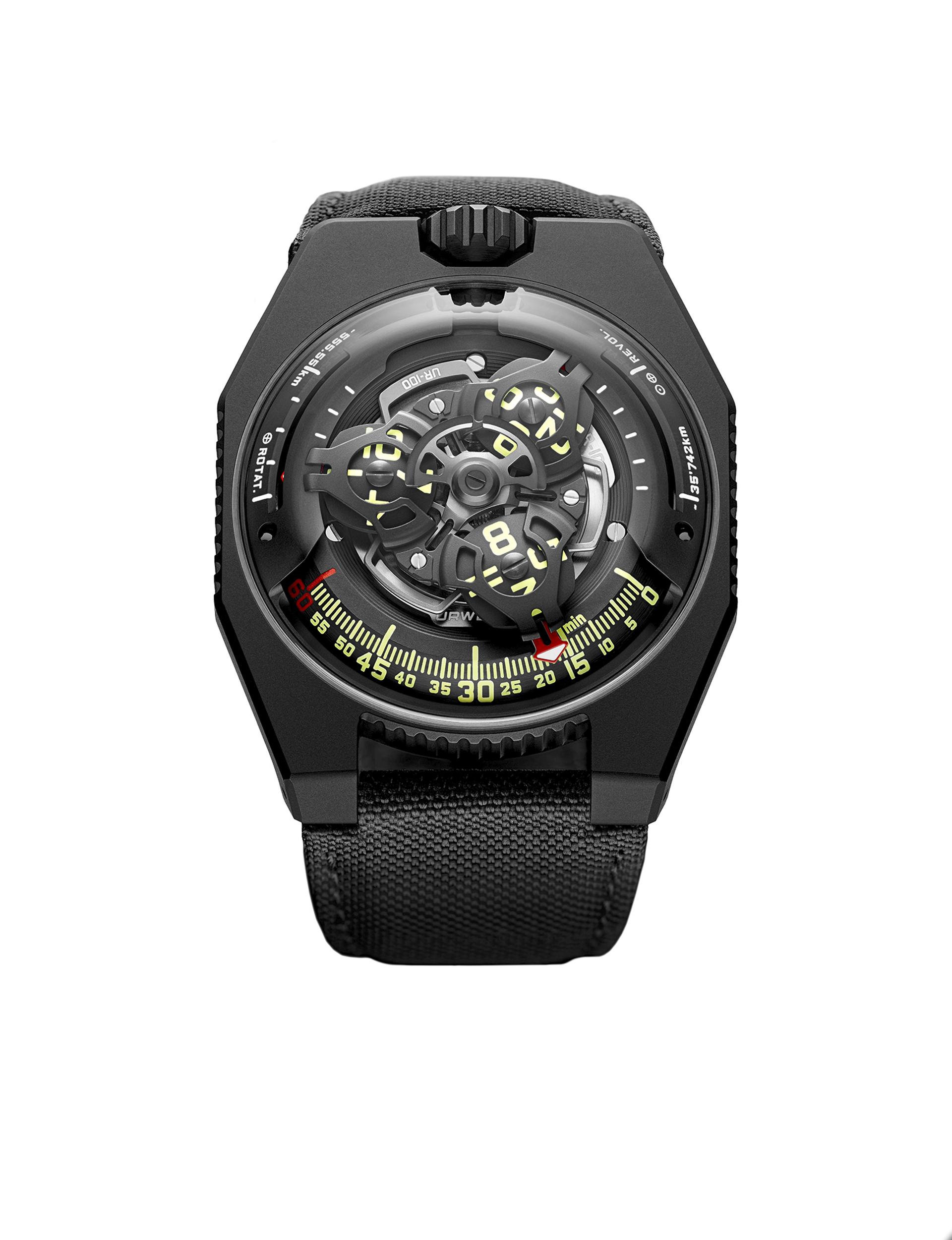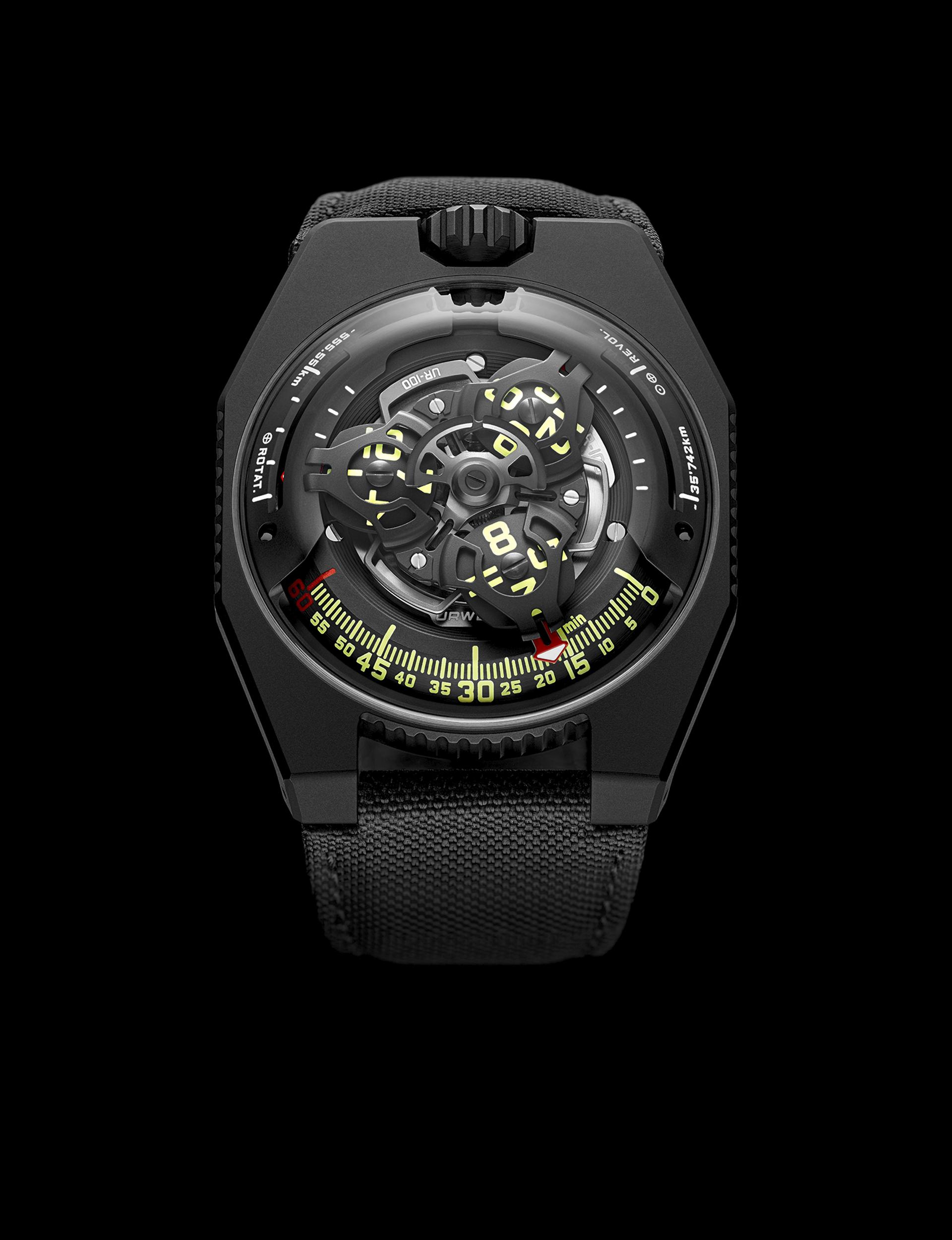 - Calibre: UR 12.01 with self-winding system governed by low-profile planetary turbine minimizing over-winding and wear