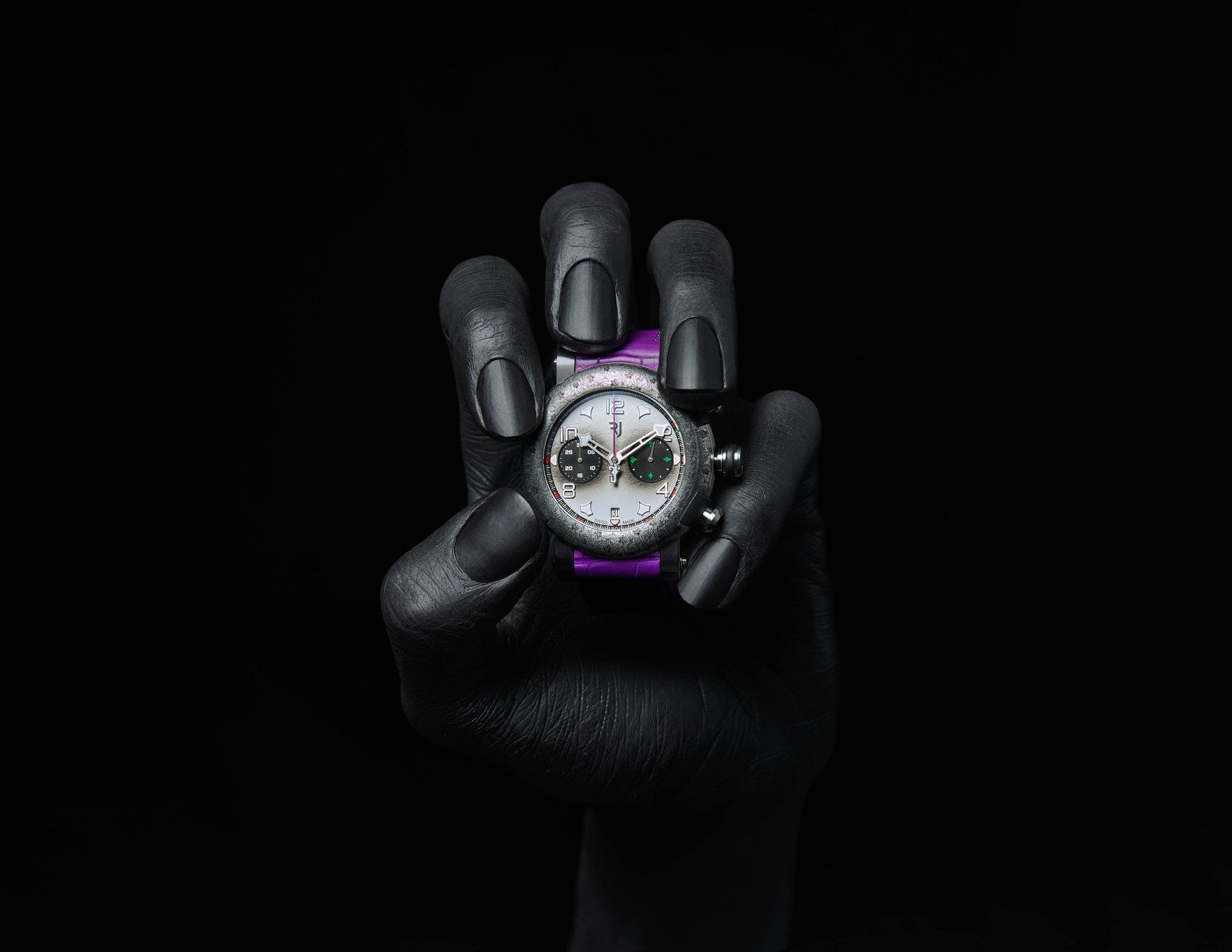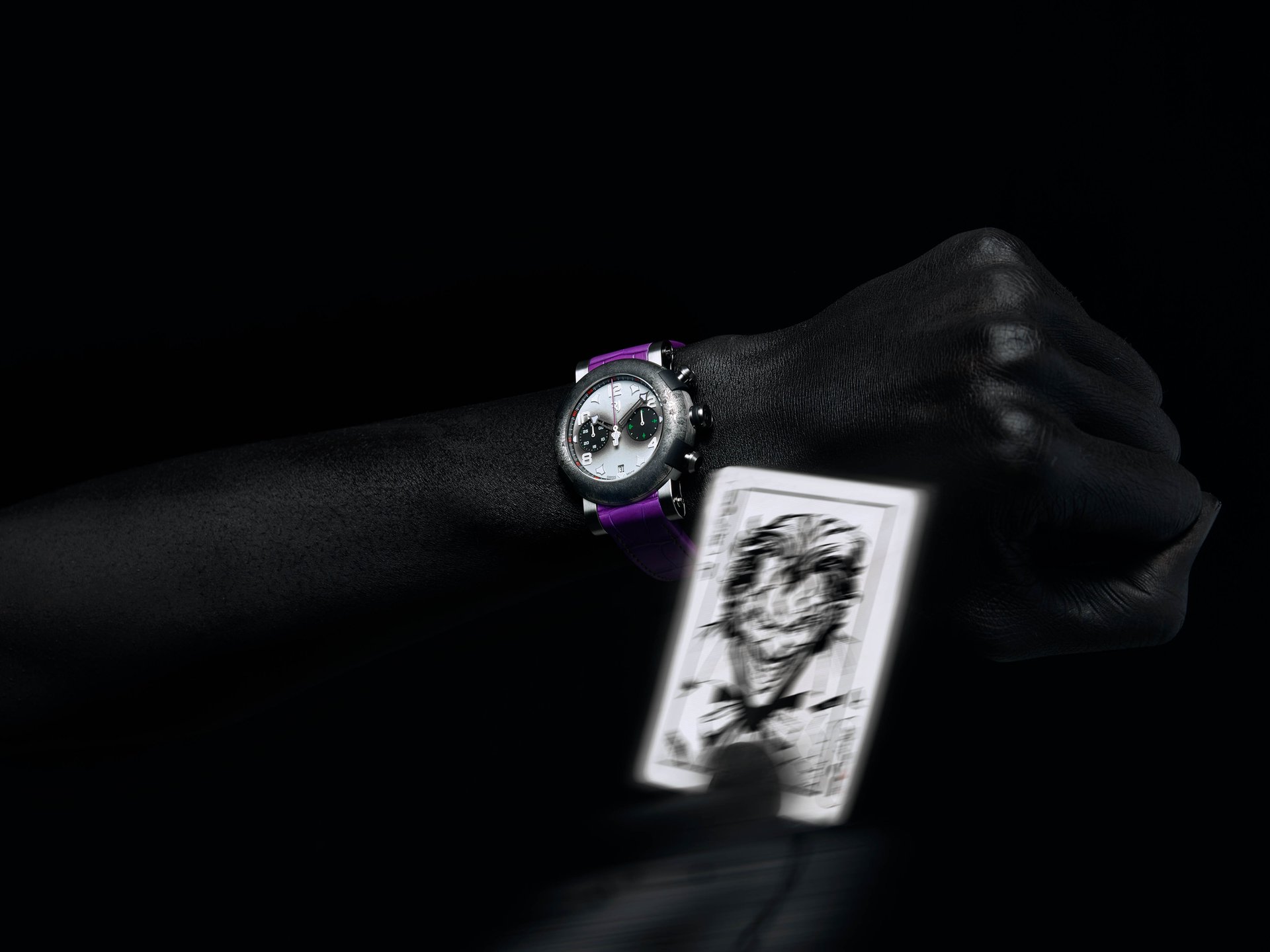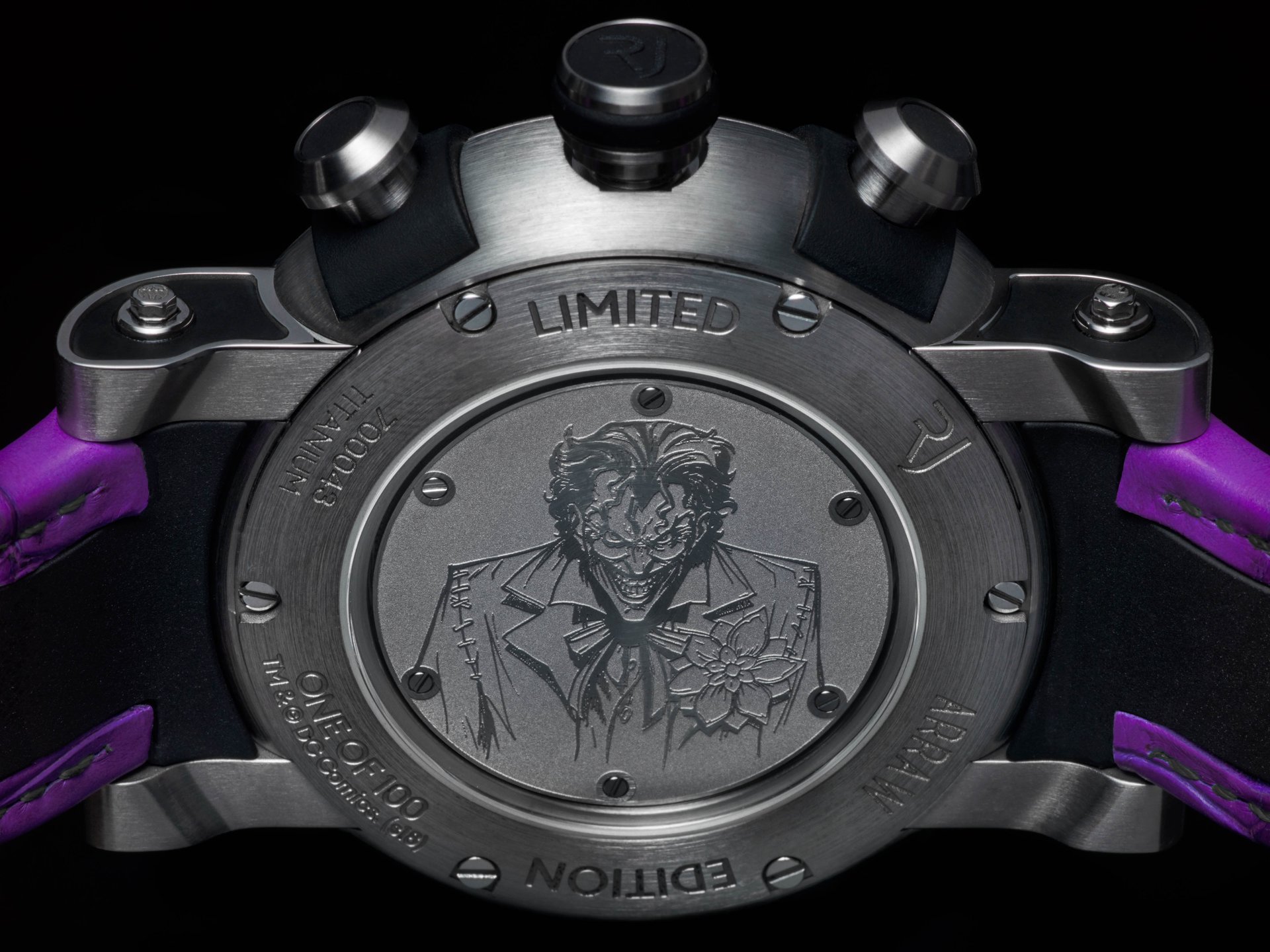 The Joker chronograph, limited to only 100 pieces, is inspired by the criminal mastermind and perfectly reproduces the aesthetic of the comic Super-Villain.