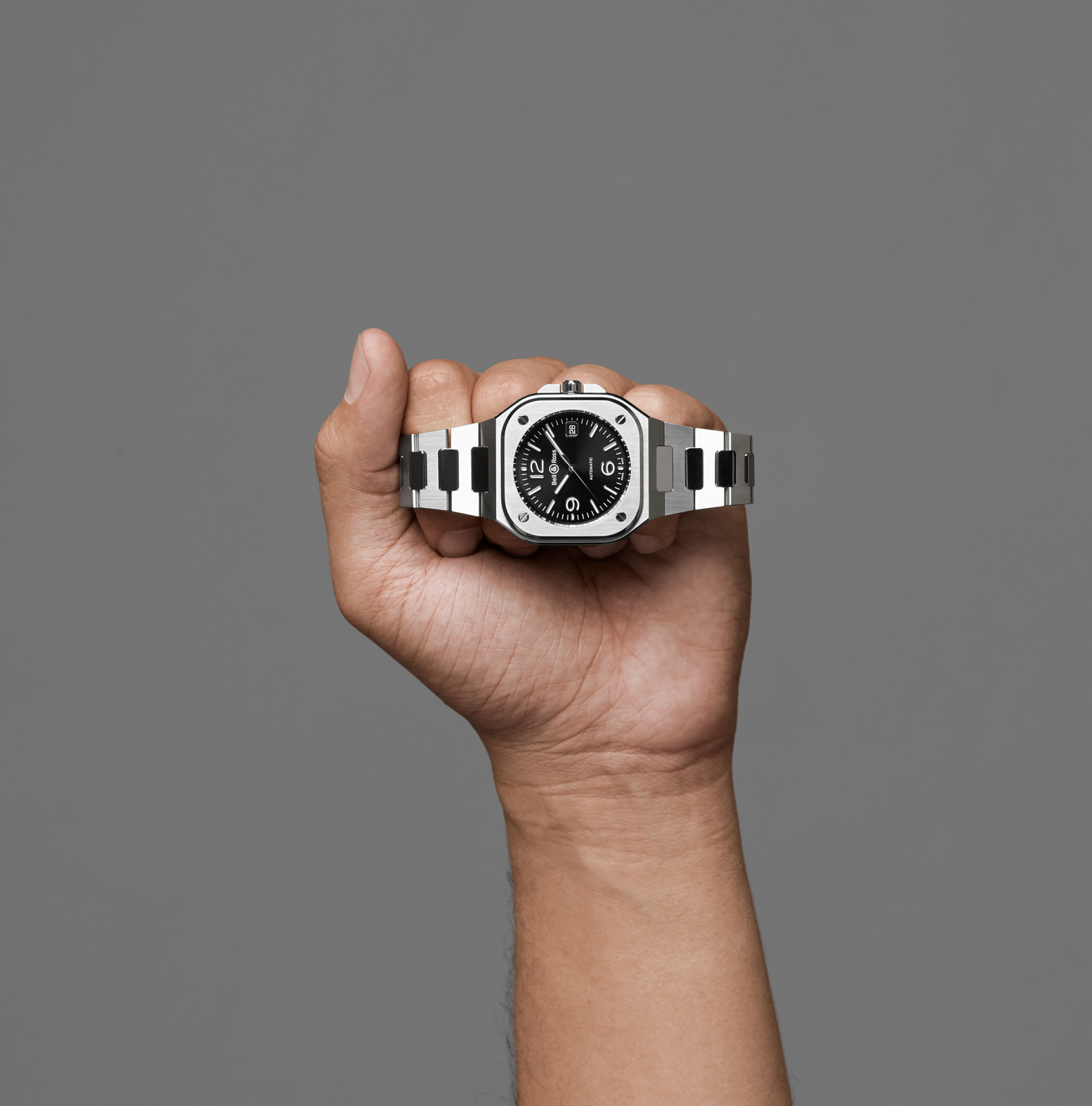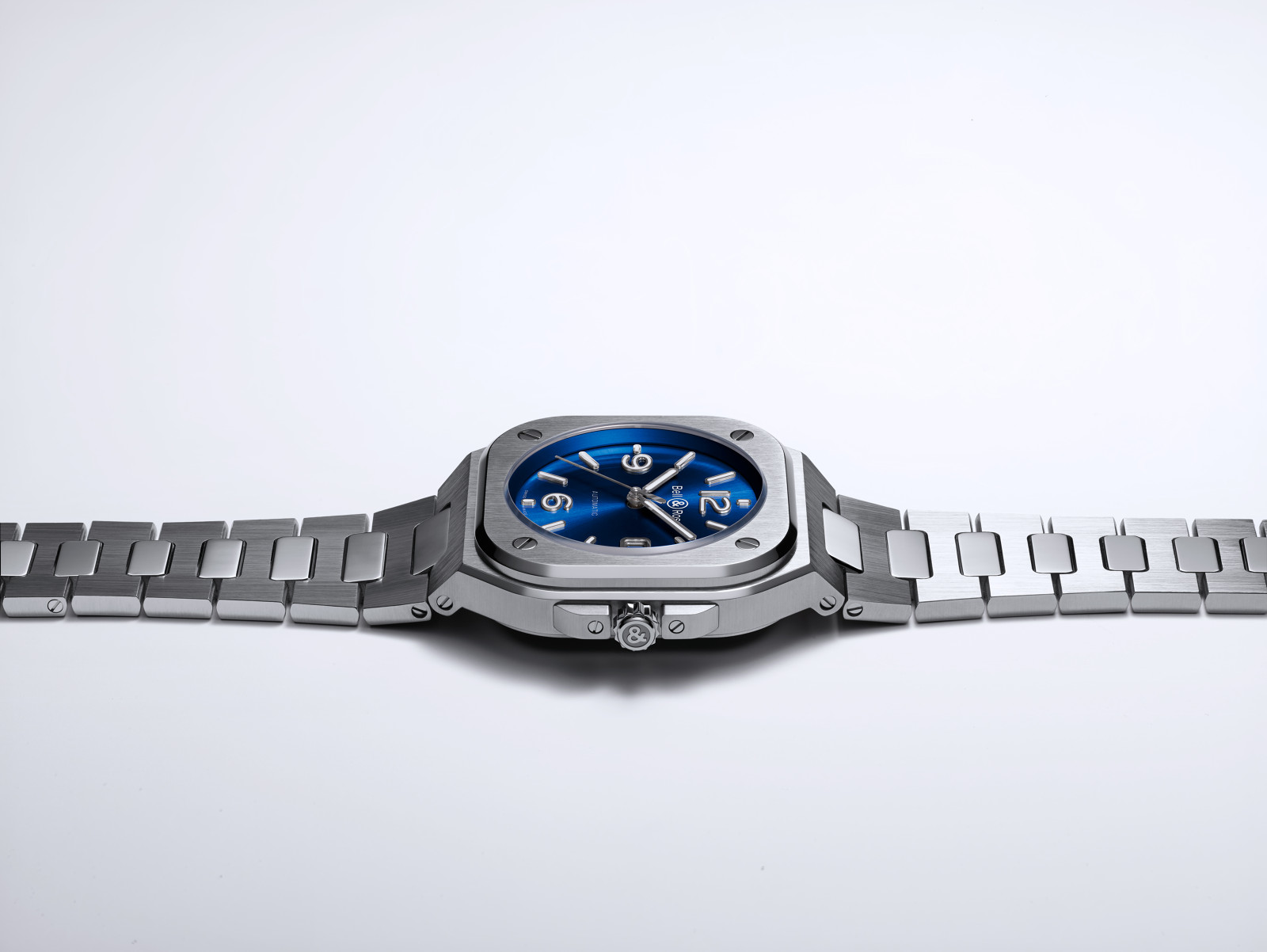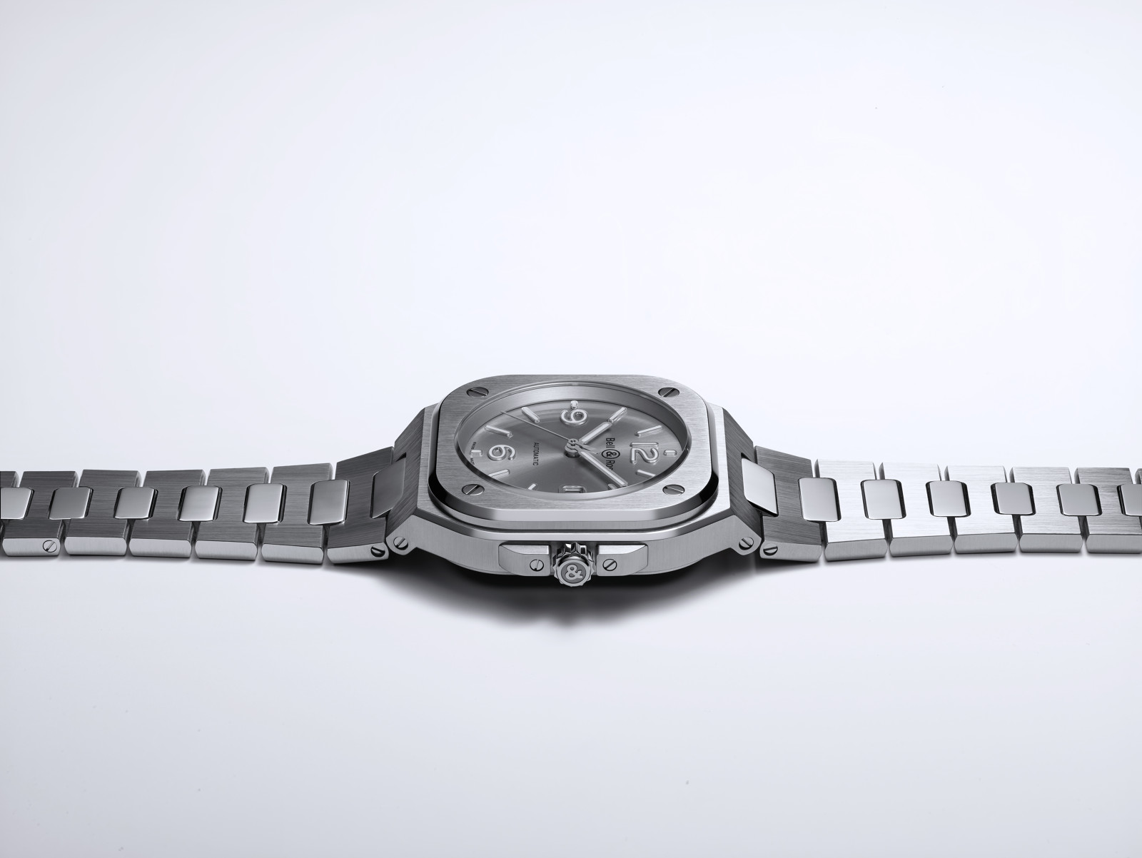 The BR 05 belongs to the family of watches with an integrated case: the bracelet fuses with the case to create a unified piece. In the words of Bruno Belamich, Bell & Ross’ co-founder and creative director: «This integration of case and bracelet is not only in line with the brand’s visual identity, but it also brings another dimension to the watch: the first link forms part of the case. This type of design harks back to the Seventies, and when transposed to Bell & Ross, it creates a result with a graphic style which is both striking and modern.”