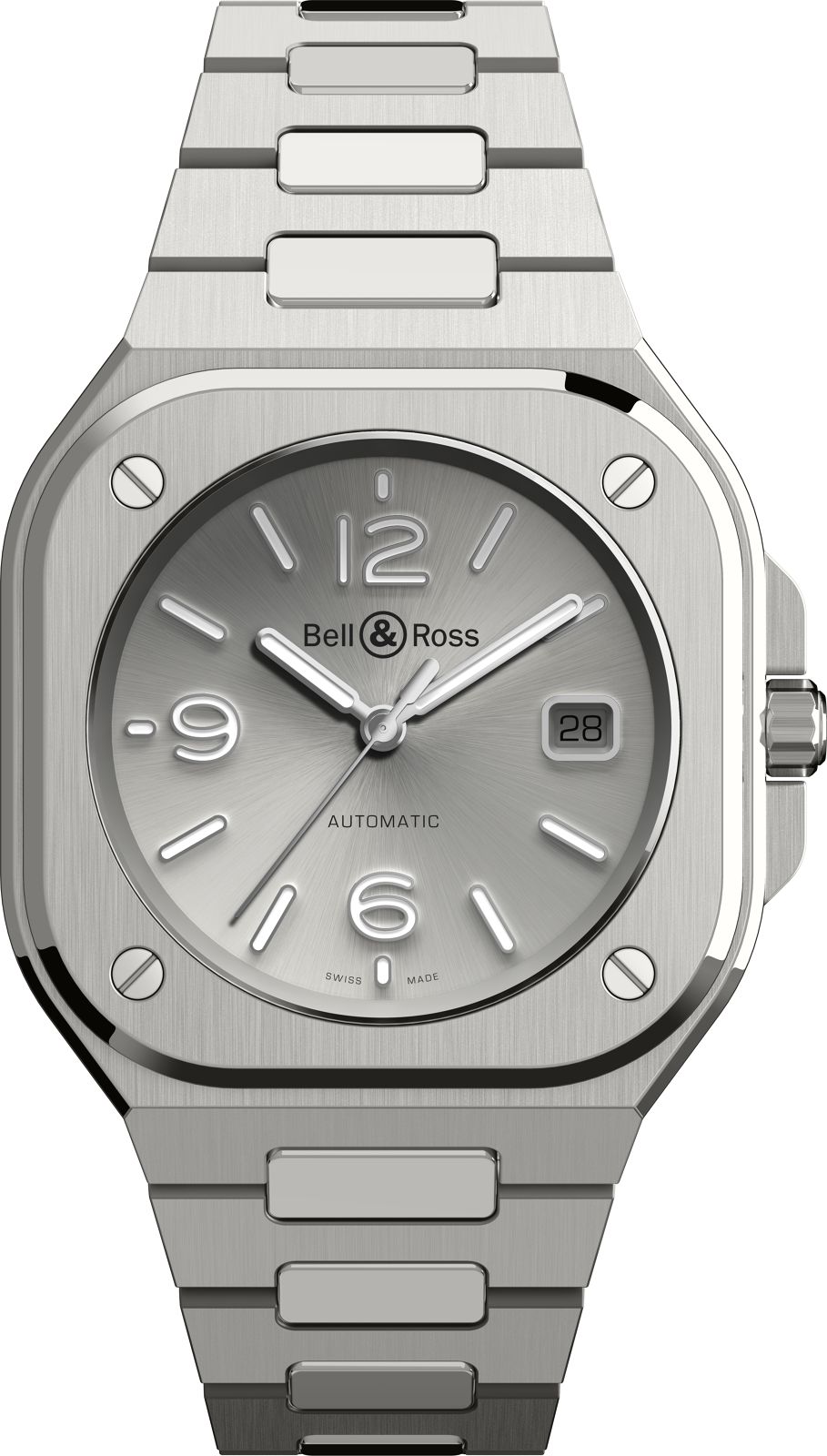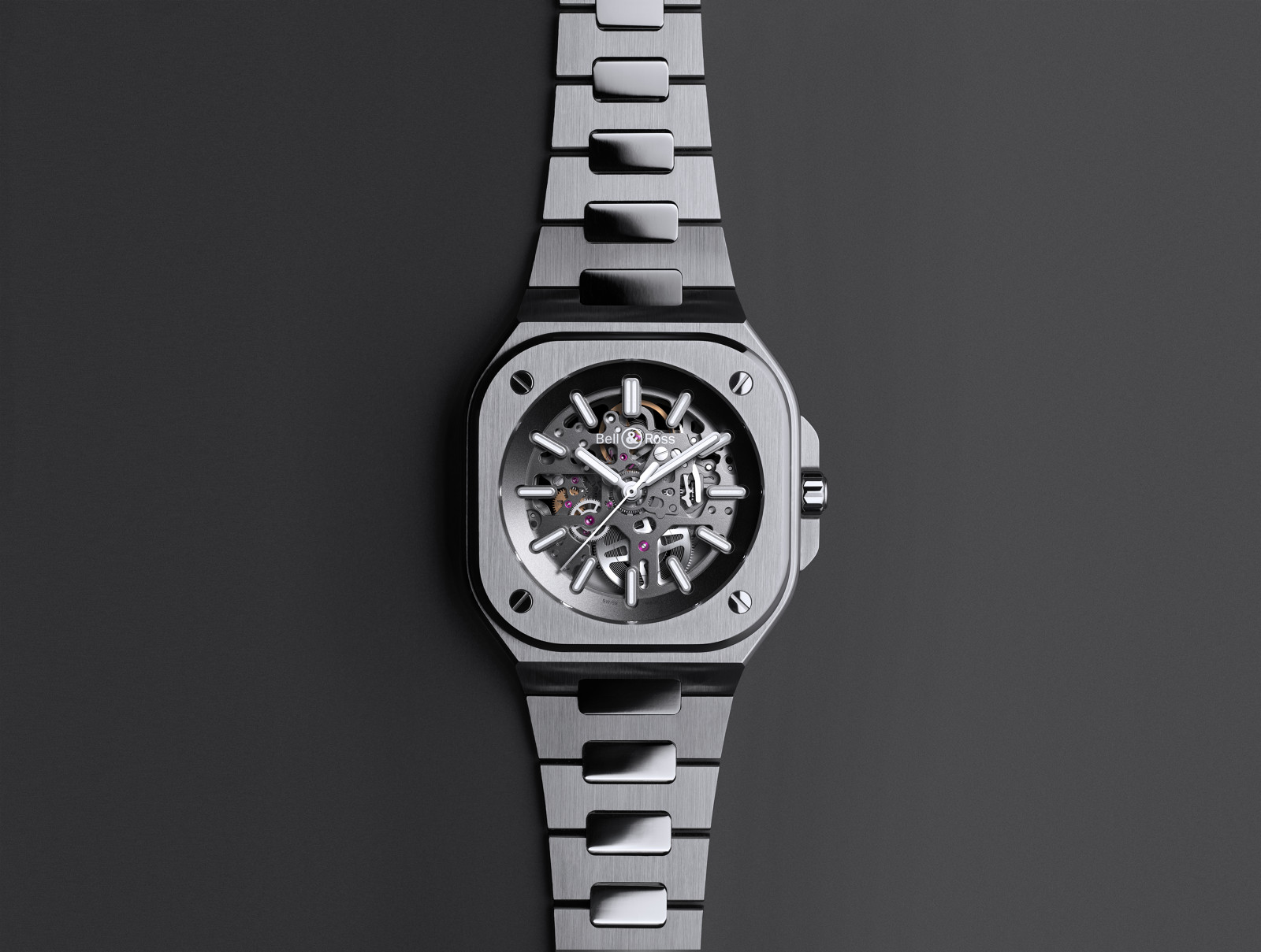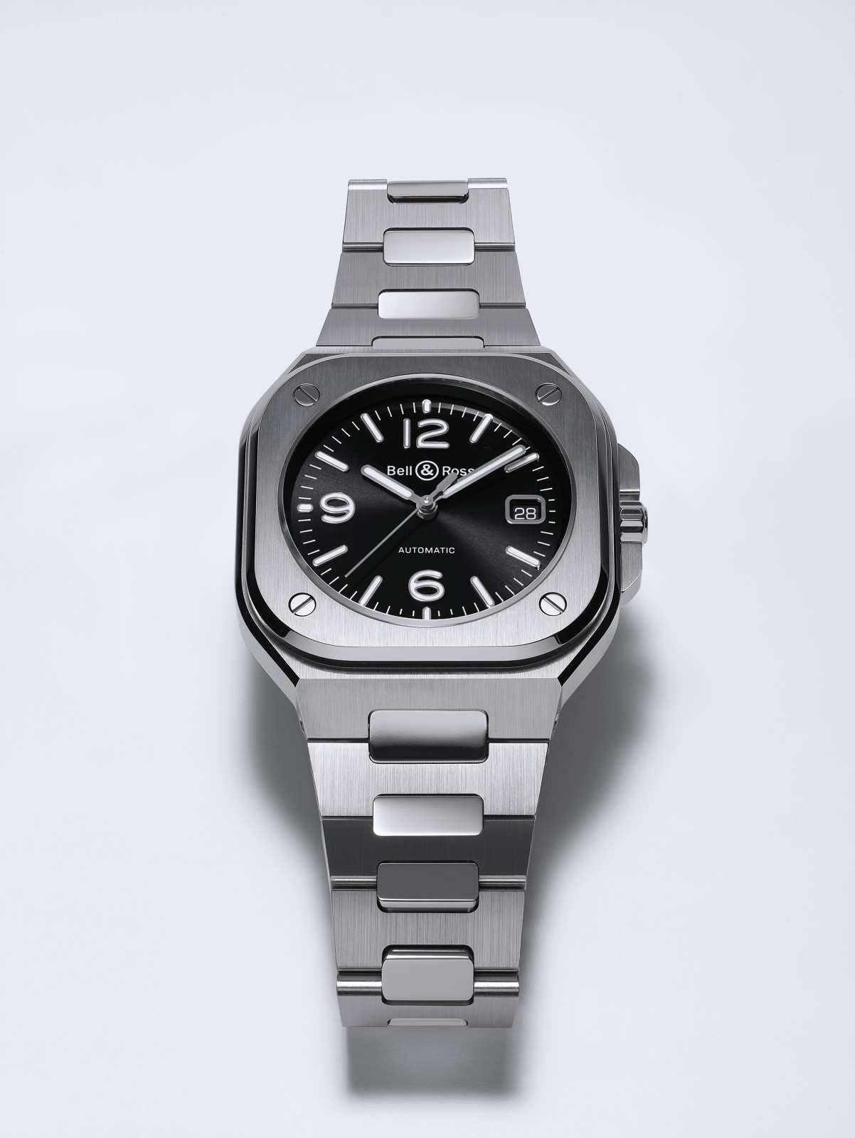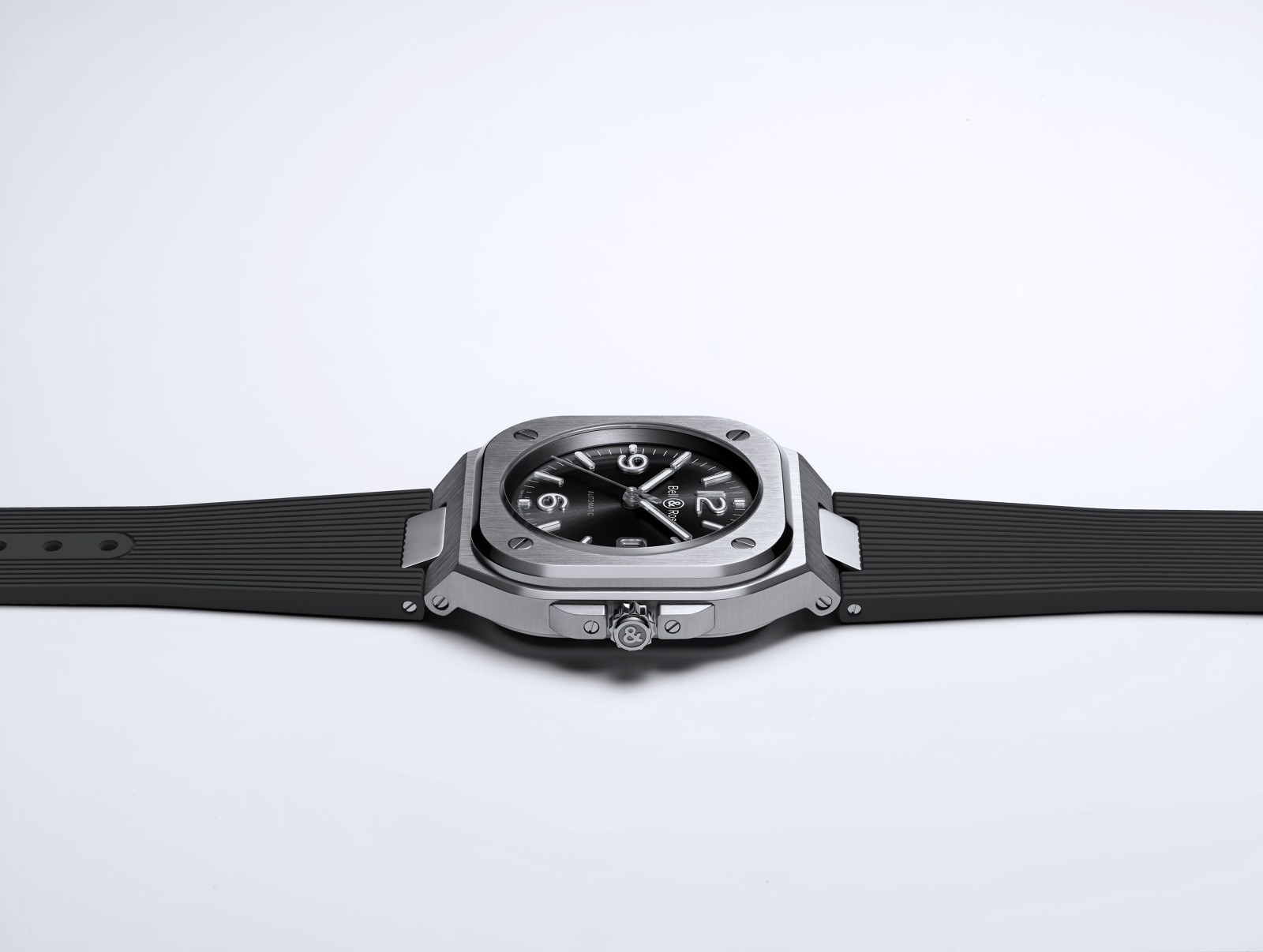 The BR 05 belongs to the family of watches with an integrated case: the bracelet fuses with the case to create a unified piece. In the words of Bruno Belamich, Bell & Ross’ co-founder and creative director: «This integration of case and bracelet is not only in line with the brand’s visual identity, but it also brings another dimension to the watch: the first link forms part of the case. This type of design harks back to the Seventies, and when transposed to Bell & Ross, it creates a result with a graphic style which is both striking and modern.”