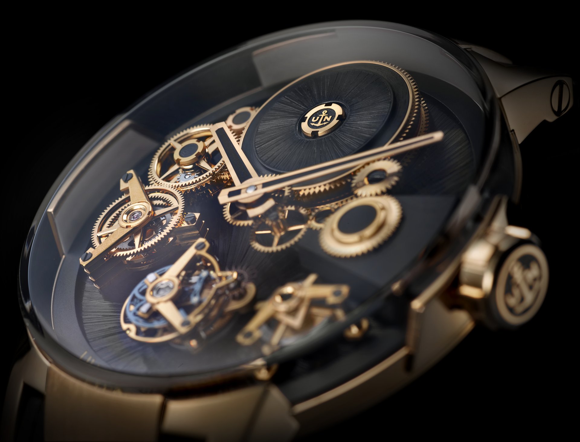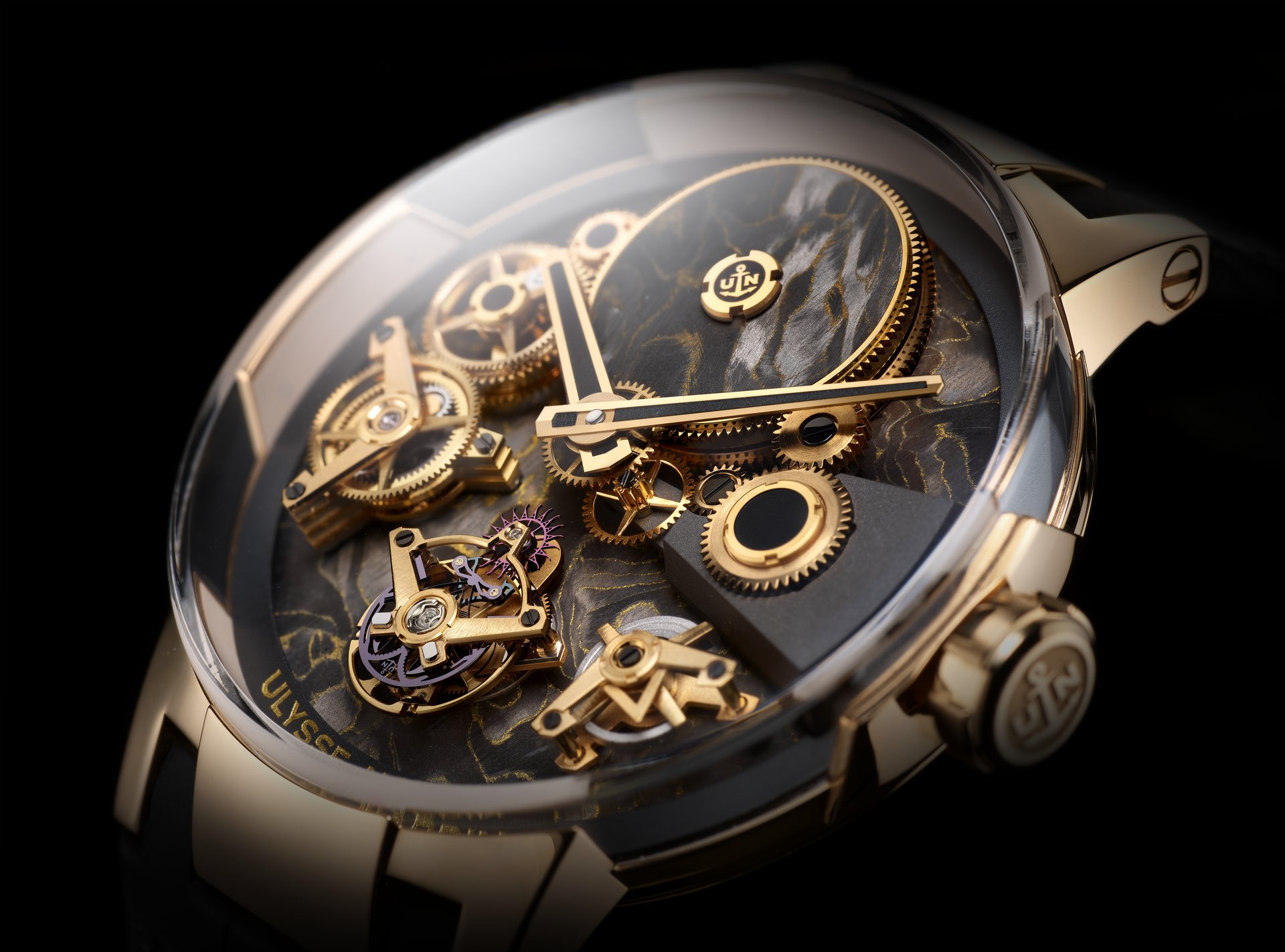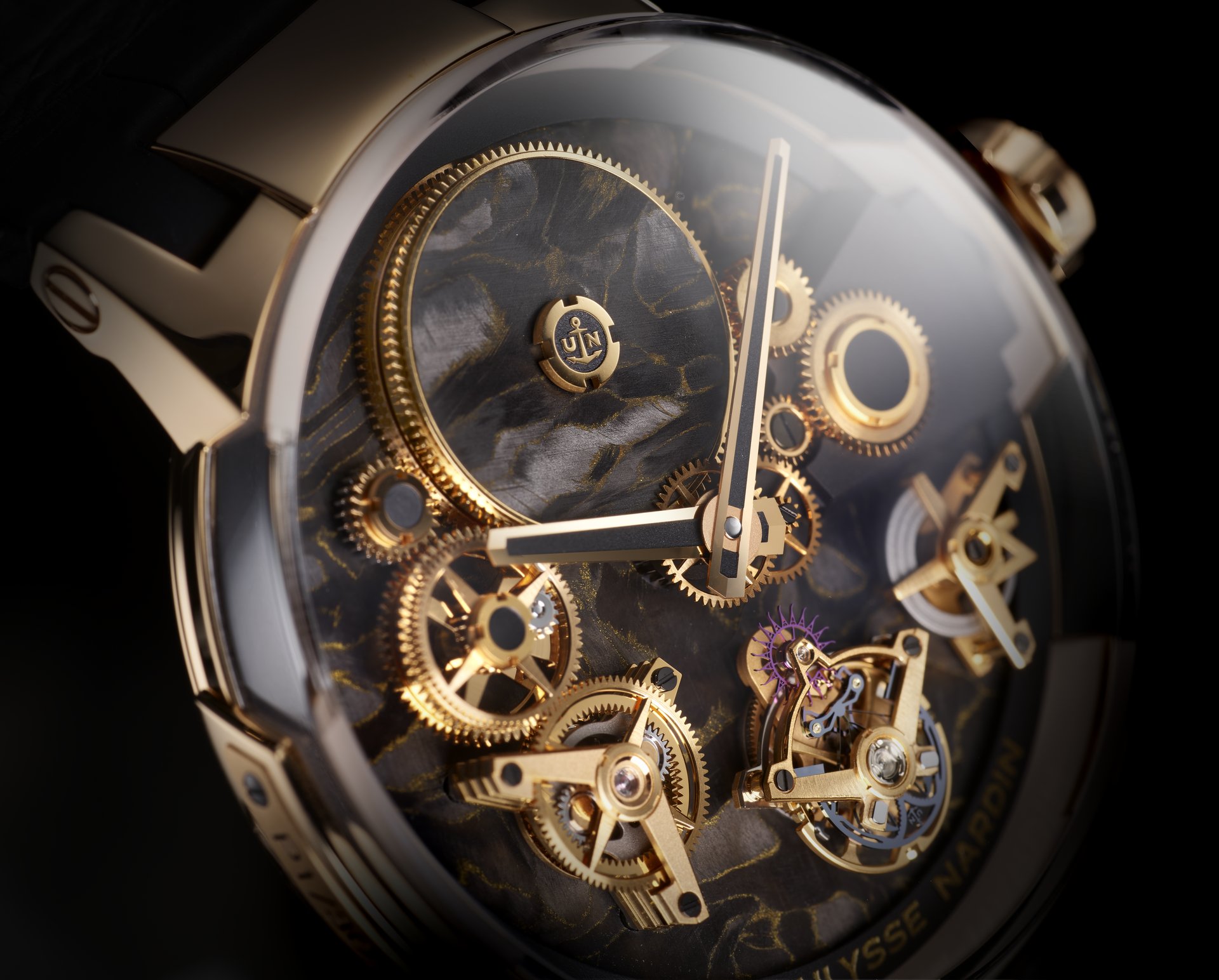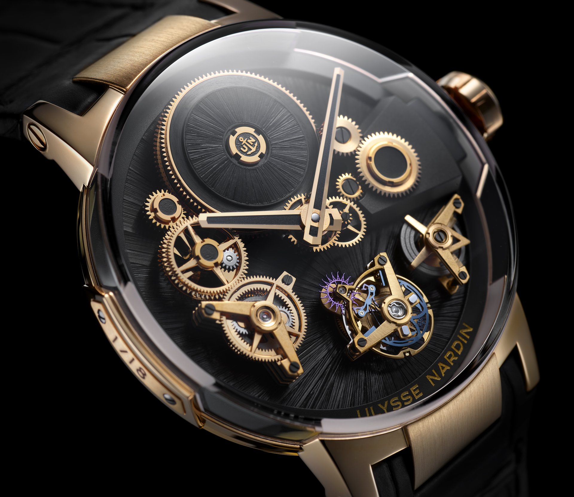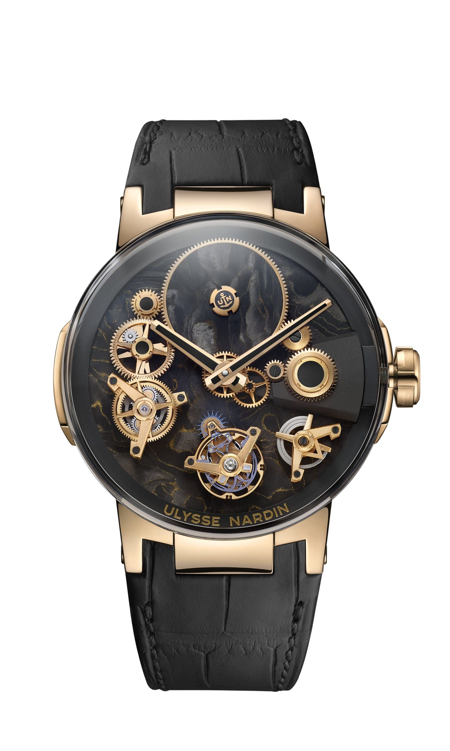 With a 7-day power reserve, its “free-floating” elements seem to move independently of each other to defy gravity. The Silicium technology, which was pioneered by Ulysse Nardin, allows for minimum friction and for the replacement of more traditional watchmaking components, such as precious stones.