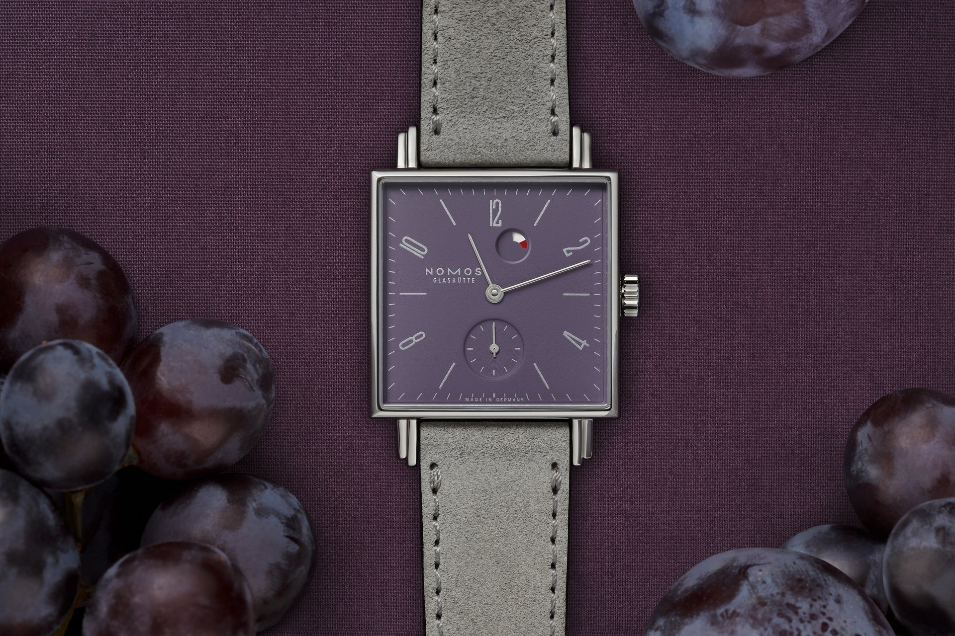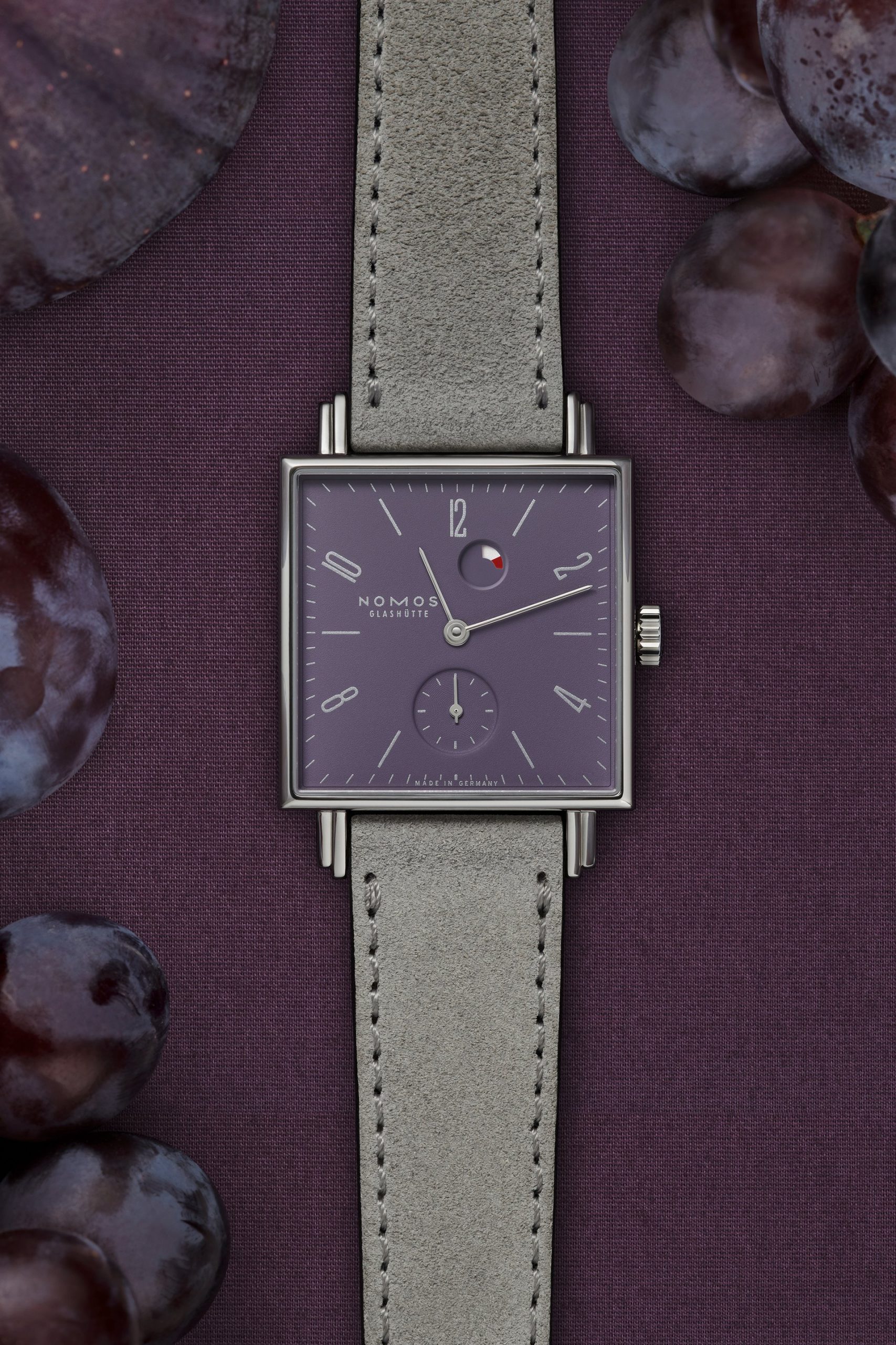 GLASHÜTTE, OCTOBER 2019. Introducing a brand-new timepiece from NOMOS Glashütte that is not afraid to make a statement: Tetra Plum. It features a rich purple dial that pays tribute to nature’s bounty. After blossoming in springtime and ripening over a long, hot summer, by early fall the harvest is ready to be enjoyed—apples and apricots, cherries, peaches, pears, and, of course, plums. This appealing timepiece looks good enough to eat, with silver accents on the numerals, indexes, and hands adding a sophisticated touch.