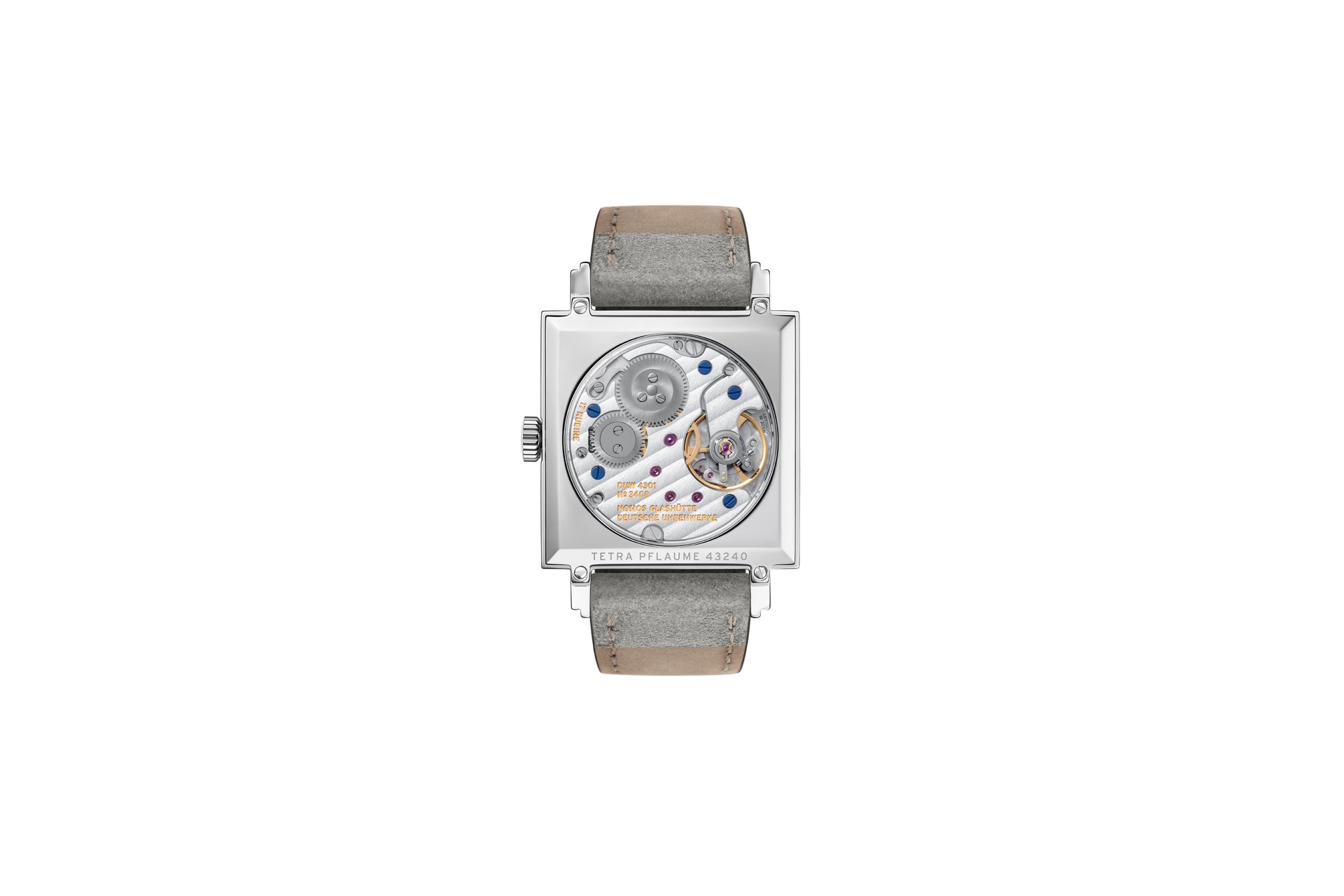 - DUW 4301—in-house built NOMOS calibre with manual winding and power reserve indicator