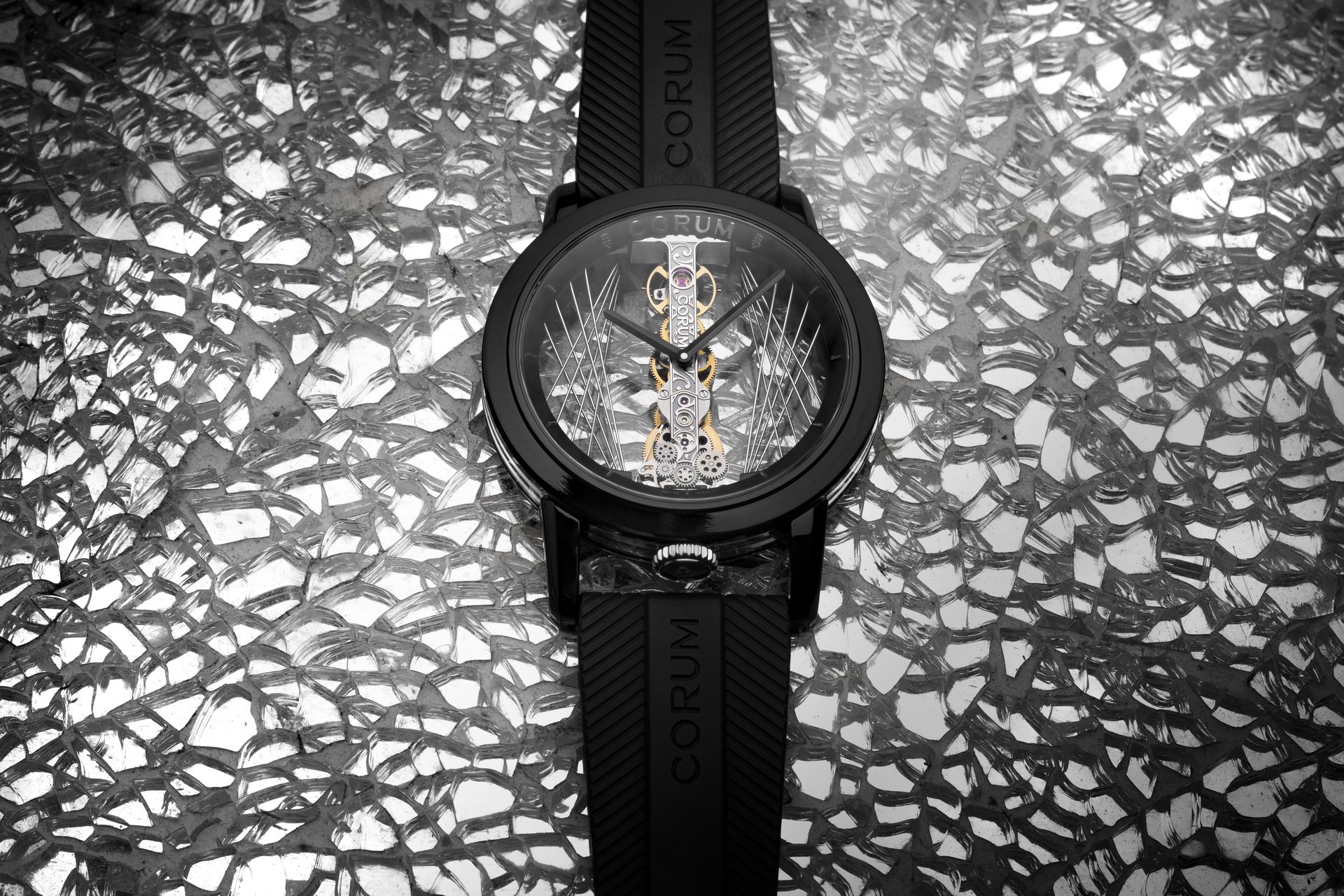 Founded in 1955, Corum represents creative and daring watchmaking. Corum uses an approach free of dogmas that enables a reconceptualisation of movement construction, its casing, and the artistic crafts that brighten the dial. Behind the many technical achievements (baguette movement) and aesthetic achievements (Coin Watch, Feather, Bubble), Corum continues the tradition of high-quality watchmaking that is ahead of its time. Corum, established in La Chaux-de-Fonds, is opening itself up to the contemporary, street art, and classical art worlds, and in doing so attracting the attention of various trendsetters. At once disruptive yet respectful of its watchmaking heritage, Corum maintains its status of a niche brand aimed at demanding collectors of unconventional timepieces. Corum is currently based on four collections that embody its vision of 21st-century watchmaking: Admiral, Bubble, Golden Bridge and Heritage.