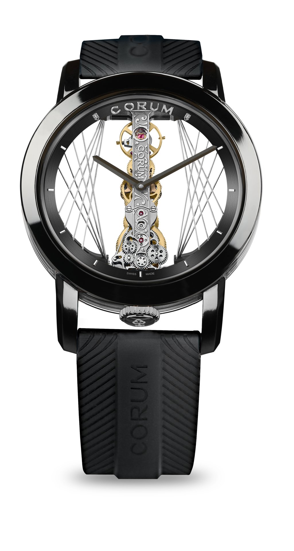 - CORUM logo engraved on the bridge