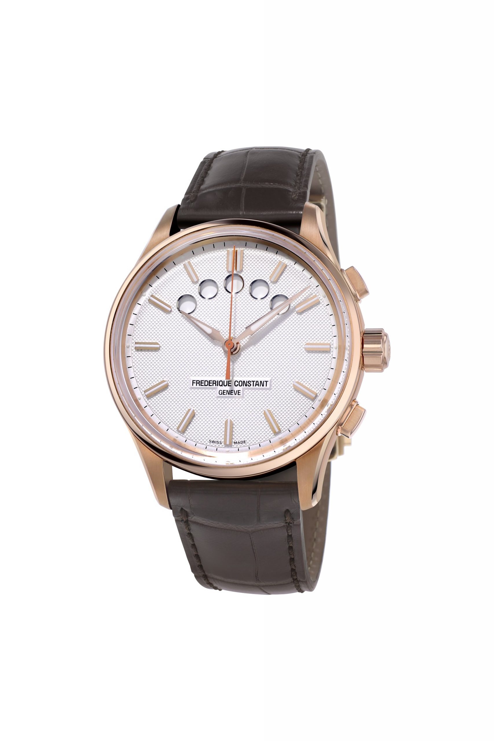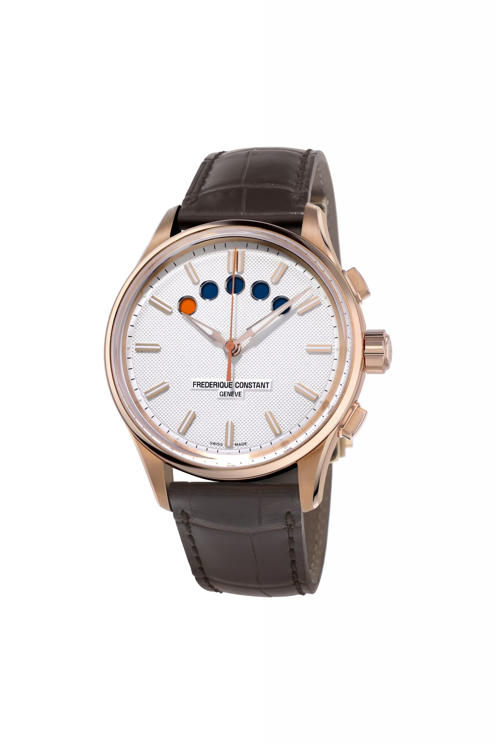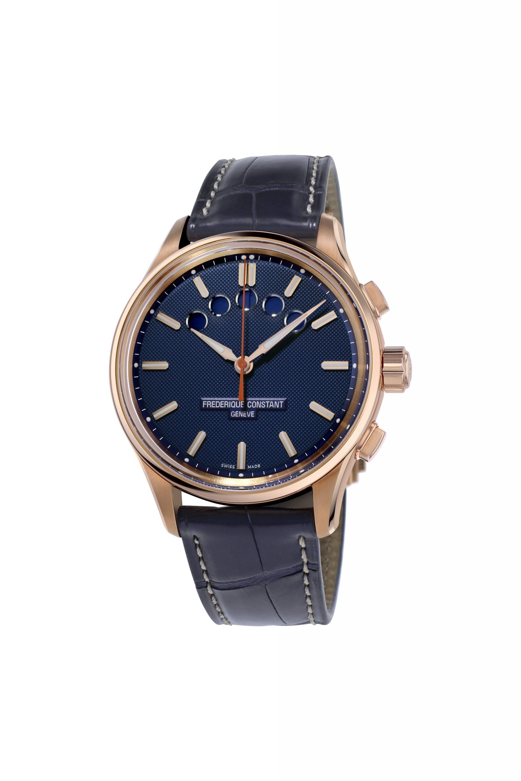 There are already two models to choose from. One features a rose gold-plated case, indexes and hands on a white grained dial. All the hands are coated with Super-LumiNova to ensure they are clearly visible, even at night. The FC-350 movement provides a 38-hour power reserve. The Yacht Timer GMT is no match for saltwater spray and is waterproof to 100 meters. This version comes with a brown alligator strap.