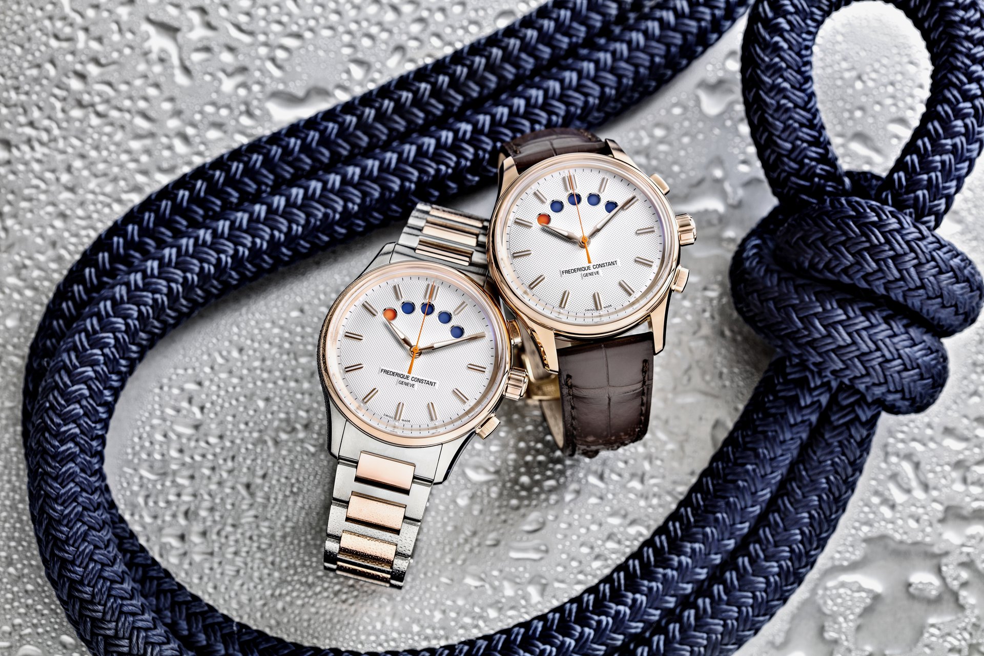 One of the most legendary complications in watchmaking is making a comeback in the sporty-chic collection by Frederique Constant. The manufacture is unveiling the Yacht Timer GMT today, a new model with two versions that are unmistakably nautical in nature.