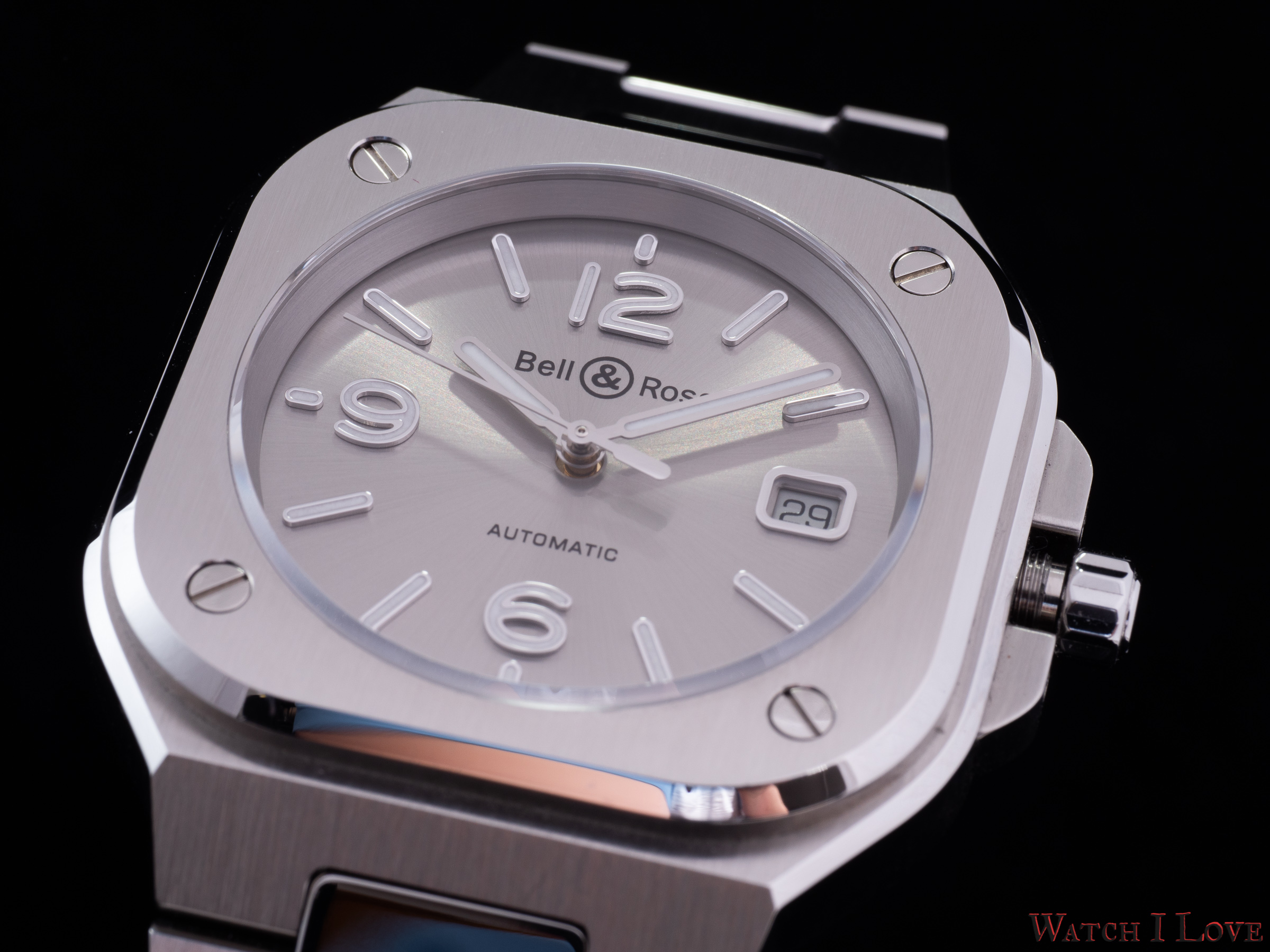 The stepped design creates the feeling of a much slimmer case. Don’t get me wrong, the watch dimensions are well proportioned. But the bevelled parts make the watch more elegant. Don’t forget that Bell & Ross is mainly oriented on instrumentation watches (military and civil, divers, pilots, racing). The BR05 brings a new dimension, still keeping the brand’s specific signatures.