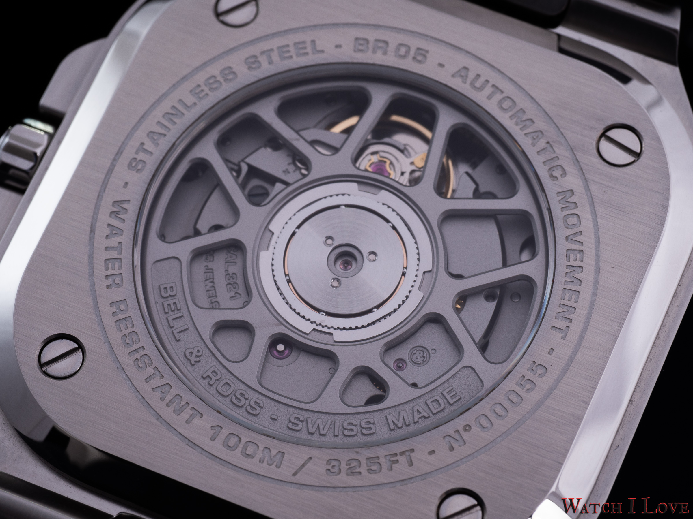 Bell & Ross BR05 collection is powered by the calibre BR-CAL.321. This on is based on Selita SW300-1 that suffered heavy modifications. The movement is visible through the exhibition case back.