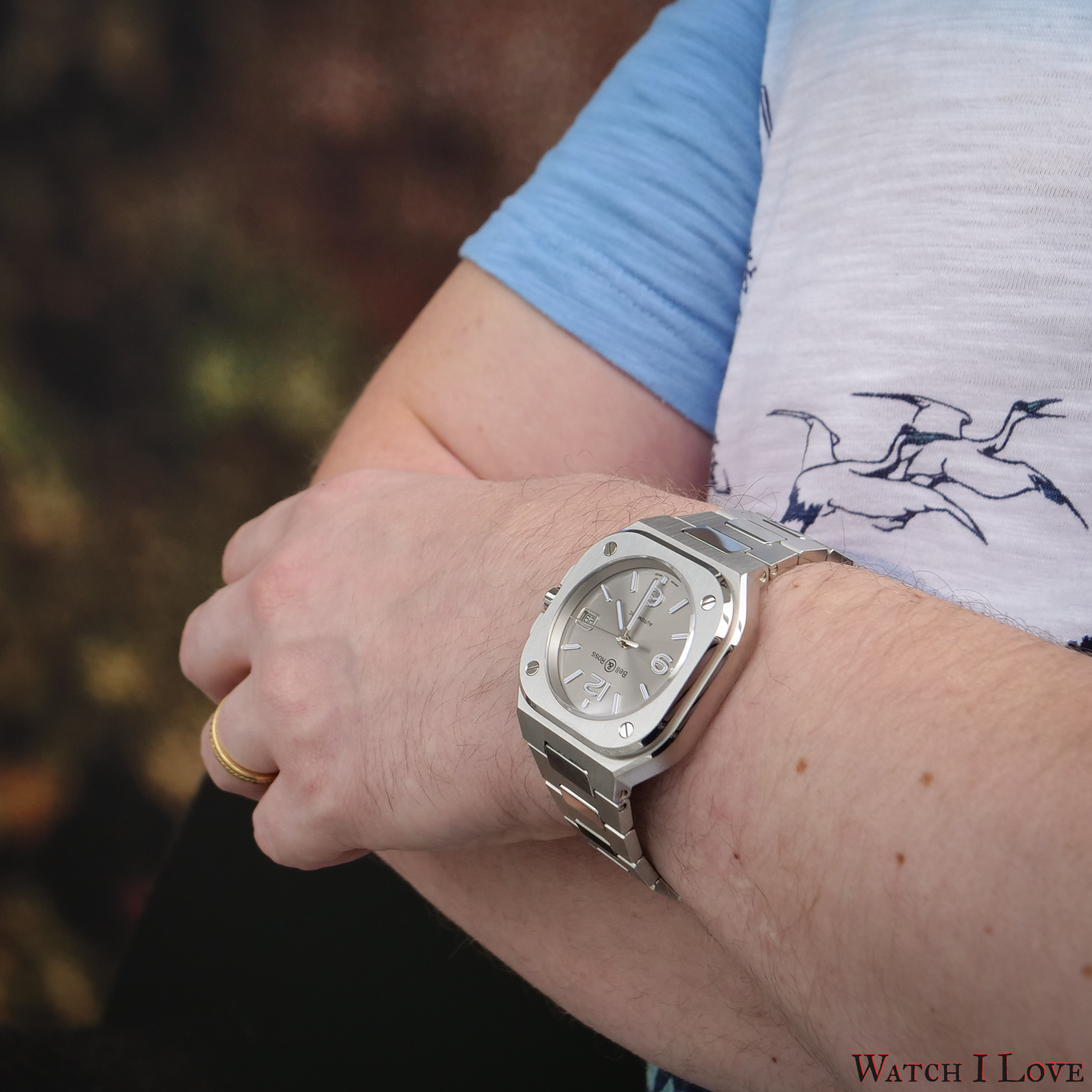 The watch sits comfortably on the wrist. I find it a good daily companion. Its sporty appearance faces well the needs as an only watch. As part of a larger collection the Ref. BR05A-GR-ST/SST has a good position in cost/offering ratio.