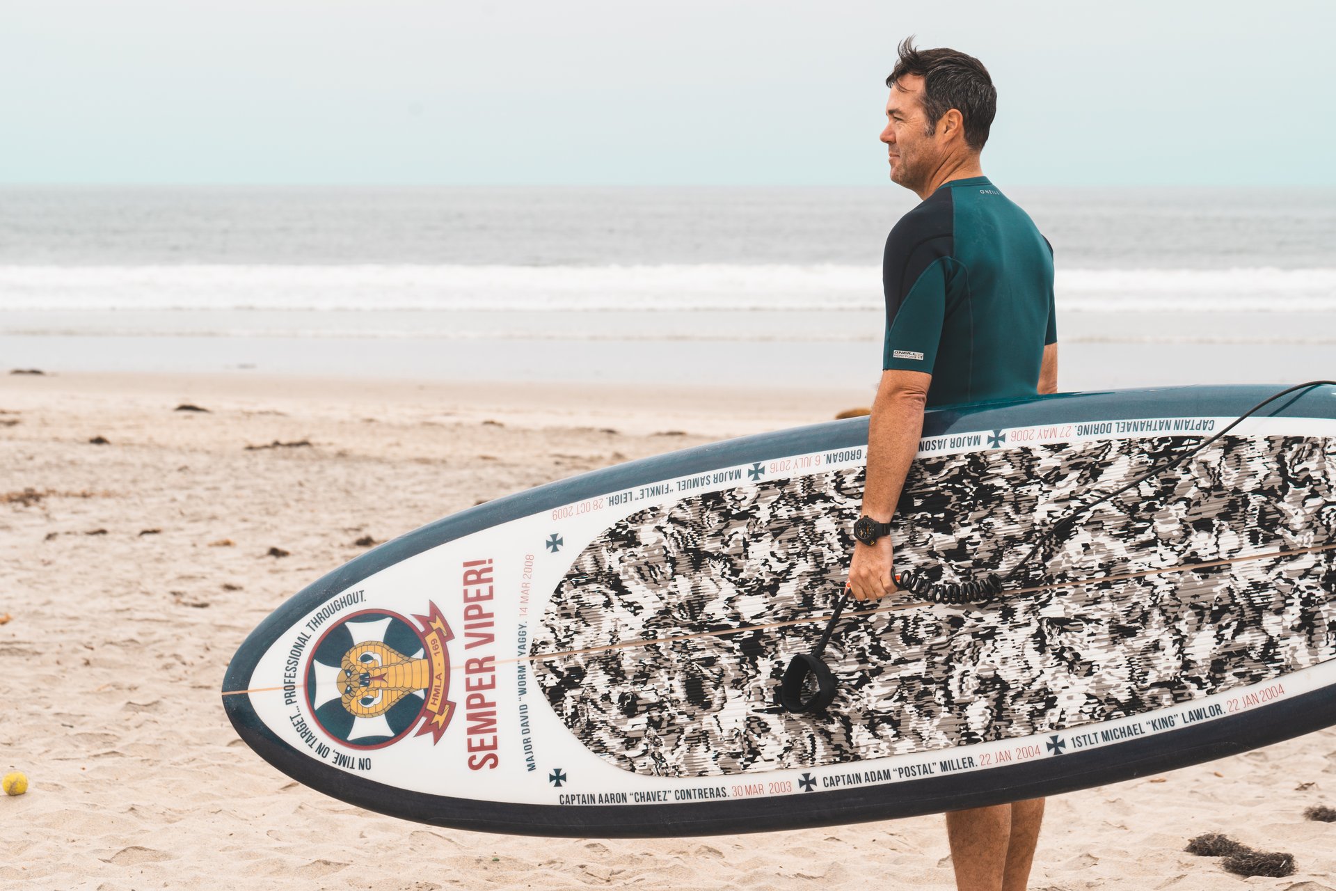 “Surfing is actually one of the most effective therapies we’ve ever found for combating depression as well as post-traumatic stress,” says Kyle Buckett. “When veterans are in the ocean environment, they are completely in the moment and can escape from their injuries and traumas. It’s our job to put them out there with the right equipment and tie them in with the growing community of surfing veterans.”