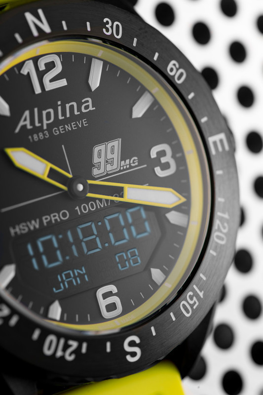 Michael Goulian designed the watch himself using the AlpinerX configurator from the Kickstarter project, finetuning it to match the new colours of his U.S. based air show plane. You can see a yellow inner ring and a matching strap with the Team 99 logo at 2 o’clock on this one-of-a-kind AlpinerX smartwatch.
