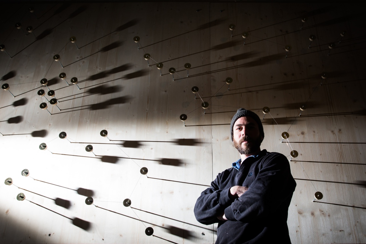 Alexandre Joly (b. 1977 in Saint-Julien-en-Genevois, France) is an installation artist. His current practice combines sculpture and sound installations, often creating in situ projects that explore the aesthetic, ethical and spiritual relations between man and nature. His site-specific works and performances interweave visual and phonic elements, forming singular imaginary landscapes that one can apprehend with the entire body.