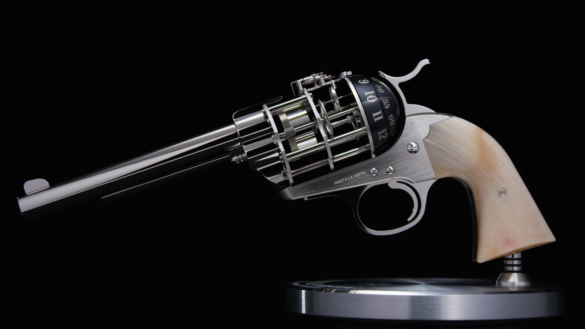 But why the revolver? And why a clock?