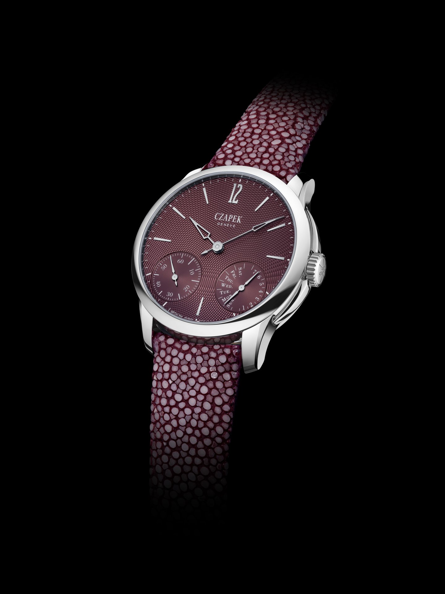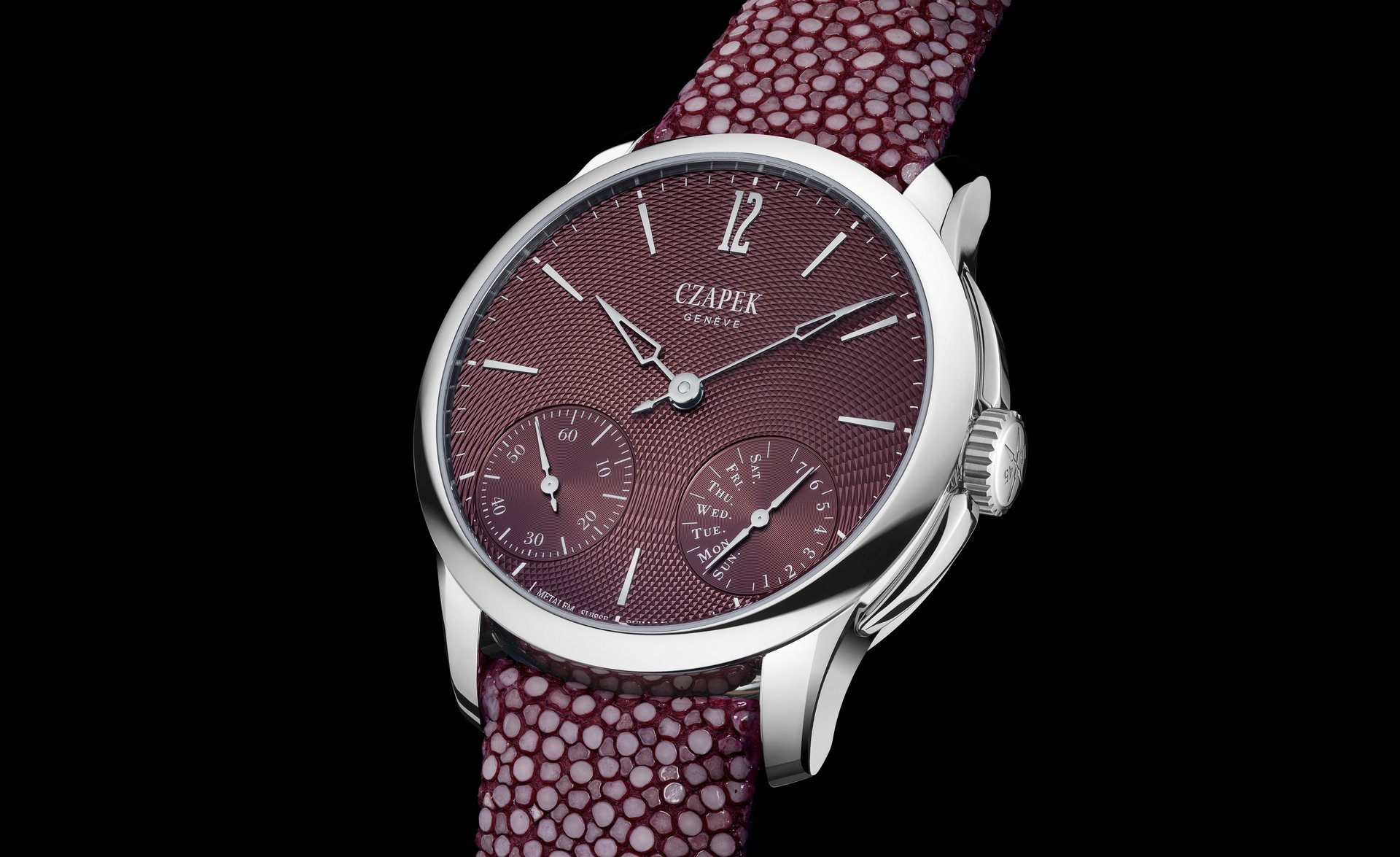 The Dubai Watch Week, the most important fine watchmaking salon in the Middle East, is the perfect stage to present in avant-première the latest additions to Czapek Quai des Bergues collection. The two new references have in common a unique and unusual engine-turned dial in a “rosewood” colour, a demonstration of Czapek’s continuous exploration of the endless possibilities of this fine watchmaking technique in collaboration with its partner Metalem – one of the best guilloche makers in the industry, based in Le Locle, Switzerland.