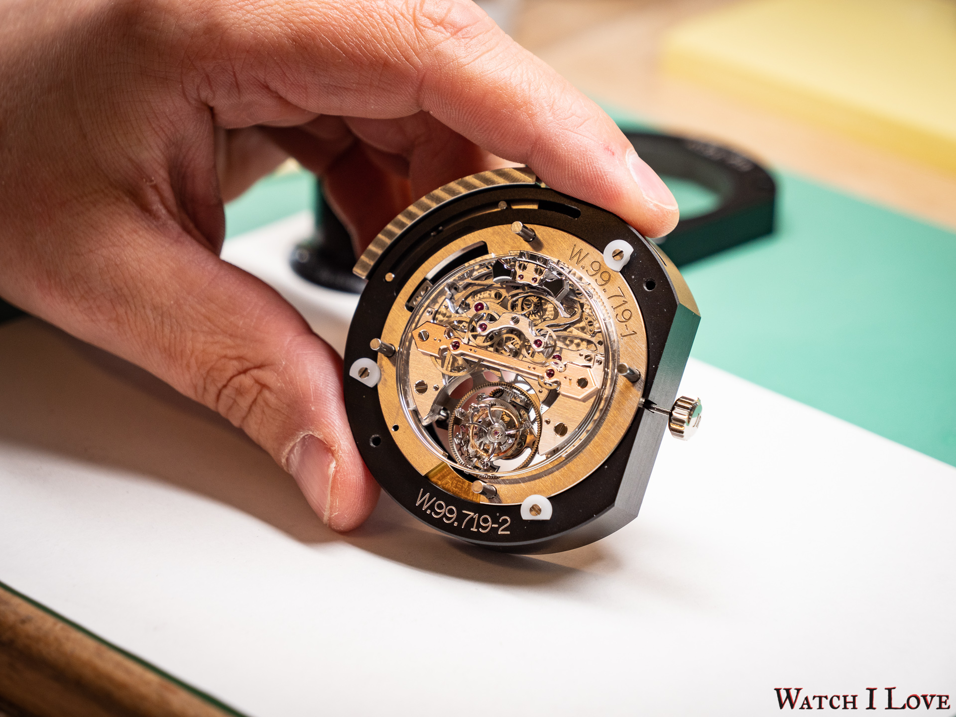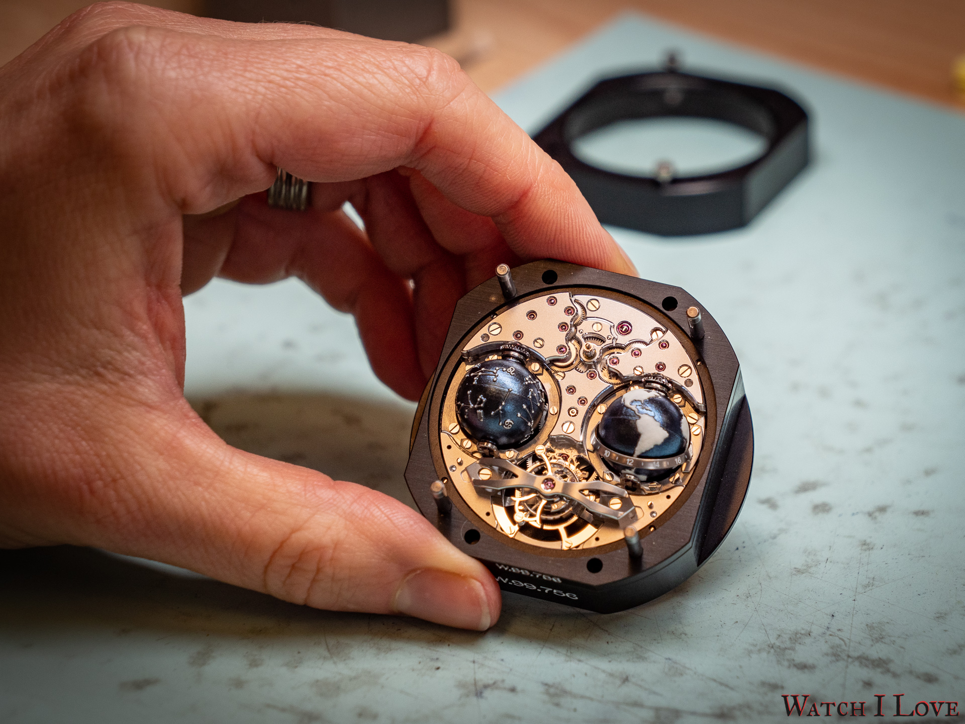Some high complexity calibres (tourbillons) are assembled one time and tested. Then is disassembled, the components are cleaned and after that assembled back. The watch is tested chronometrical and aesthetical.