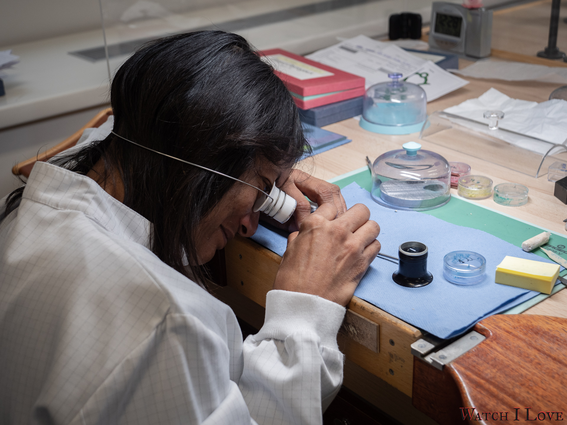 The first room we visited was dedicated to the decorations. Six skilled watchmakers take care of the most delicate finishes. Everything here is done by hand.