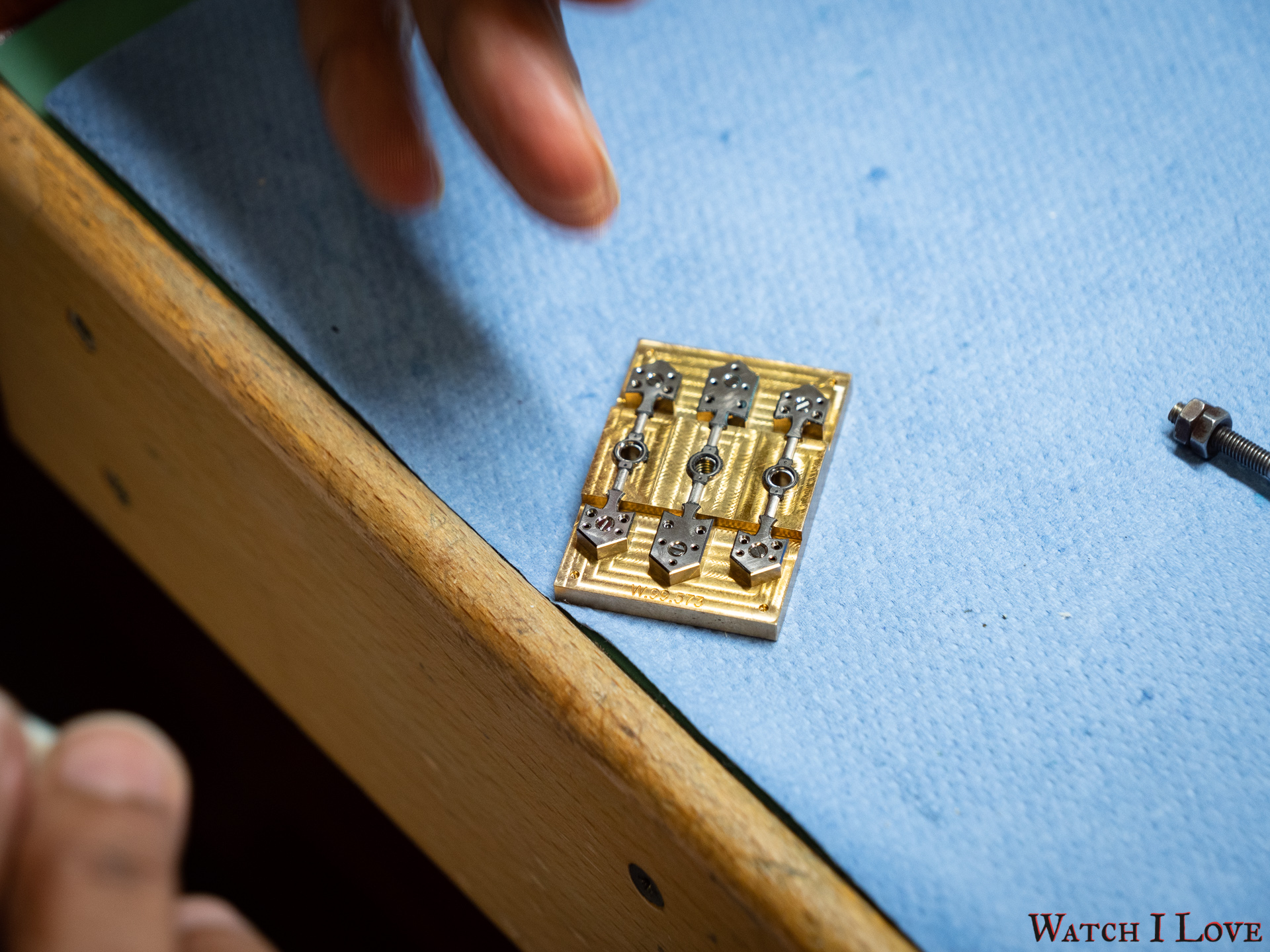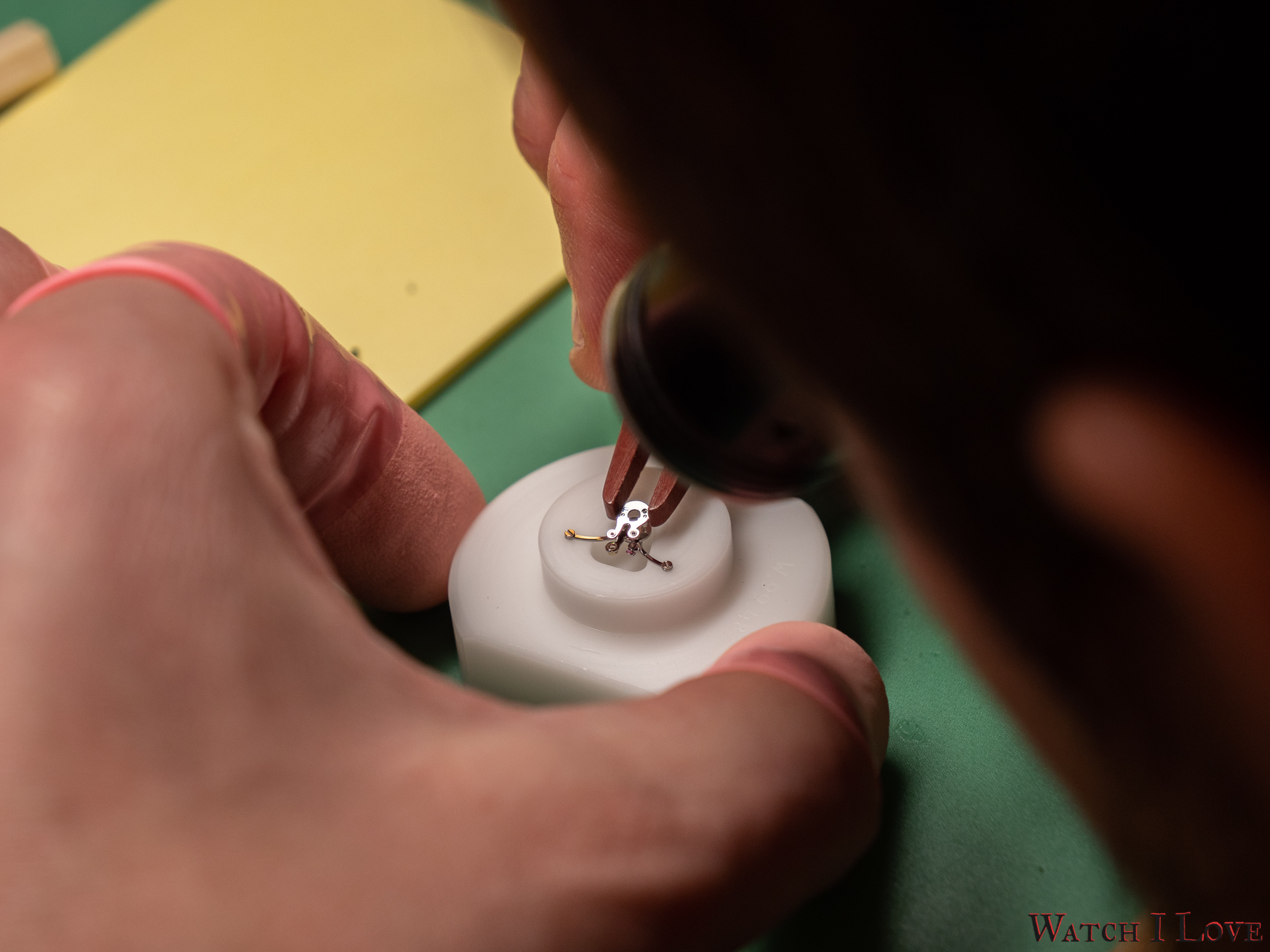 The watchmaker polish the screws himself. These need to be perfect before montage. A watchmaker can spend up to one day to polish the screws for a movement.
