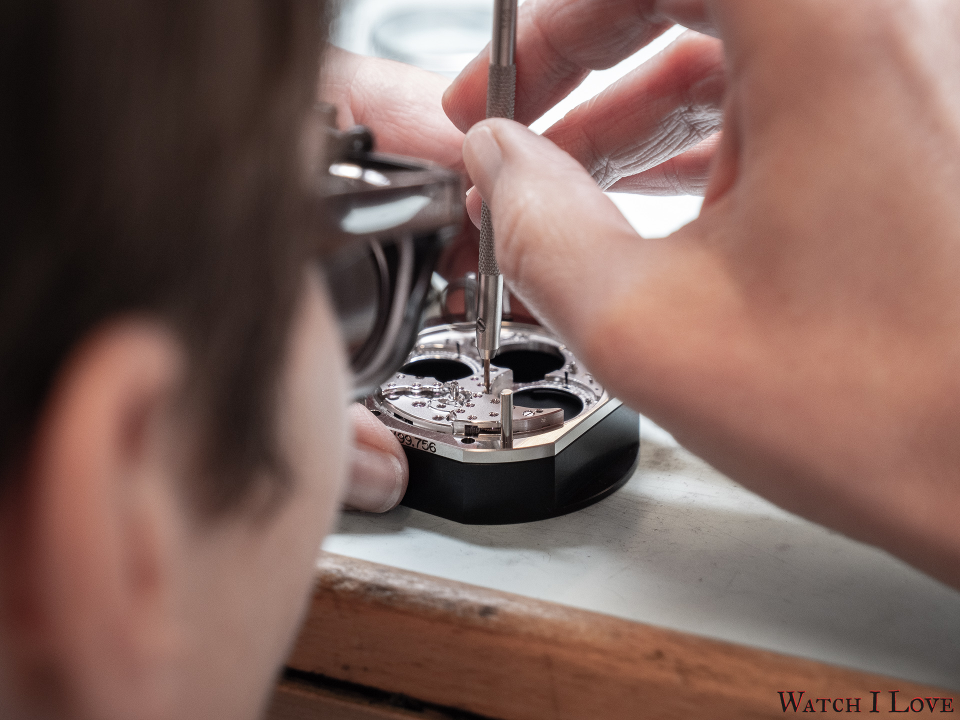 In the Asamblage Atelier (assembly) work 20 watchmakers. Two watchmakers are dedicated for the after-sale service. Another two are taking care of the prototypes for the Haute-Horlogerie pieces. For the minute repeaters are dedicated four watchmakers.
