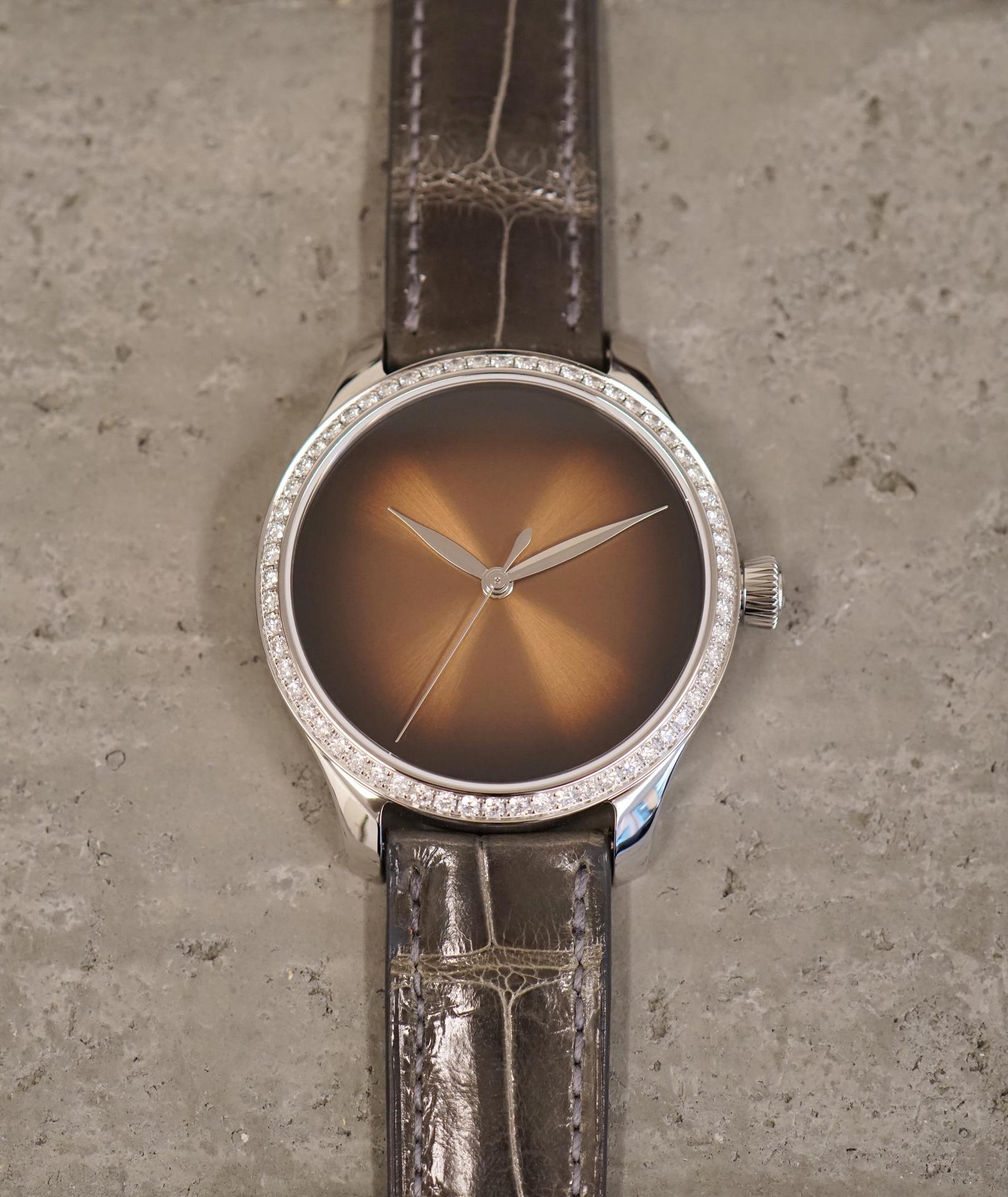 In collaboration with Ahmed Seddiqi & Sons, H. Moser & Cie. has created two limited edition timepieces featuring dials in brand new colourways. In tribute to the long-standing partnership that links the Seddiqi and Meylan families, these two models celebrate the friendship and values that these two firms share. A fumé dial with a sunburst pattern in warm tones is combined with the bold aesthetic of the Swiss Alp Watch, available in steel with a black DLC treatment. The second model boasts a taupe fumé dial which subtly enhances the harmonious forms and perfectly balanced proportions of the 38-mm Endeavour case, created from steel and featuring a bezel set with diamonds. These two creations form part of H. Moser & Cie.’s Concept series of watches, with neither logo nor indices, and will be officially launched to coincide with Dubai Watch Week.