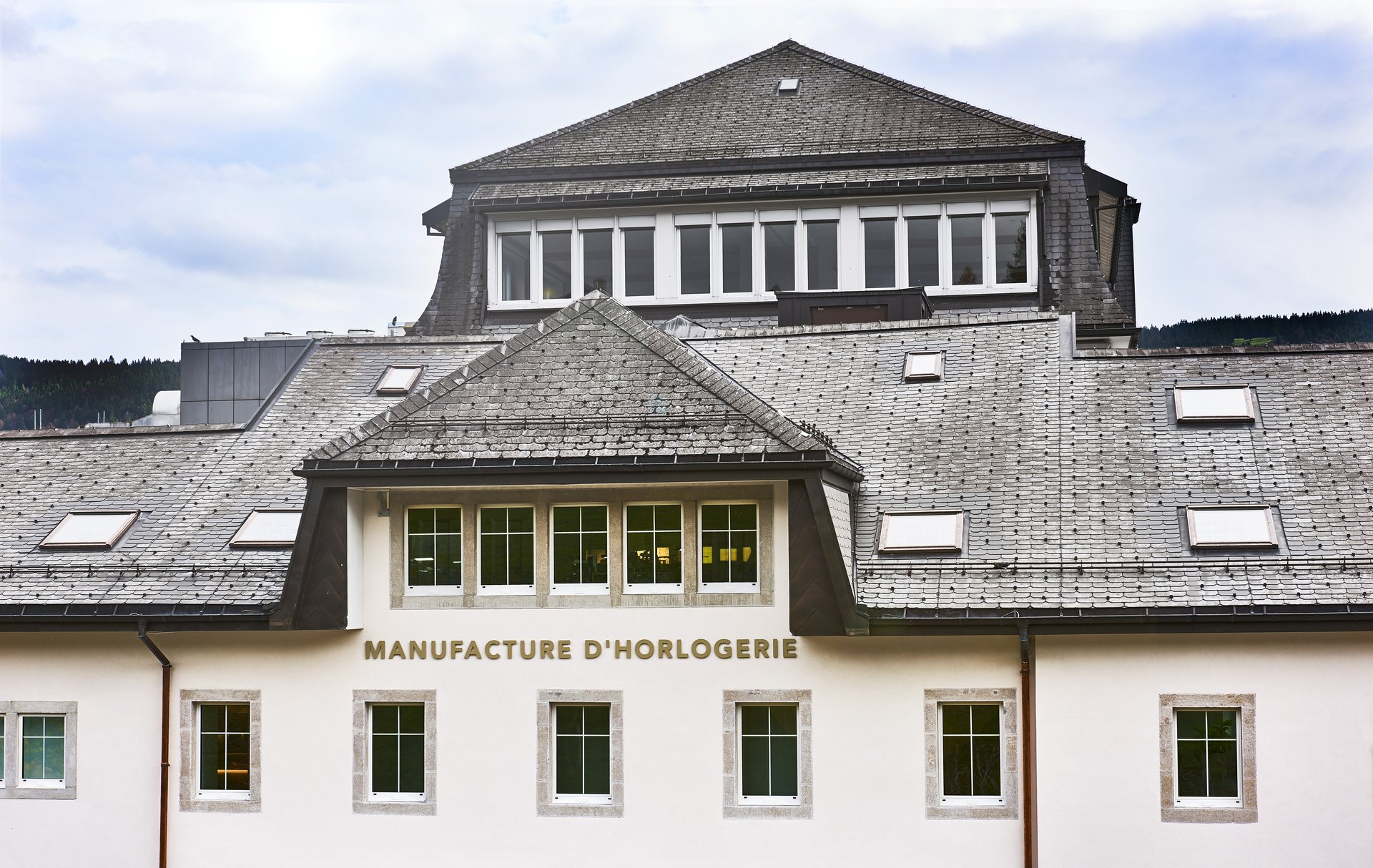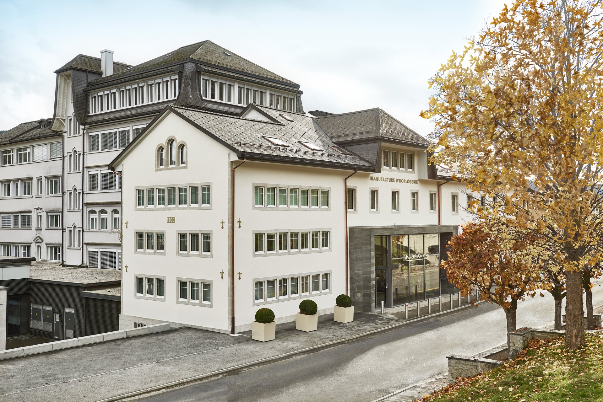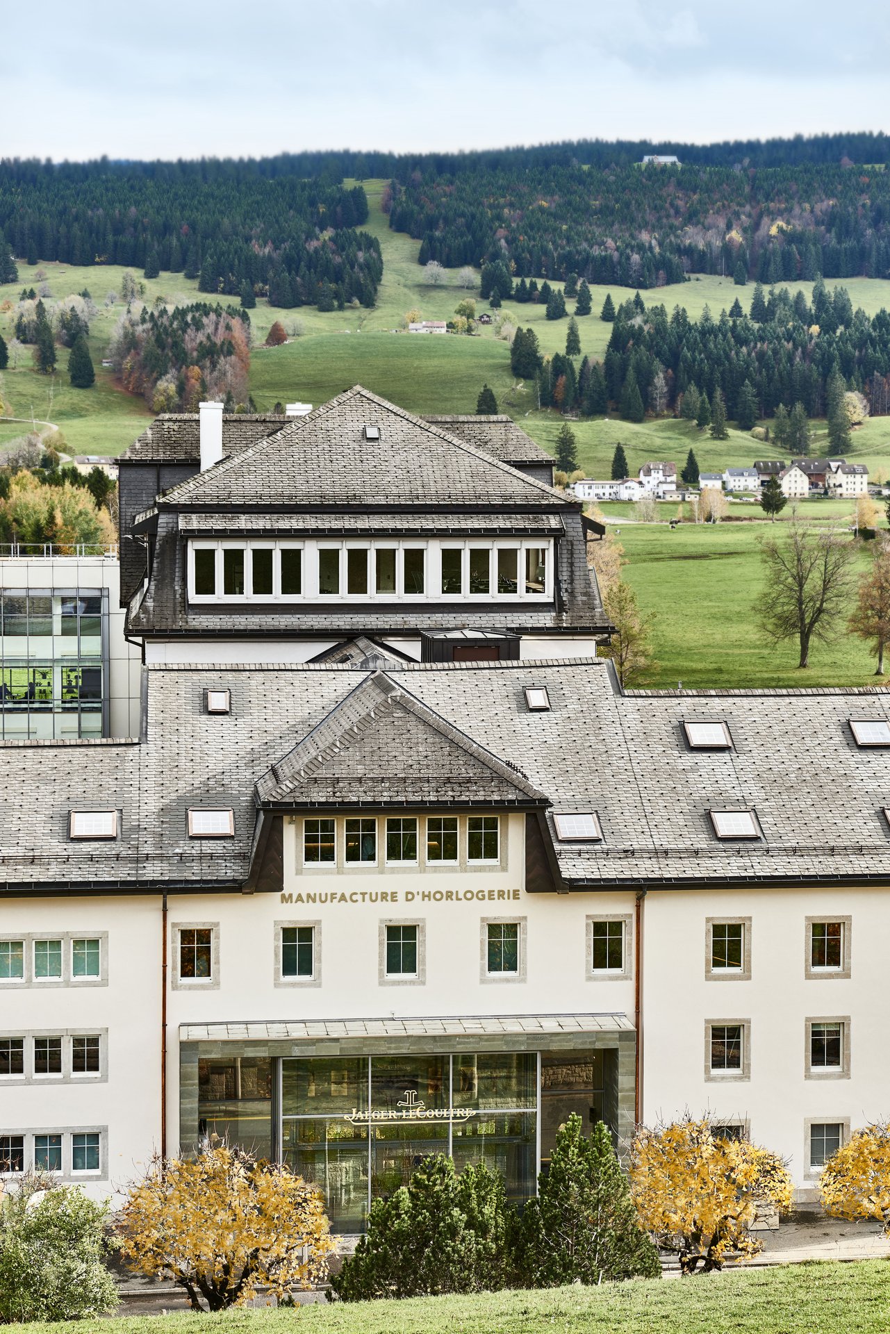 For five months, the works consisted of restoring the historic appearance back to this building. For this, the Luc Chappuis Maison carried out substantive design operations: new lime plaster, new window frames made of Jura stones, bush-hammer technique… An opportunity for Jaeger-LeCoultre to pay homage to the past all while meeting the new energy-saving norms and displaying the Maison’s primary vocation. “MANUFACTURE D’HORLOGERIE” (Watchmaking Manufacture) is written in appliqué letters above the entrance.