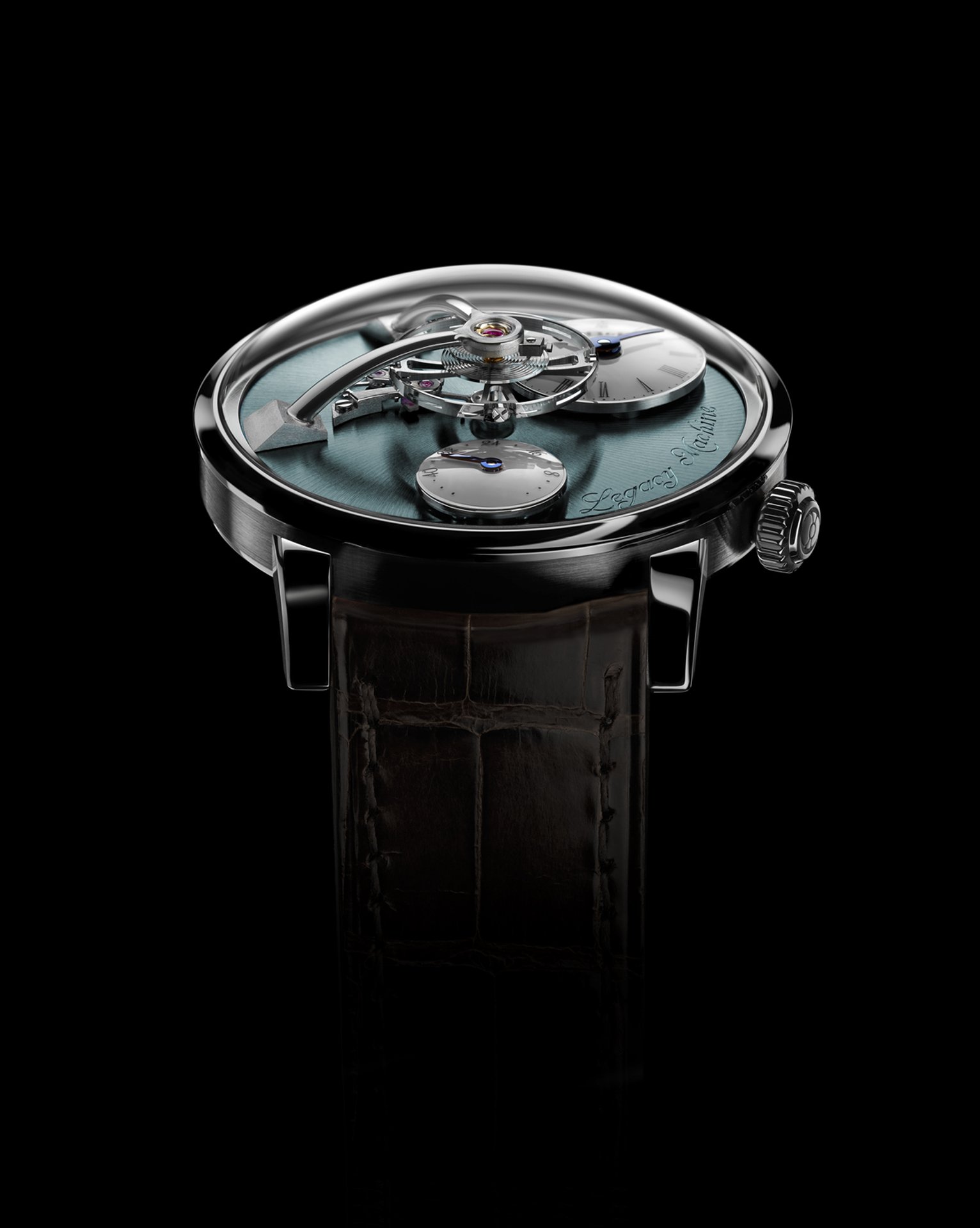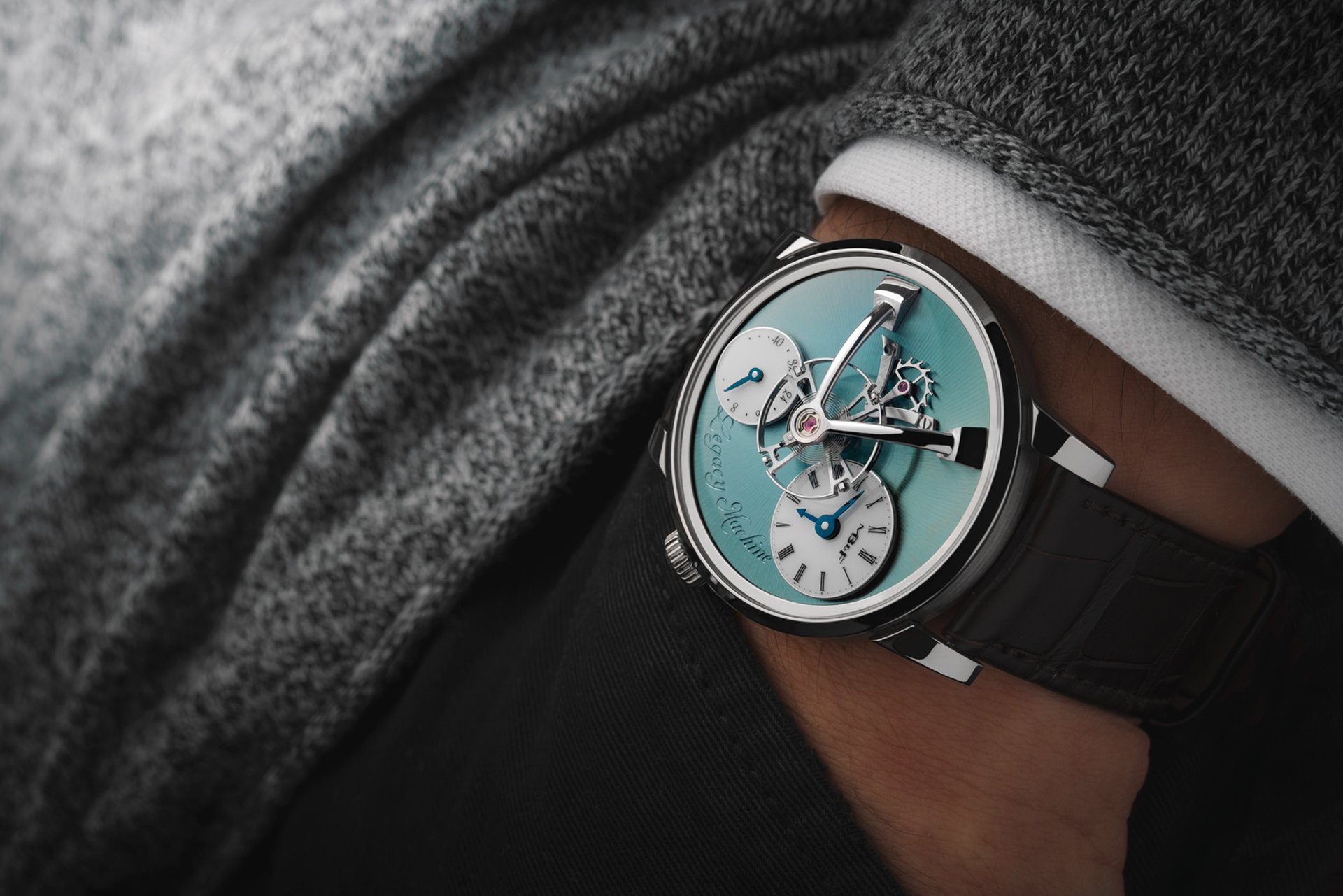 The base dial plate bears the calligraphic hand-engraved “Legacy Machine”.