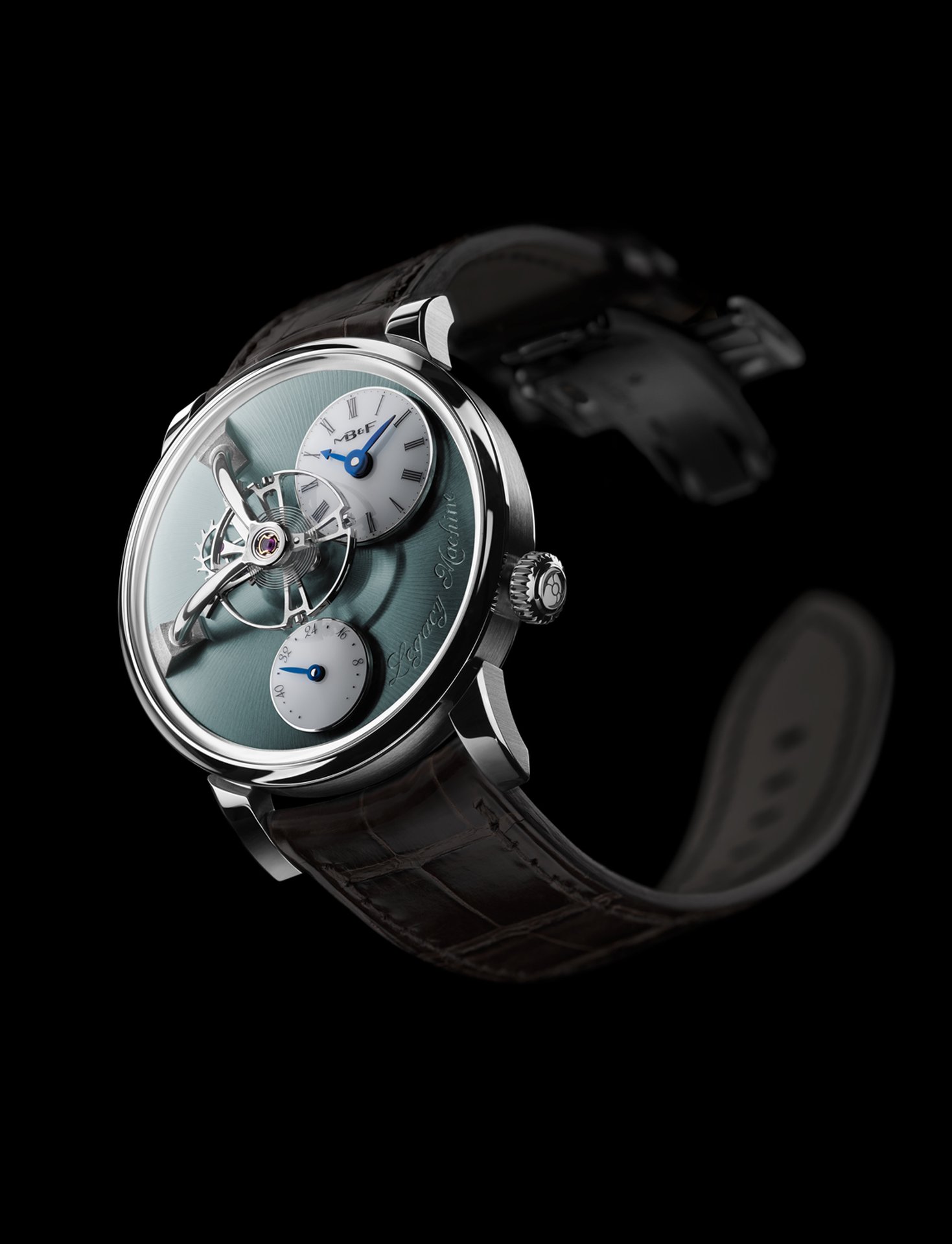 While MB&F’s futuristic Horological Machines have a firm foundation in the very best of traditional horology, Büsser wanted to pay homage to that rich tradition by imagining the type of timepiece he might create if he had been born a 100 years earlier. With its large, sedately oscillating balance, domed dials, historical bridge design and classical fine-finishing, Legacy Machines are the very contemporary, yet traditionally elegant fruition of that dream.
