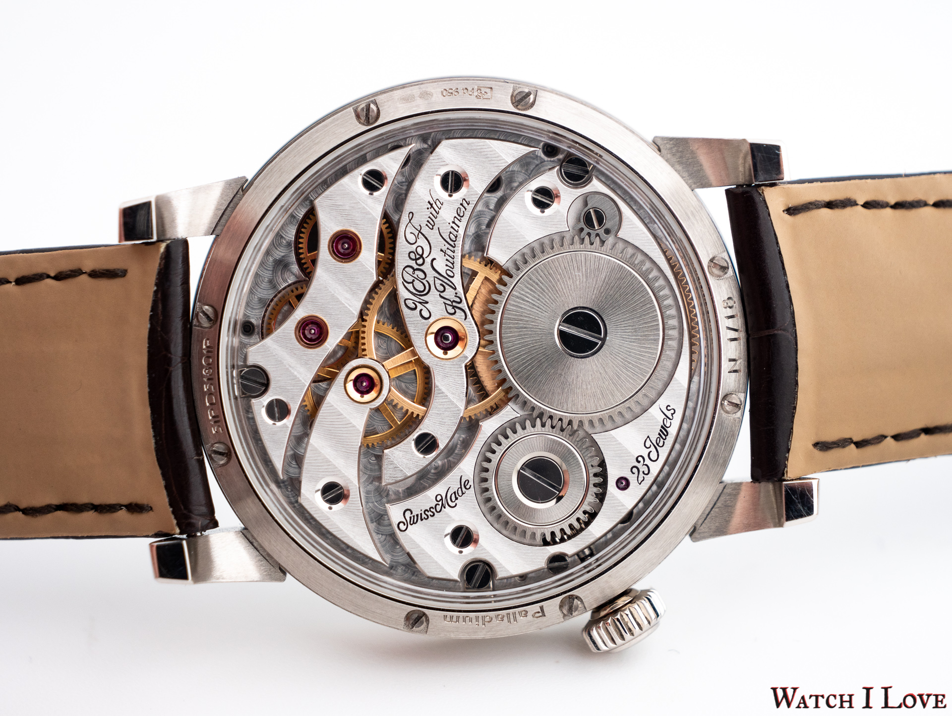 The first thing that stroke me was the engaging shine of the palladium case. The good look is given by the specific silvery-white appearance of the Platinum group metals (palladium, platinum, rhodium, ruthenium, iridium and osmium). The metals are rare and have a vital role in our daily life. Just think about the catalytic converters in the cars that surround us (Wikipedia is a good source of info on this topic).