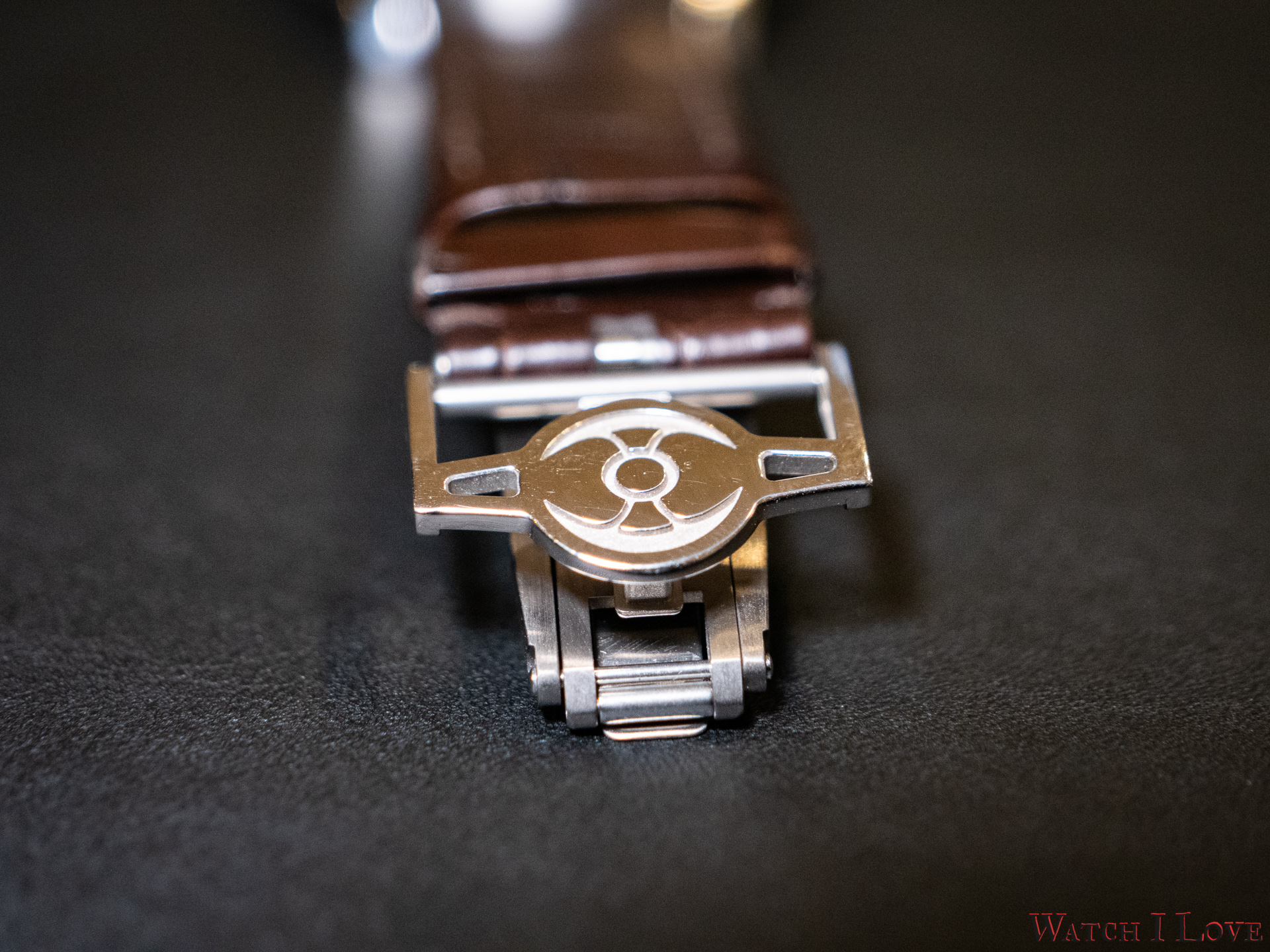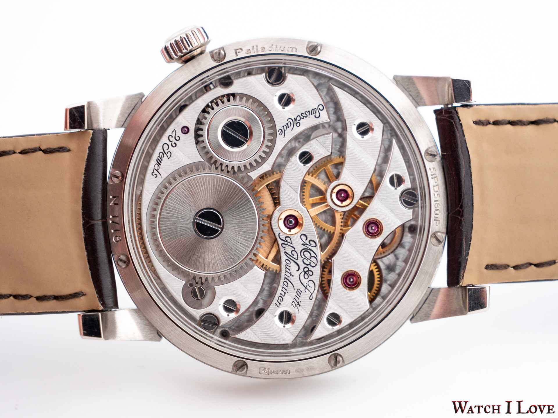 The palladium case looks great. Sized at 40mm diameter with a height of 16mm, the watch has balanced dimensions, imposing no gender barrier (no real collector, lady or gent will care about such a frivolous topic).