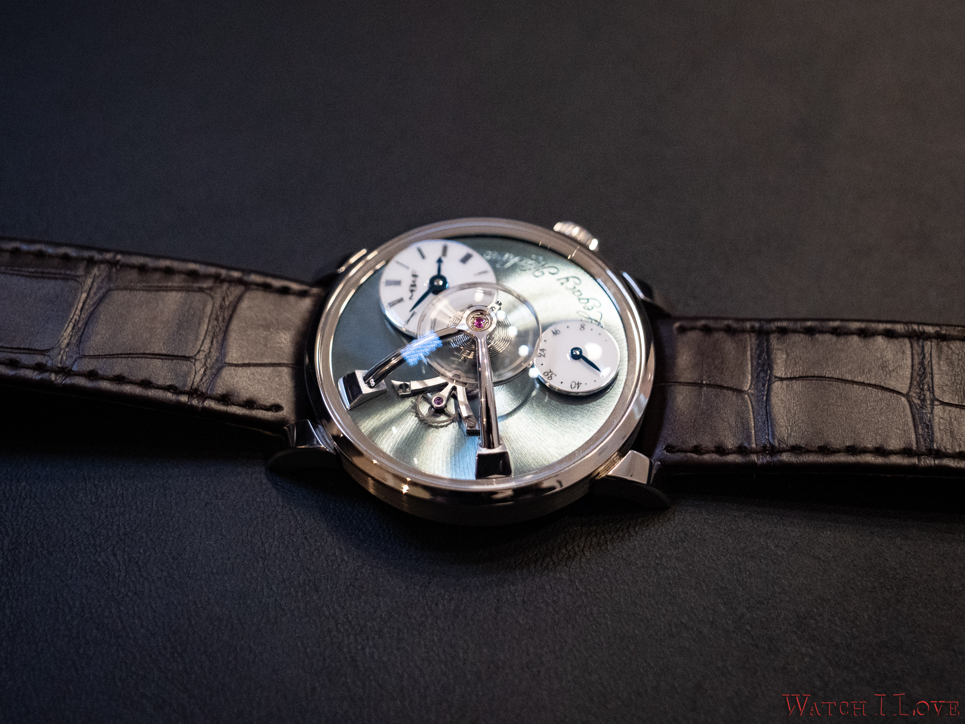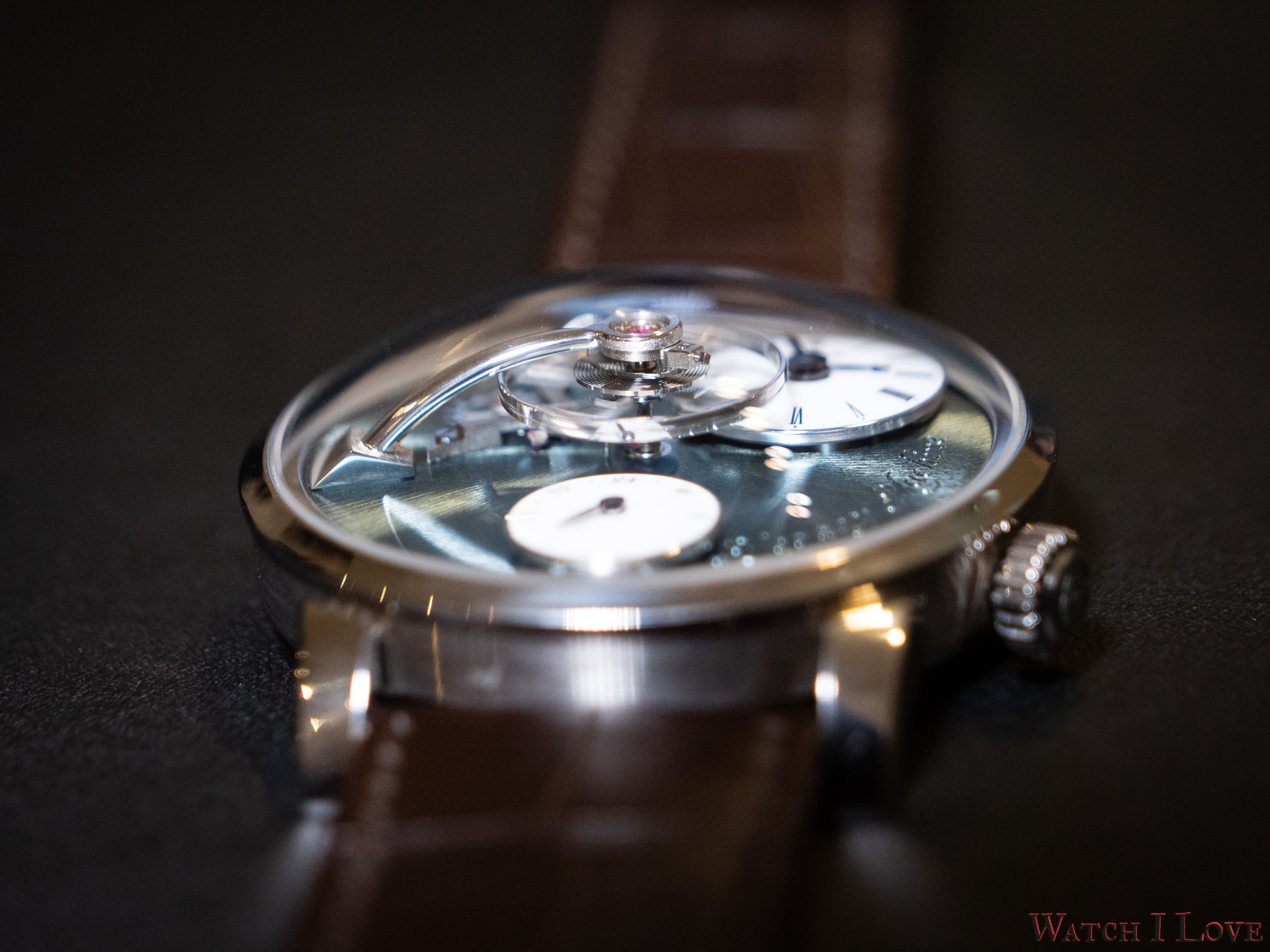 What was surprising though is just how radically he re-interpreted tradition by relocating the balance wheel from its more usual position hidden at the back of the movement to majestically floating not just the above movement but high above the dial.