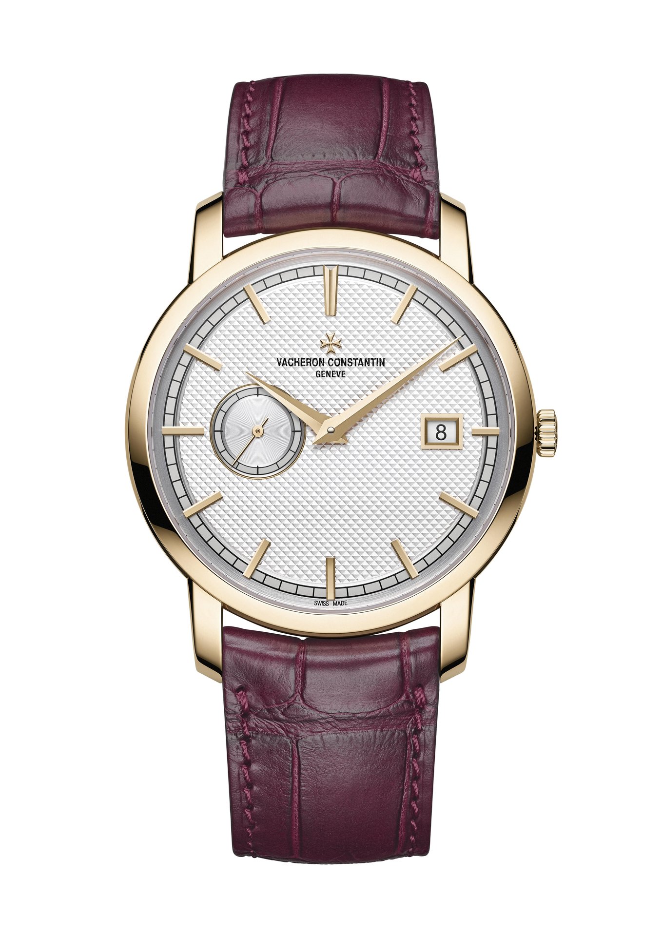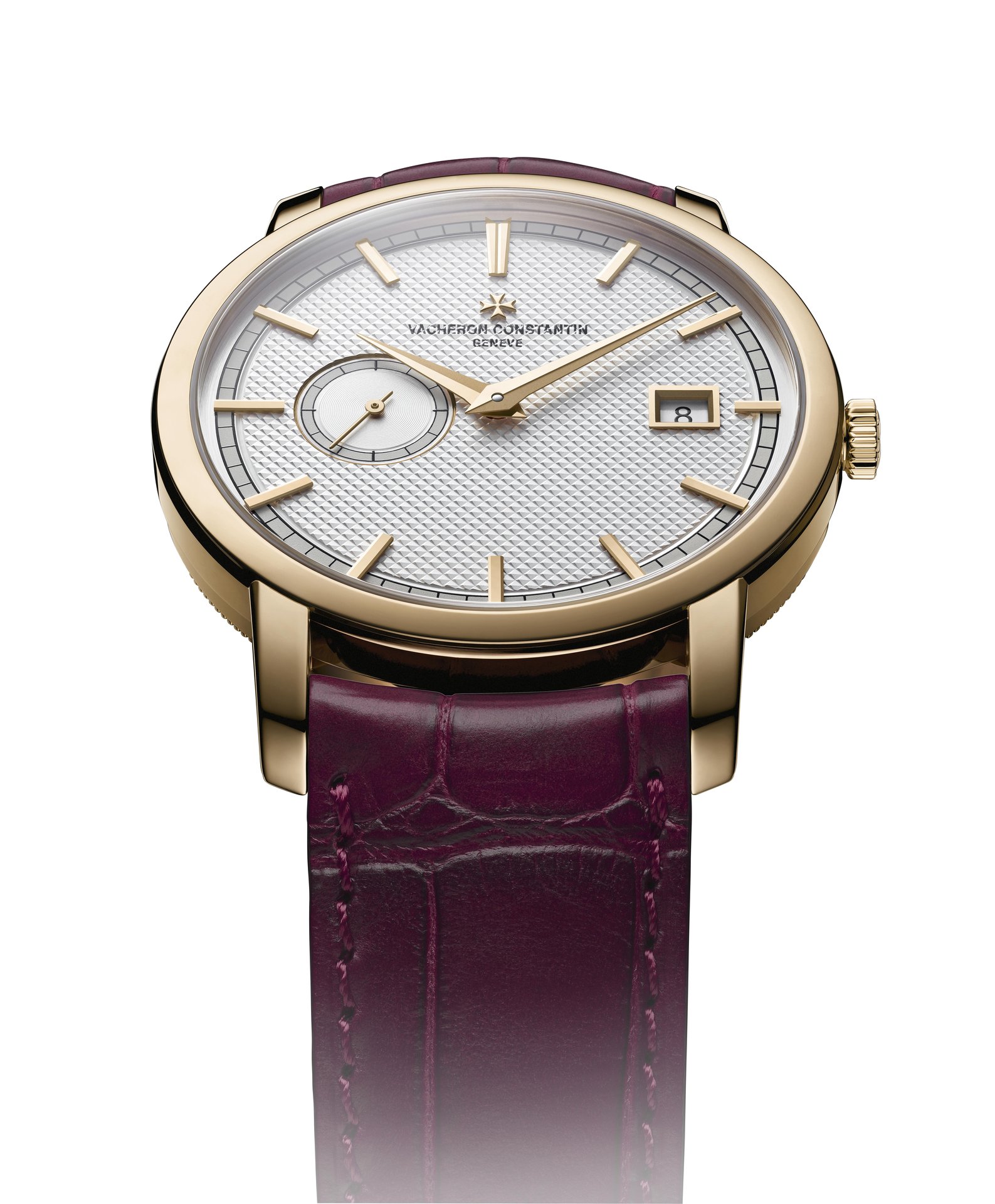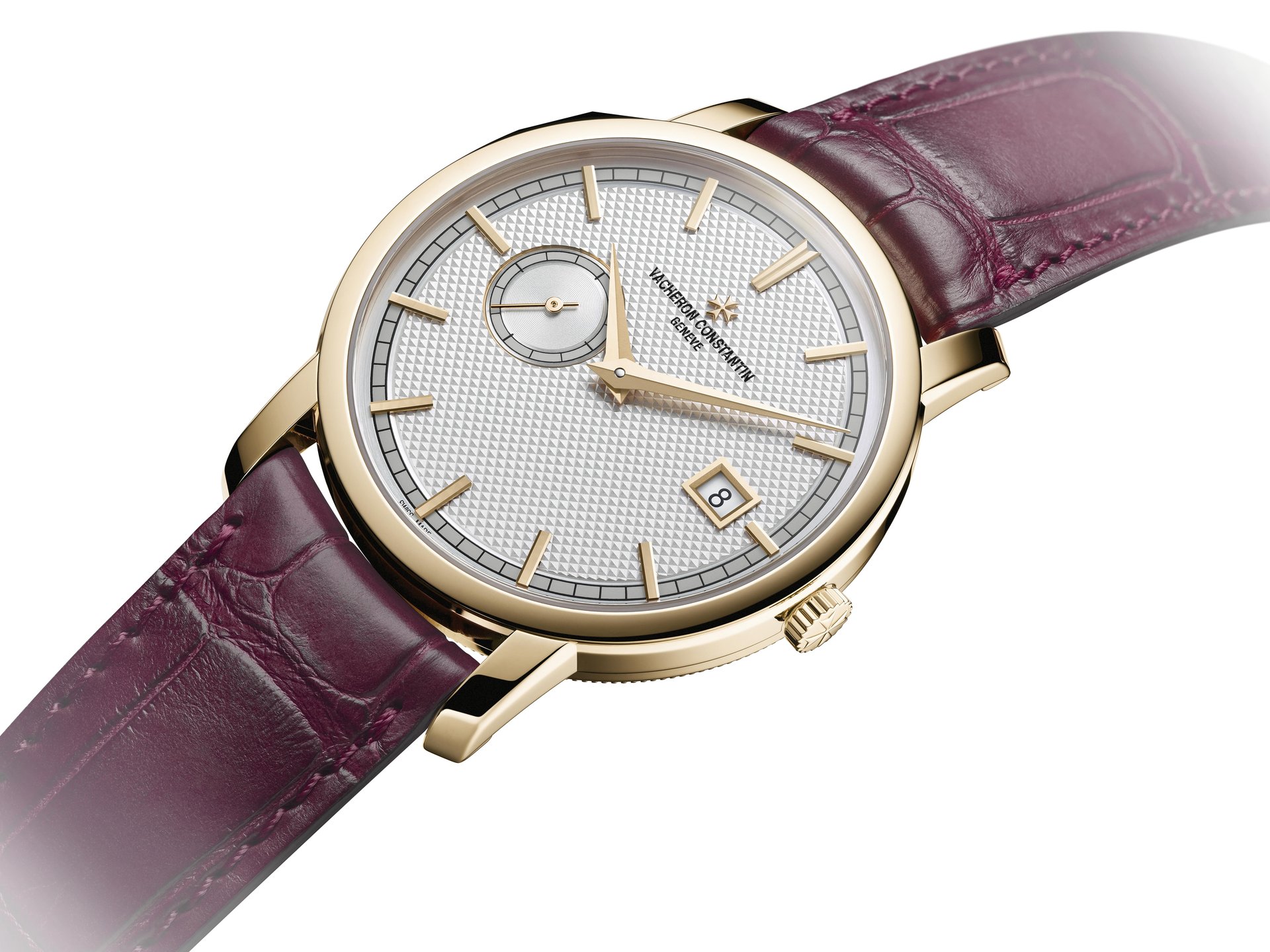 Graced with the sized 38 mm-diameter 18K 5N pink gold case, the men’s model features a date window and small seconds at 3 o’clock and 9 o’clock with a simple display. The timepiece is equipped with the mechanical self-winding caliber 2455 developed and manufactured by Vacheron Constantin, including a comfortable 40-hour power reserve. To provide a more accurate time setting, the caliber features a special device for stopping the seconds hand when adjusting the time. Moreover, the construction and finishing of the caliber with a 22K gold rotor featuring a pattern inspired by the Maltese cross.