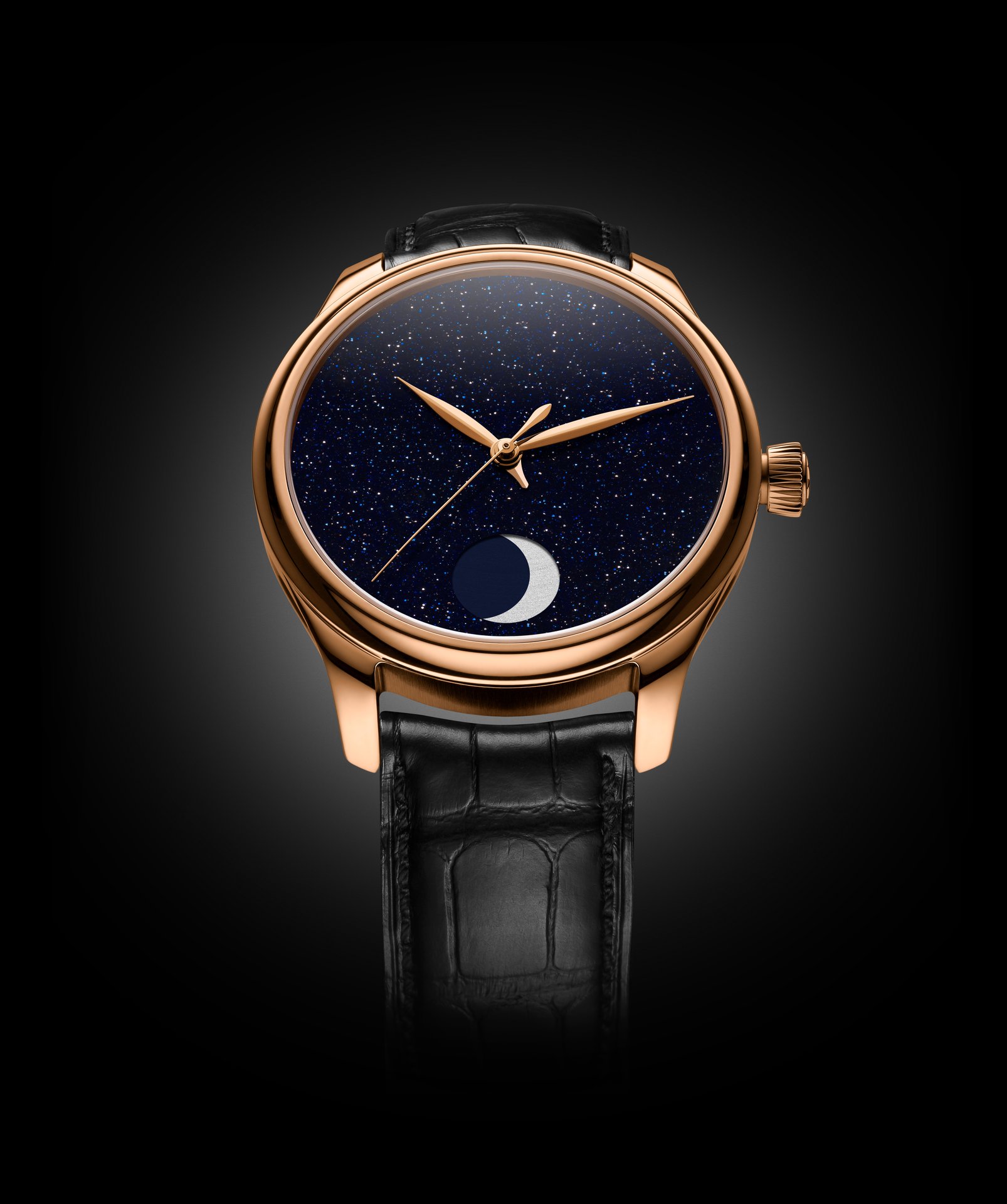 The Endeavour Perpetual Moon Concept Aventurine from H. Moser & Cie. embodies technical complexity; it is elegant, poetic and unconditionally understated, worthy of the finest watchmaking traditions. Available in 5N red gold or steel, each model is released in a limited edition of 50 pieces.