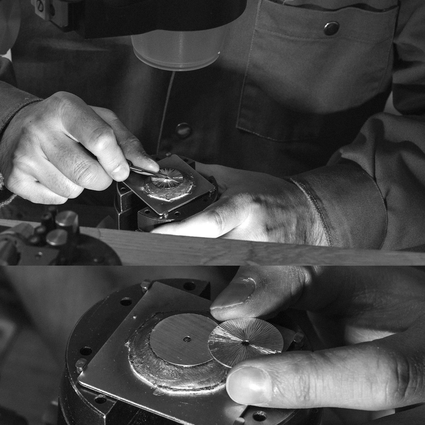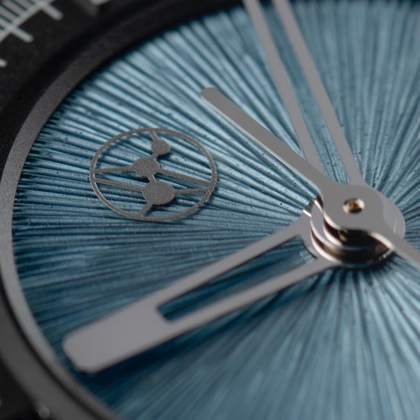 - Flat cut hour and minute hands, in brass, with galvanic rhodium plating. Skeleton type with specific Lundis Bleus shape. Flat cut central second hand with long couterweight, in brass, with galvanic rhodium plating.