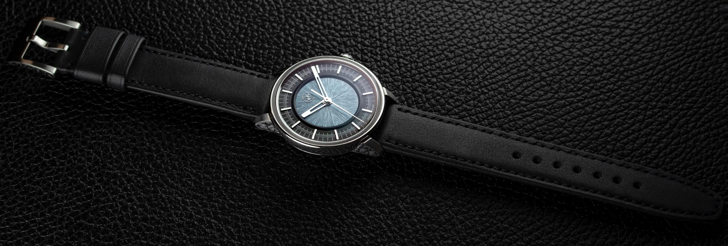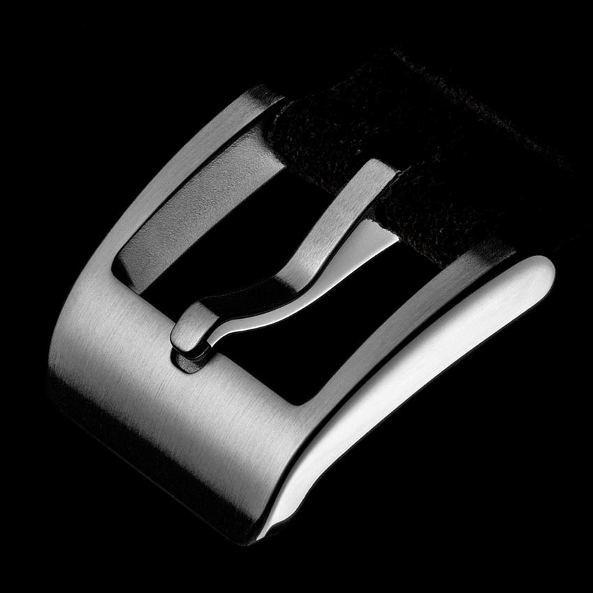 - High-end black calf leather strap, with black leather lining and handmade stitching.