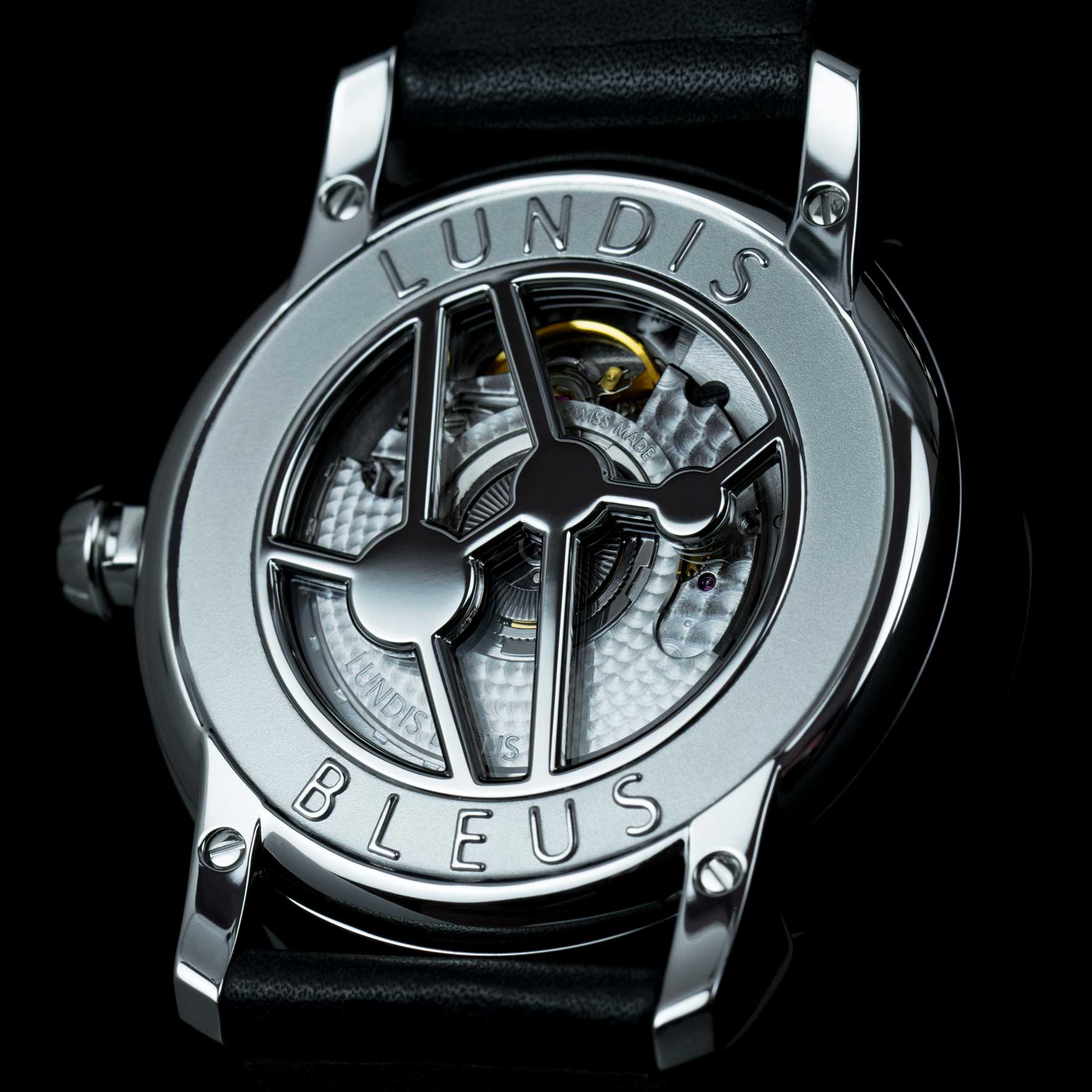 - The dial is entirely manufactured in-house at Lundis Bleus.
