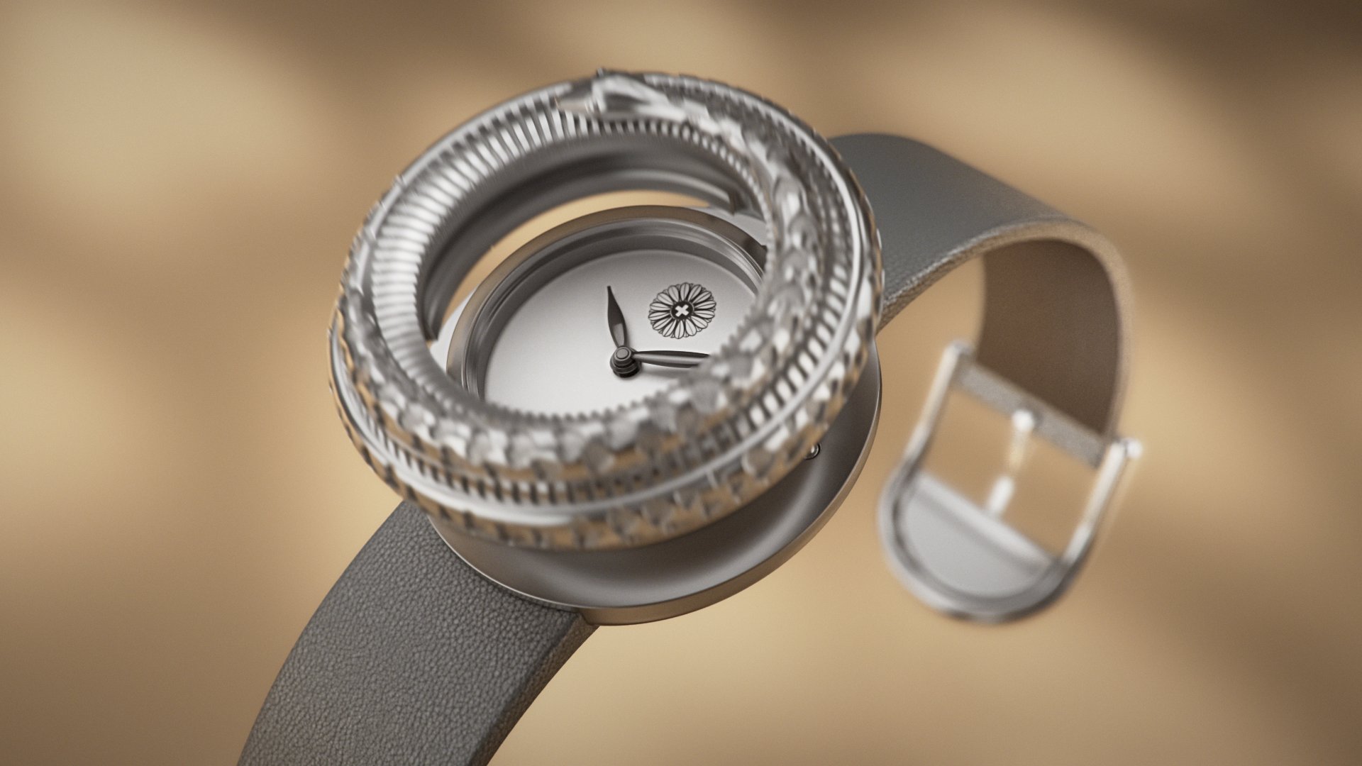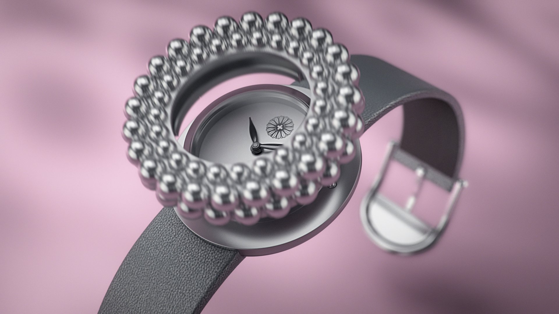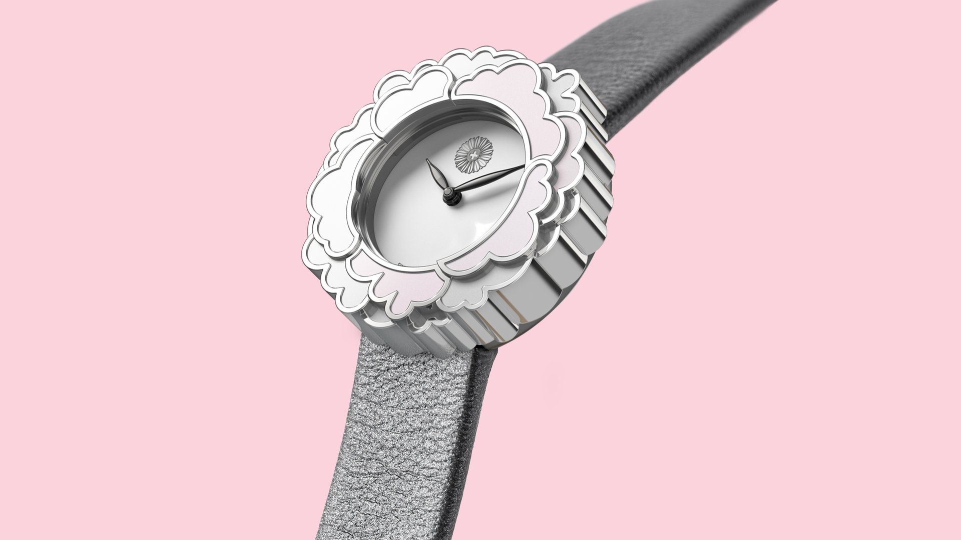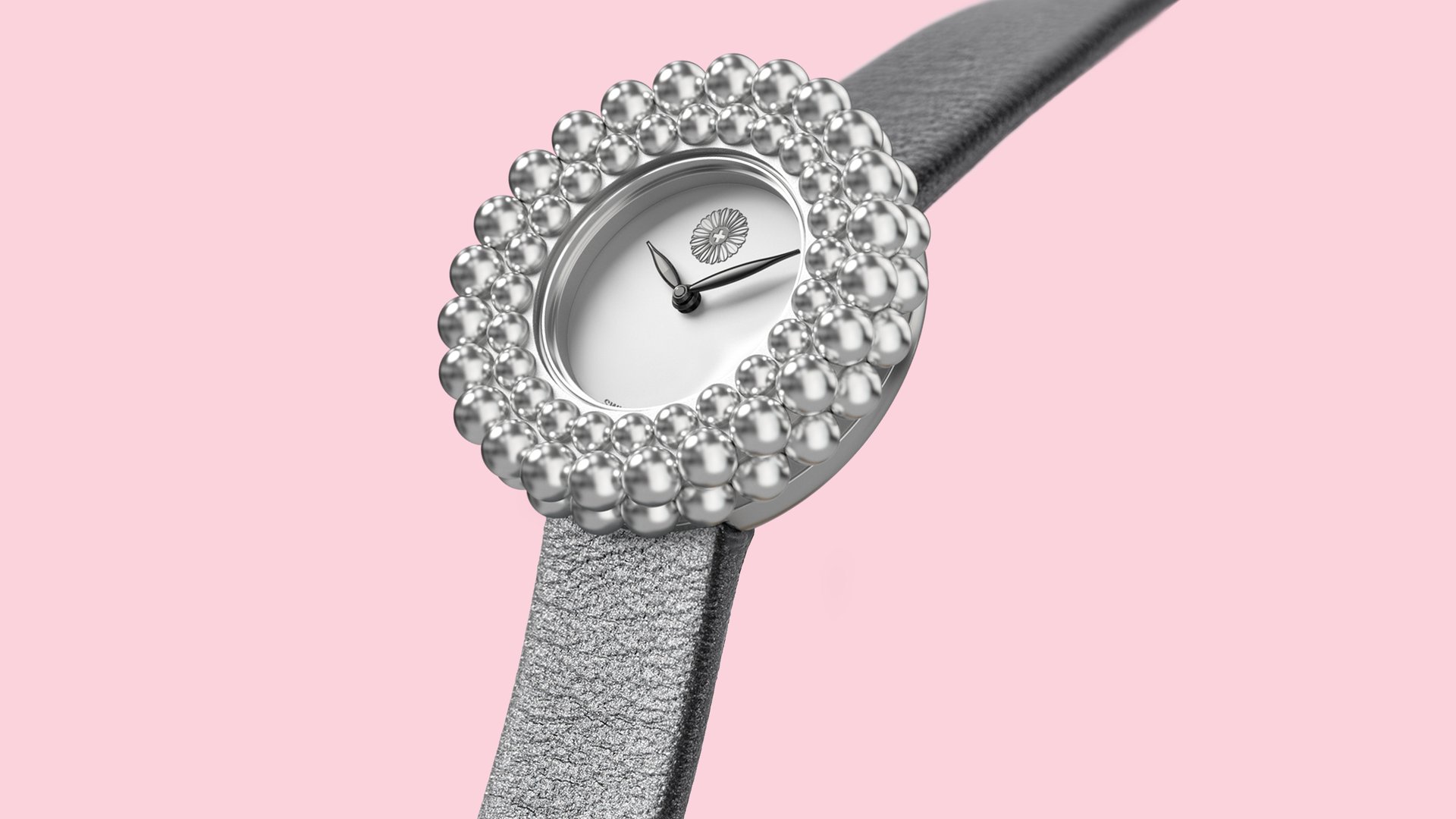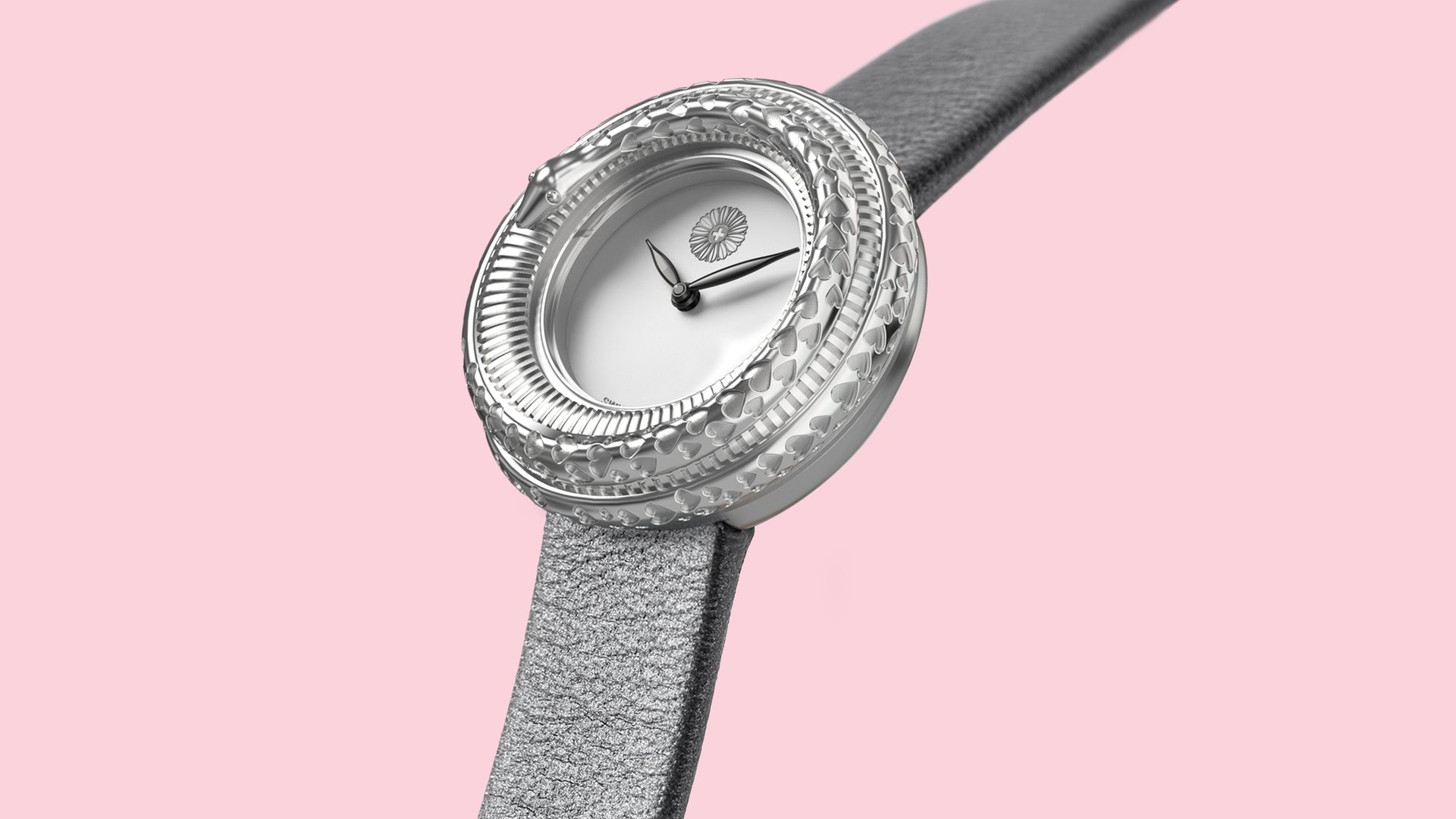 Inspiration: We draw inspiration from the pure and modern shapes of design in the 1970s. These shapes suggest movement while evoking freedom and freshness. The silver polish enhances the romantic shapes of the bezel and instils a play-of-light and overall smoothness.