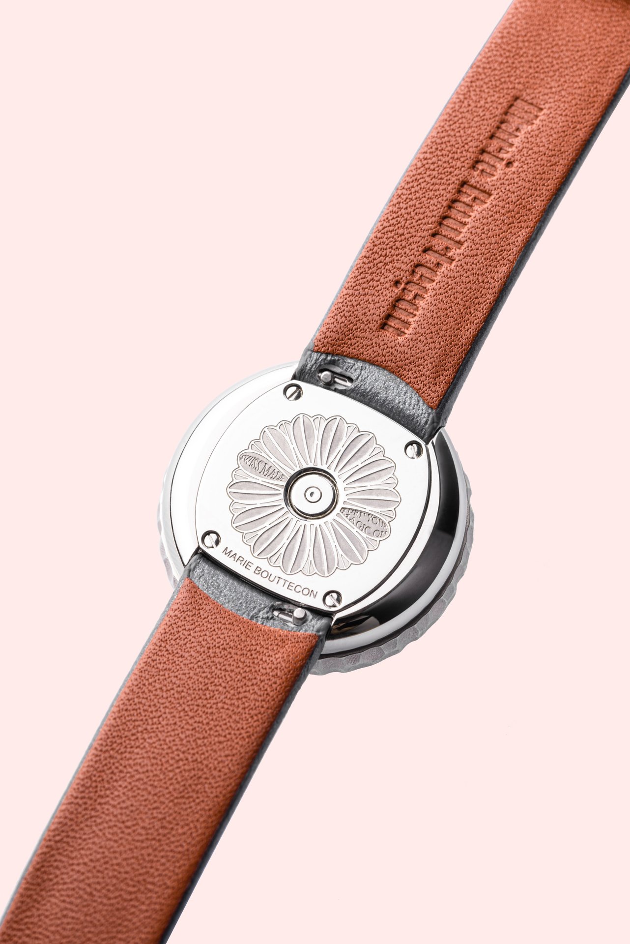 I follow Marie on social media since quite a while. The reason, besides her creative agency Studio Bug Me (designing watches for collectors and brands), is her original creativity and artistic understanding of life. Following her on Instagram (for instance) will bring you a joyful side of life and a sweet side of nature. In love with flowers and nature in general, Marie made the next step. From creating for others, she had finally the courage to come with her own collection. Designed together with her “partner in crime” Etienne, the Marie Boutteçon Timepieces bring Marie’s vision to the wrist. Enjoy below the integral press release.