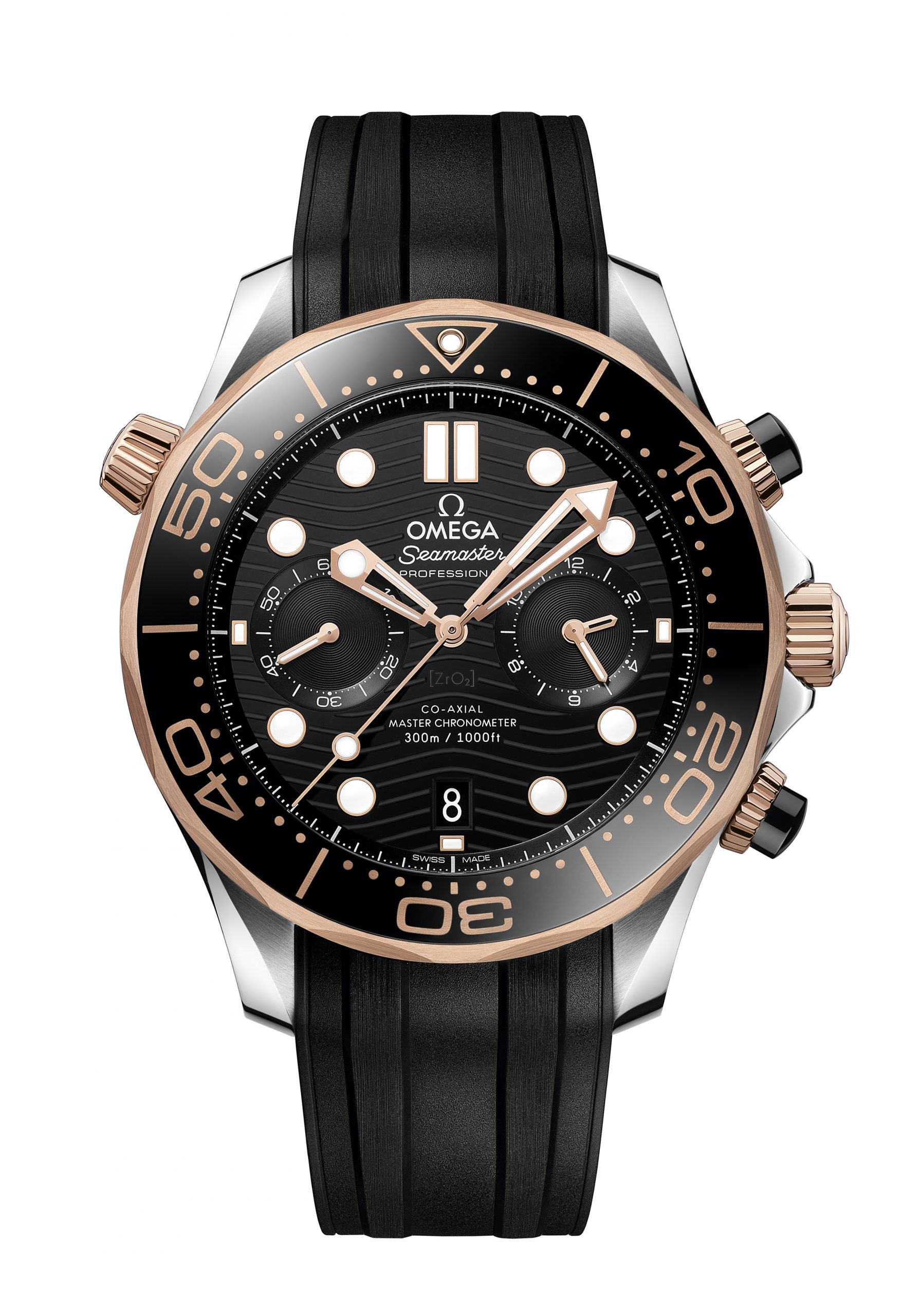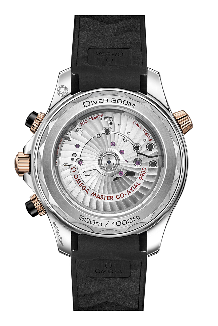 There are eight new chronograph models to choose from. Each one is sized at 44 mm and is available in stainless steel; or stainless steel with 18K yellow gold; or stainless steel and 18K Sedna™ gold. Mounted on the cases, the bezel rings are ceramic, with their diving scales in either white enamel or Ceragold™ – OMEGA’s own innovative way of blending ceramic with 18K gold.