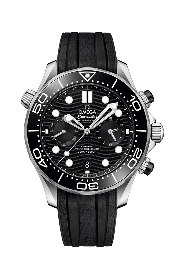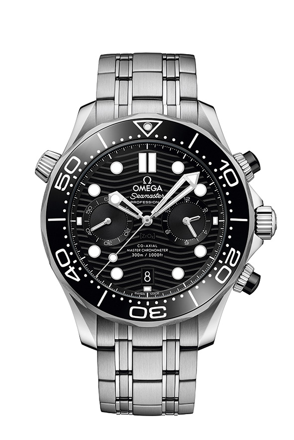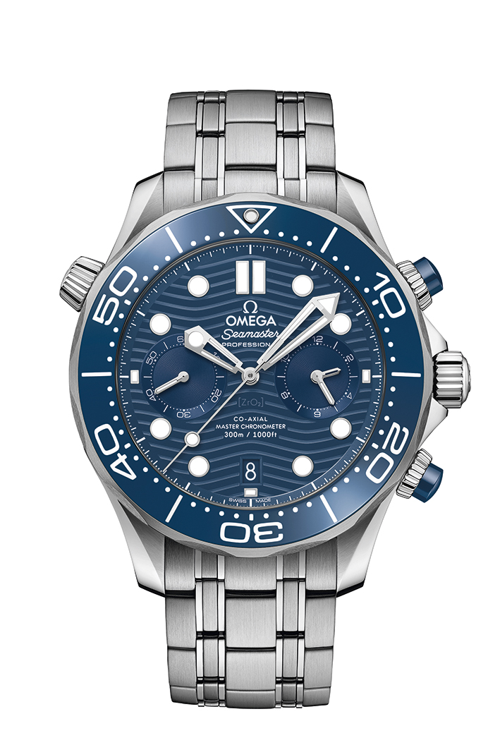 Most distinctive are the ceramic dials, all laser-engraved with the iconic Seamaster Diver 300M waves. They also feature a date window at 6 o’clock, mono-chrome or two-tone subdials, as well as raised indexes that are filled with Super-LumiNova.