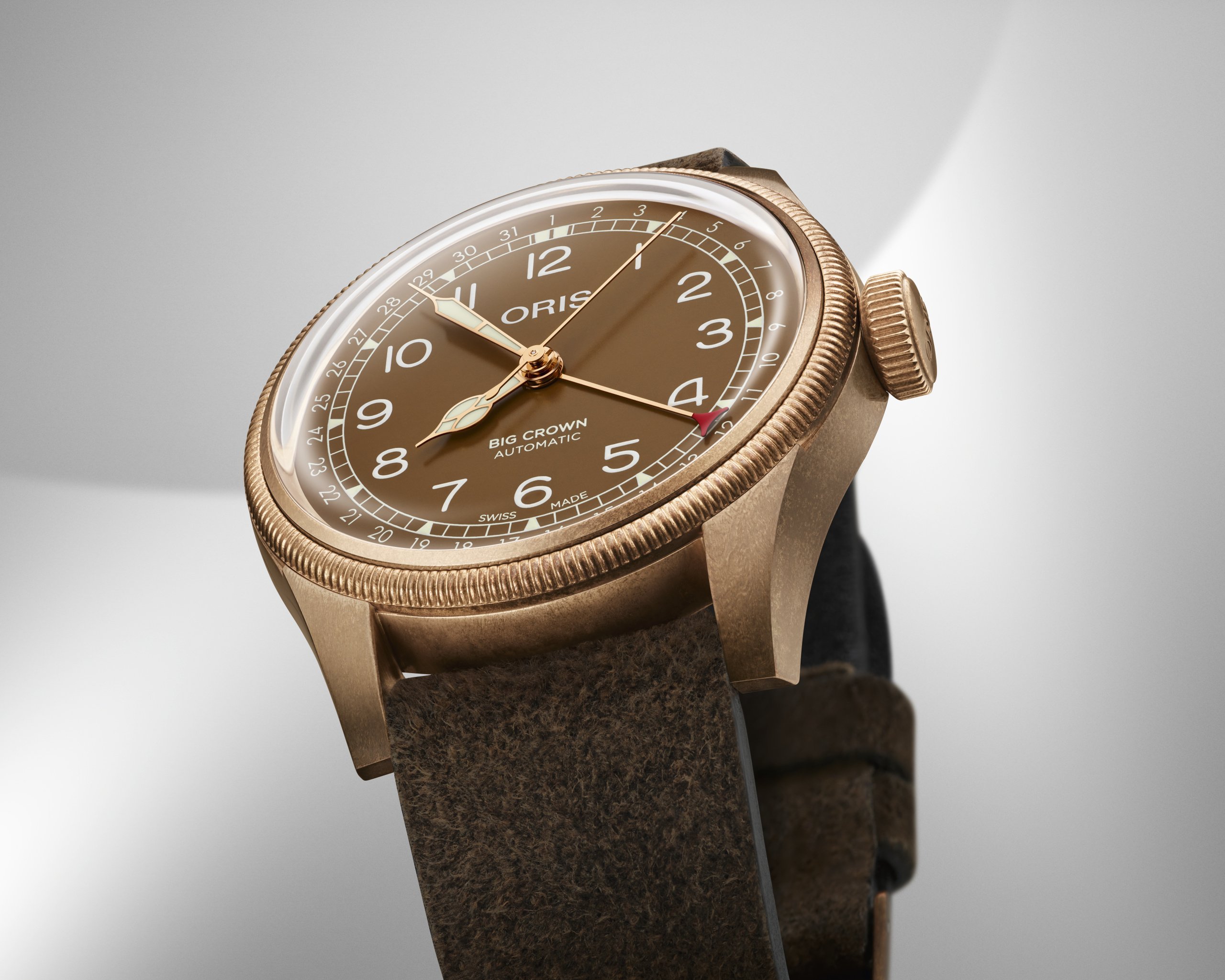 The bronze age returns – Oris celebrates the uniquely historic role of its signature Big Crown Pointer Date by casing it in solid bronze and using a bespoke finish that makes each bronze dial a one-off: Oris Big Crown Bronze Pointer Date.