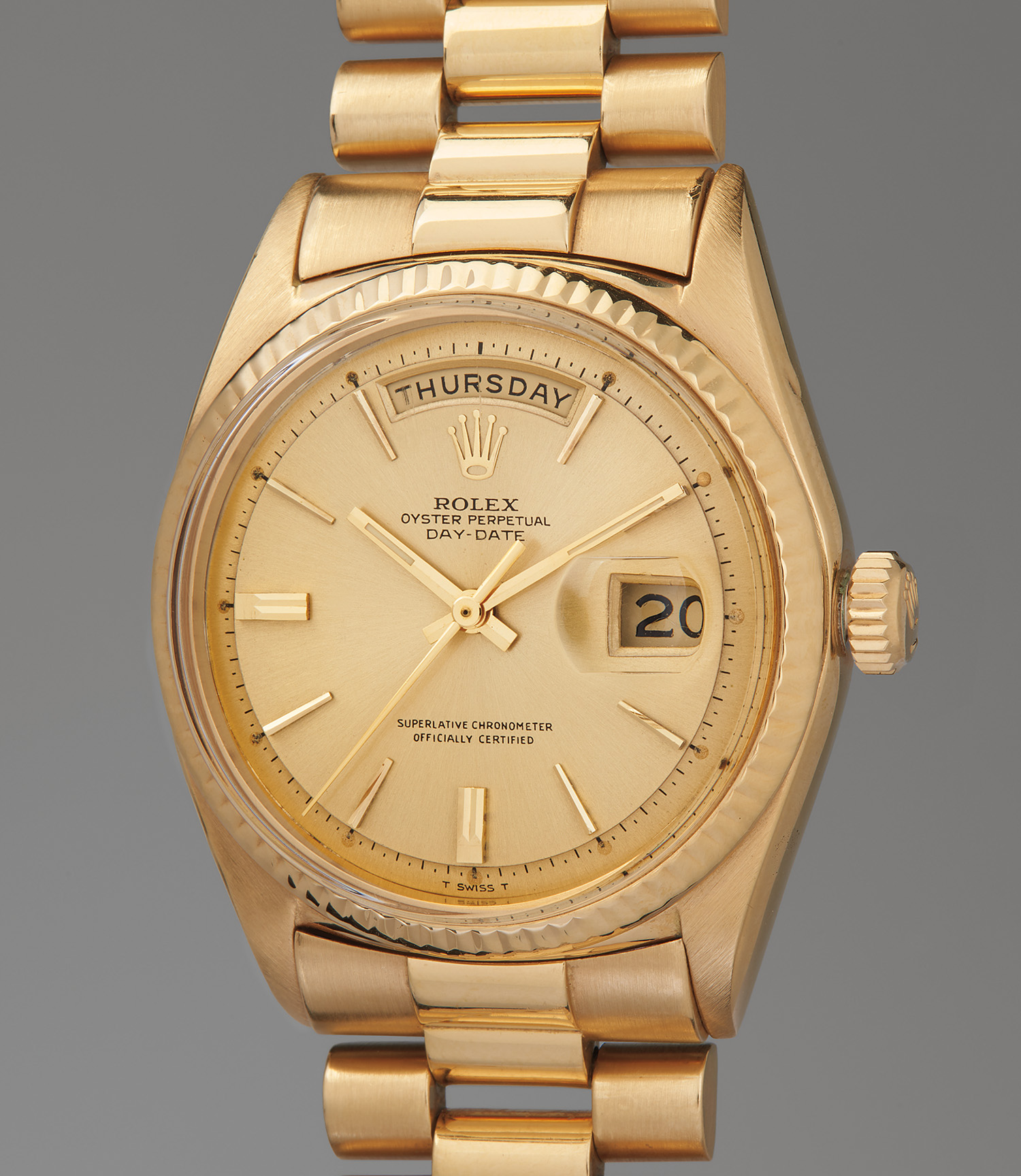 ROLEX. Day-Date, Ref. 1803, A fine and culturally significant yellow gold wristwatch with day, date and bracelet, sold to benefit the Nicklaus Children’s Health Care Foundation
