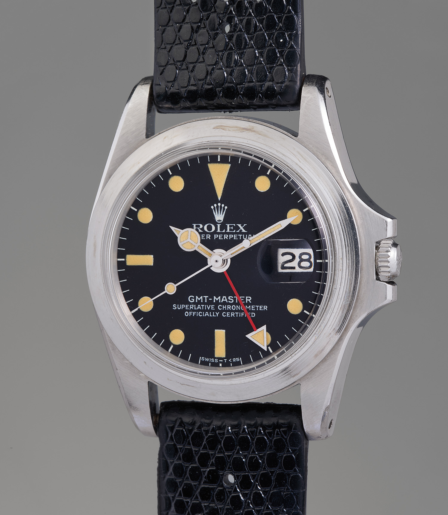 ROLEX. GMT-Master, Ref. 1675,An iconic, historically important, and remarkably well-preserved stainless steel dual-time wristwatch with date