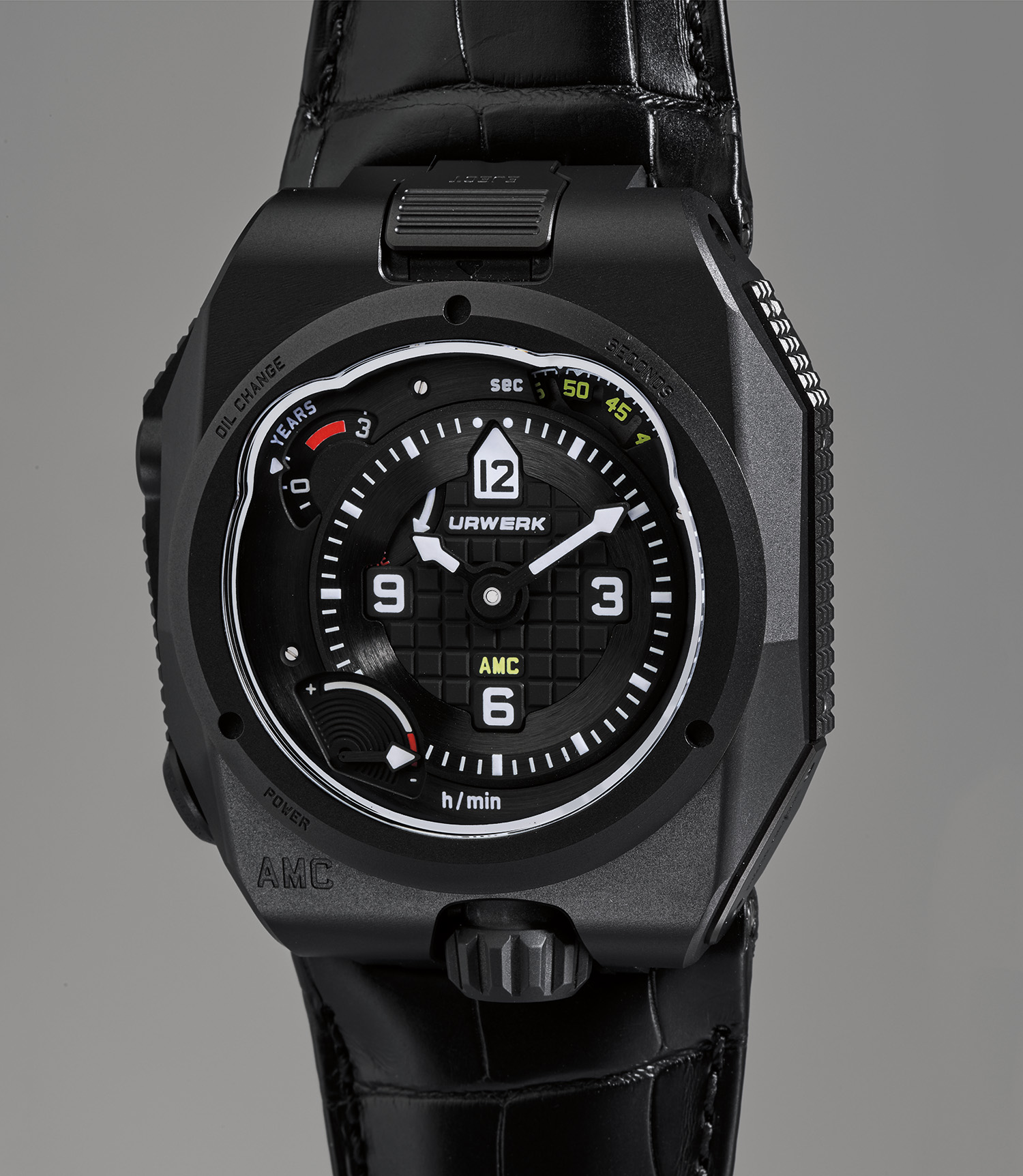 URWERK. A unique, extremely rare, and historically innovative Atomic Master Clock with paired titanium wristwatch with power reserve and oil change indicator, with certificate of origin
