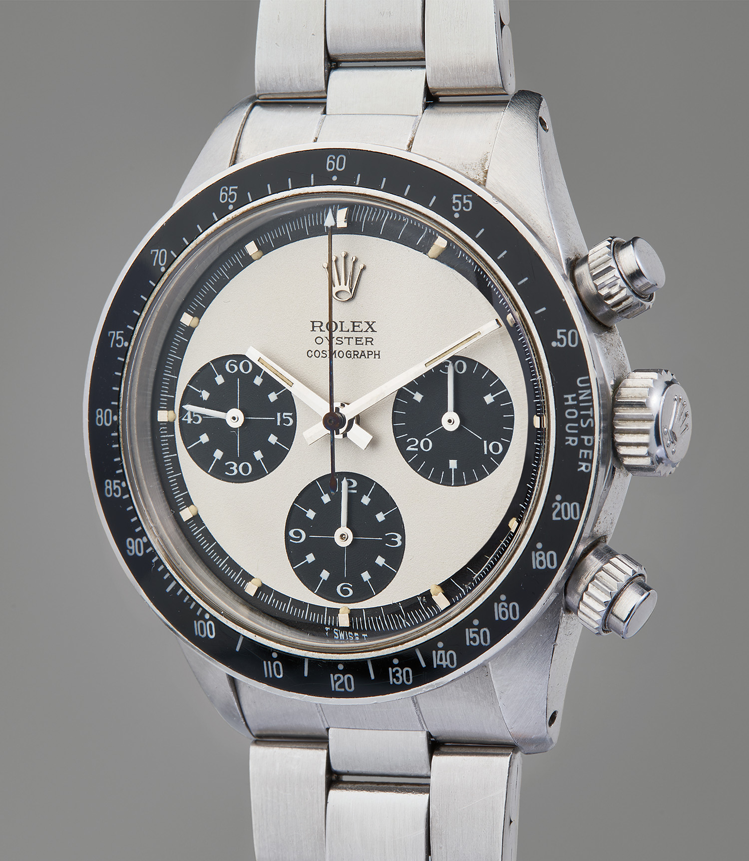 ROLEX. Cosmograph Daytona Ref. 6263, A rare, extremely well-preserved, and highly attractive stainless steel chronograph wristwatch with “Paul Newman” dial and bracelet
