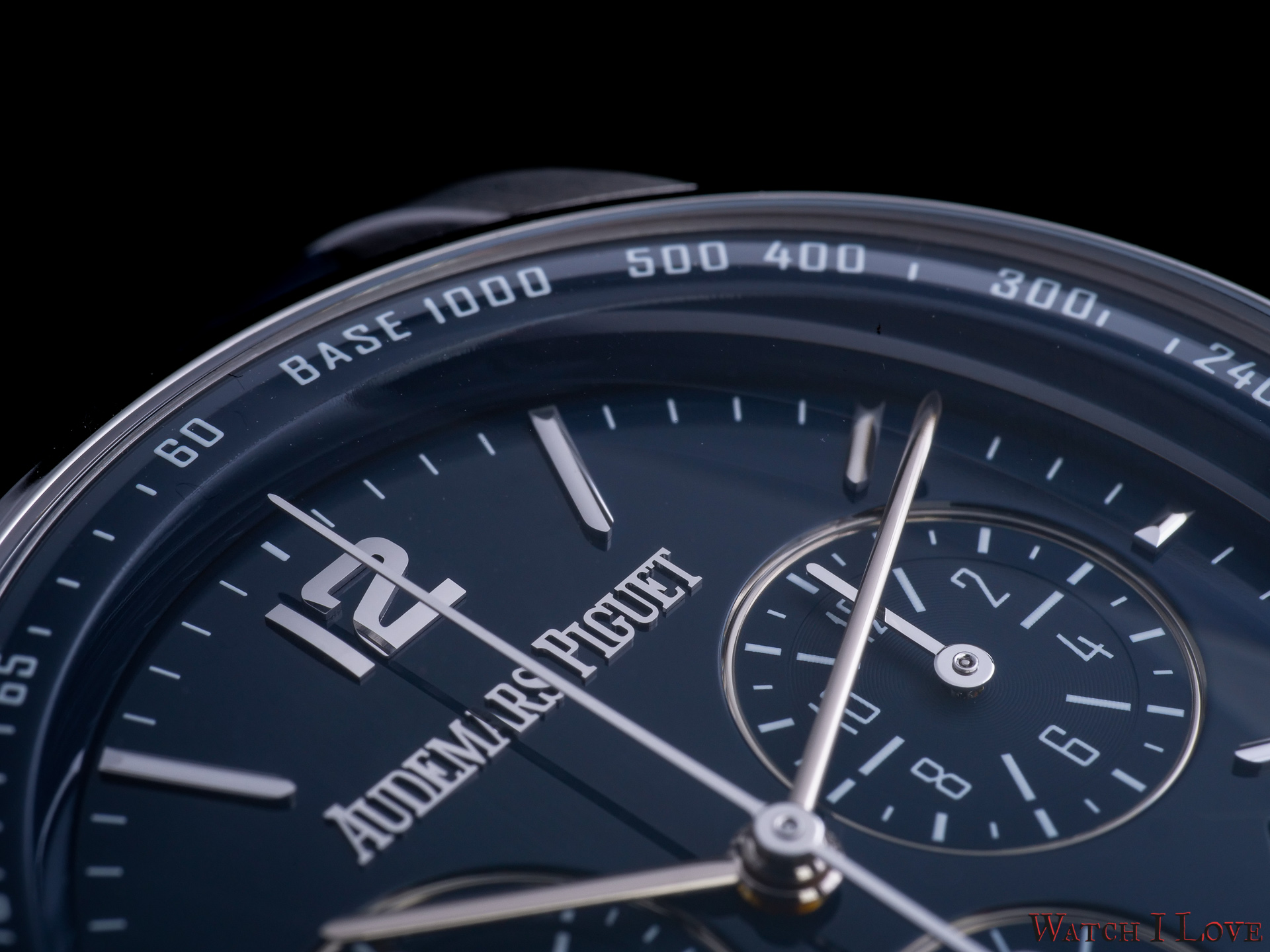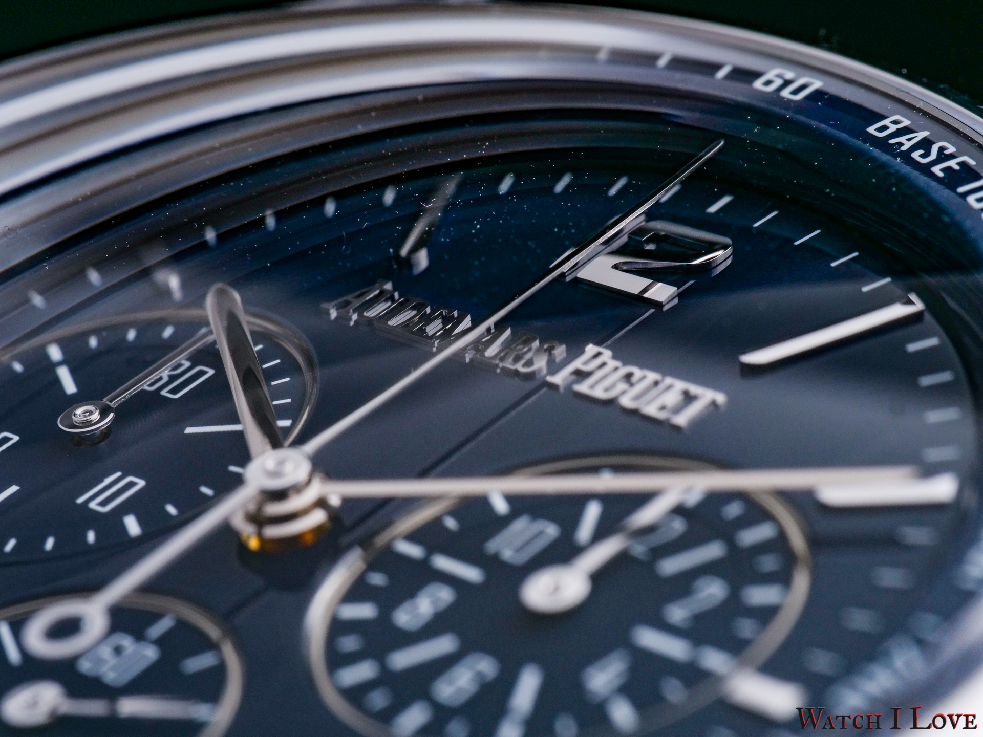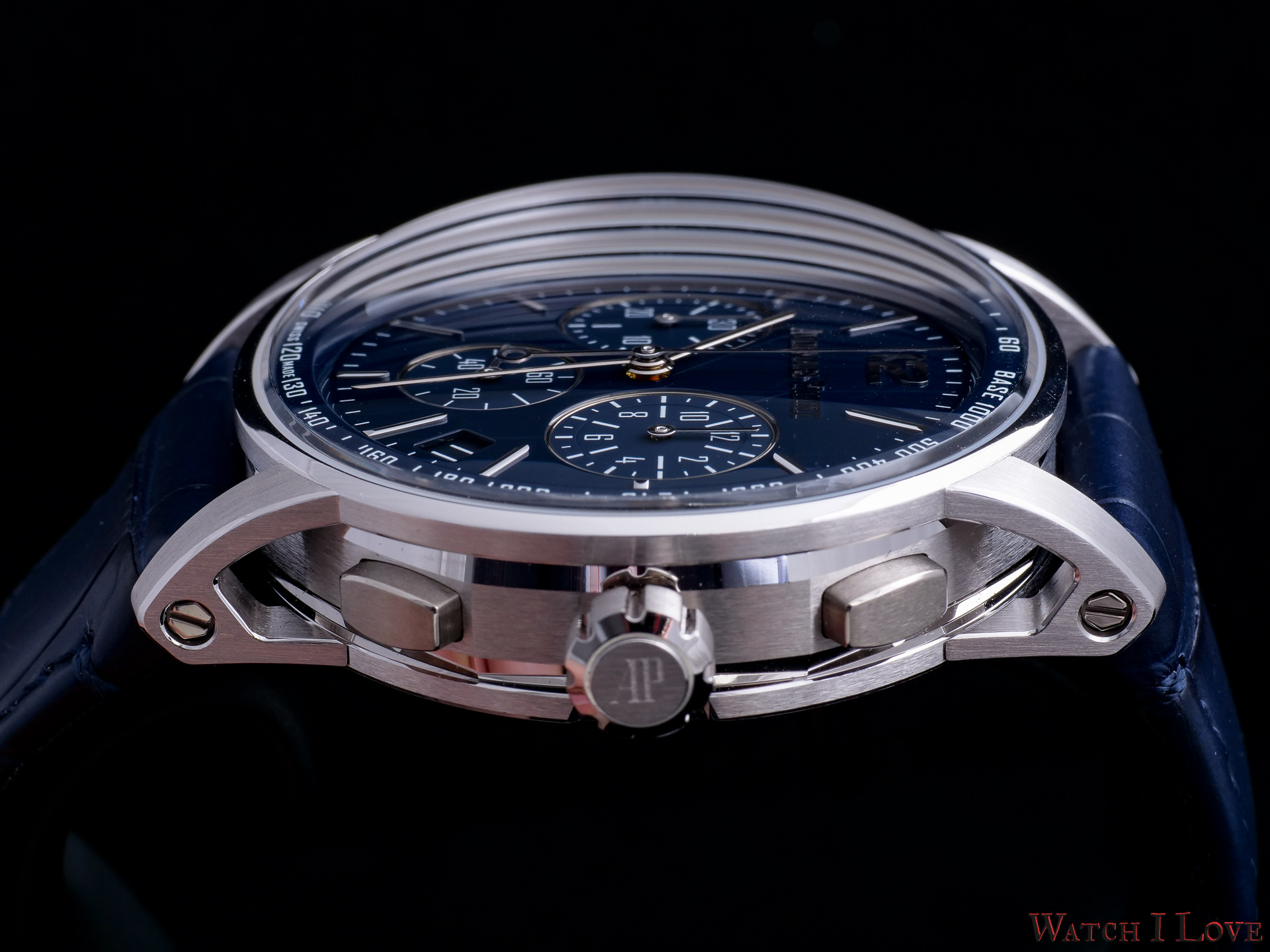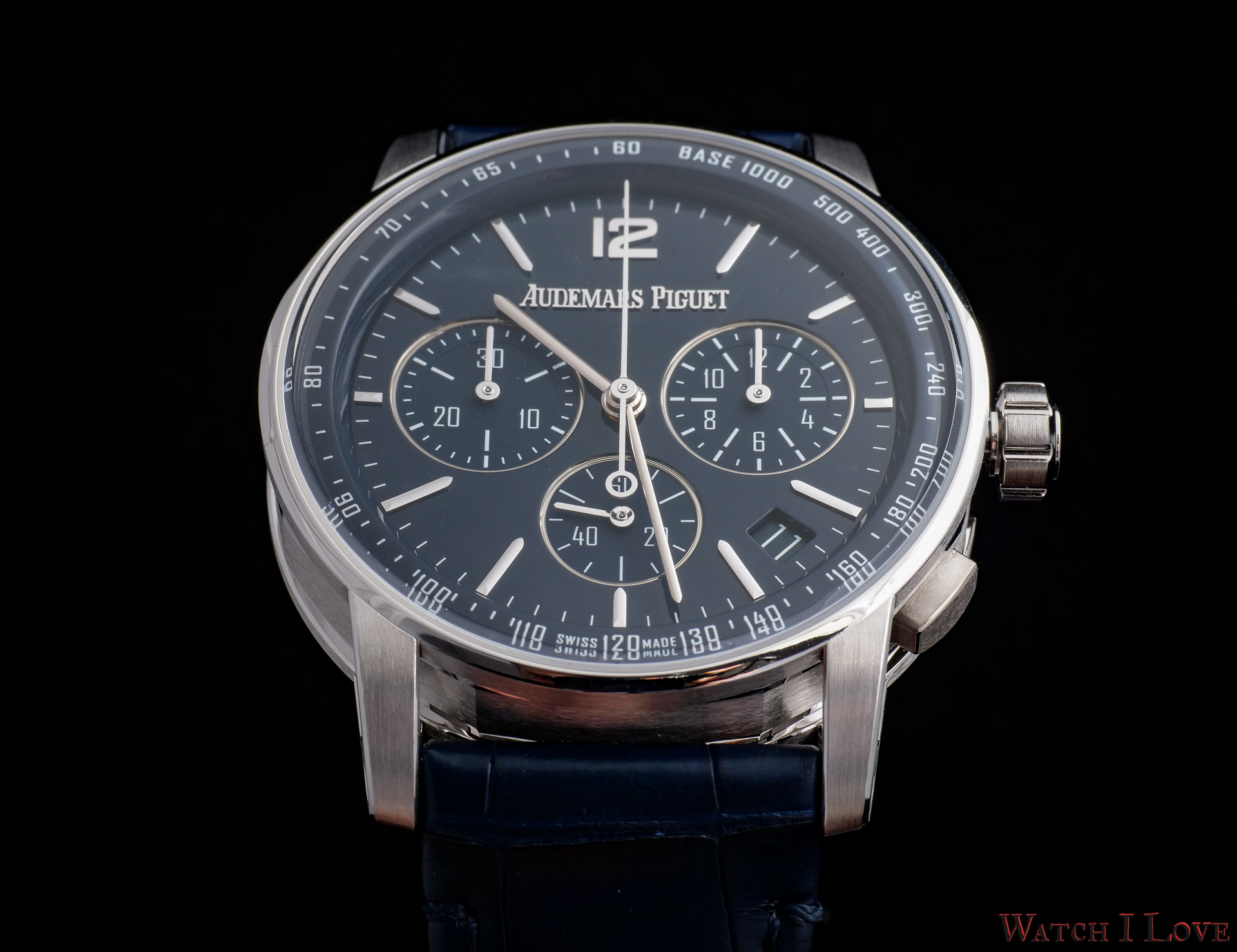 The chronograph pushers have a beautiful shape with satin-brushed surfaces and polished beveling. The crown offers a solid grip. Again, a lovely combination of brushed and polished surfaces adorn the crown. The AP logo engraved in the brushed background makes a good impression.